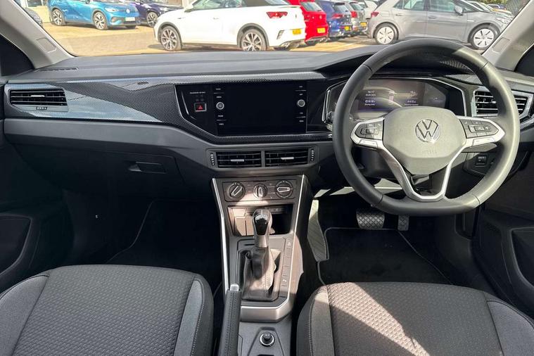 Advanced driver attention and drowsiness monitor, Bluetooth mobile phone interface, Dynamic road sign display, Emergency call service, Mobile phone preparation with inductive charging function, Multifunction front facing camera for distance control, Power assisted speed sensitive steering, Predictive adaptive cruise control without follow-to-stop and speed limiter, Preparation for navigation system with media and internet package, Preparation for We connect and We connect plus, Rear view camera, Speedo and rev counter, electronic odometer, trip, service interval display and exterior temperature gauge, Standard rear axle, Travel Assist - Lane keeping system and traffic jam assist, Travel assist including emergency assist, Trip computer, Warning signal and warning light for front and rear seatbelts not fastened, Washer fluid level indicator, Wireless app connect, Front wheel drive, Rear shock absorpion, Start-stop system with battery regeneration (recuperation - energy recovery during braking), DAB Digital radio, Diversity antenna for FM reception, Automatic dimming interior rear view mirror, Automatic headlight control with LED separate daytime running lights with coming/leaving home function, Body colour bumpers with chrome inserts, Body colour door handles, Body colour door mirrors, Electric front windows, Engine badge deletion, Headlight range adjustment, Heat insulating and laminated safety glass windshield, LED Headlights, LED rear combination lamps, Power folding adjustable/heated exterior mirrors and front passenger exterior mirror lowering function, Rain sensor, Rear electric windows, Rear fog light, Rear side wing doors, Rear tinted glass from B-pillar backwards approx 65% tinted, Rear windscreen washer and wiper with interval delay, Third brake light, 12V power socket in centre console, 2 front and 2 rear reading lights with switch off delay and dimmer, 2 USB-C ports in the front, 2 USB-C charging sockets on the center console in the rear, 3 rear head restraints, 60/40 split folding rear seat and rear seat bench not split, Ceramique roof lining, Chrome plated radiator grille inserts, air vent surrounds and light switch surrounds, Door and side trim panel, Driver and front passenger seat height adjustment, Driver/passenger sunvisors with illuminated vanity mirrors, Front centre armrest, Front seat backrest storage pockets, Front standard seats, Handbrake lever handle in leather, Hartley/Thomas cloth upholstery, Headliner in recycled material, Isofix child seat preparation easy-fit (for two outer rear seats, and front passenger seat) compatible with I-size, Leather trimmed gear knob, Luggage compartment cover, Luggage compartment lighting, Removable luggage compartment floor, Single front passenger seat, Standard climatic zones, Standard pedal cluster, Three spoke leather wrapped multifunction steering wheel with shifting paddles, Light and vision pack - Polo, 3 point height adj front seatbelts + pretensioners, 3 point seat belt for centre rear seat, 3 point seatbelts, outer rear with ECE lable, ABS, Driver and front passenger airbag with front passenger airbag deactivation, Drivers and front passengers safety optimised head restraints, ESC (Electronic stability control) + EDL (Electronic Differntial lock) and ASR (Traction control), Extended and predictive pedestrian/ cyclist protection, Front assist with autonomous emergency braking (for Adaptive Cruise Control ACC up to 130 mph), Front curtain and side airbags with center airbag, Front disc brakes, Hill hold control, Manual child lock in rear doors, Rear drum brakes, Single tone horn, Tyre pressure loss indicator, Alarm with interior protection, Anti-theft alarm system with interior monitoring, backup horn, and towing protection, Anti-theft wheel bolts, Electronic engine immobiliser, Lava stone black gloss/matt decorative inserts in dash and front door panels, 16" Torsby alloy wheels, Low rolling resistance tyres,
