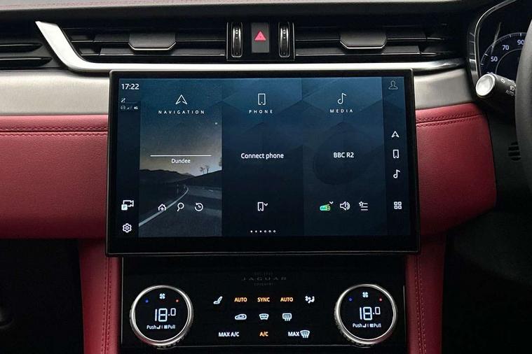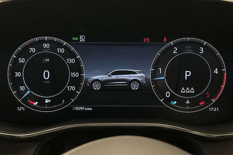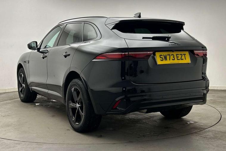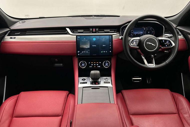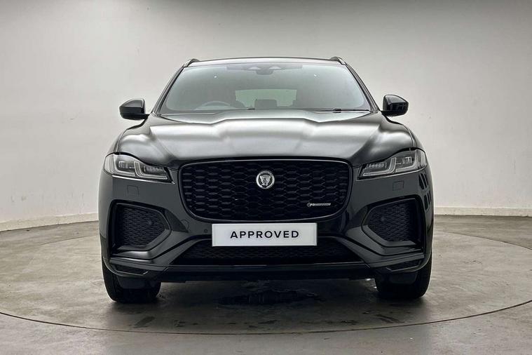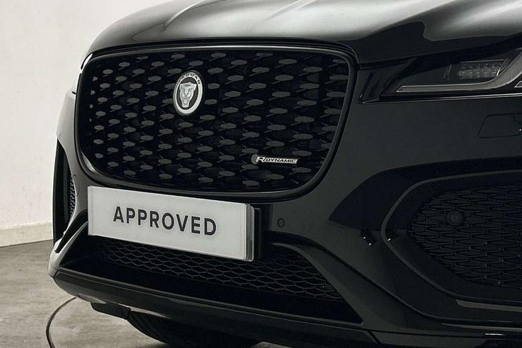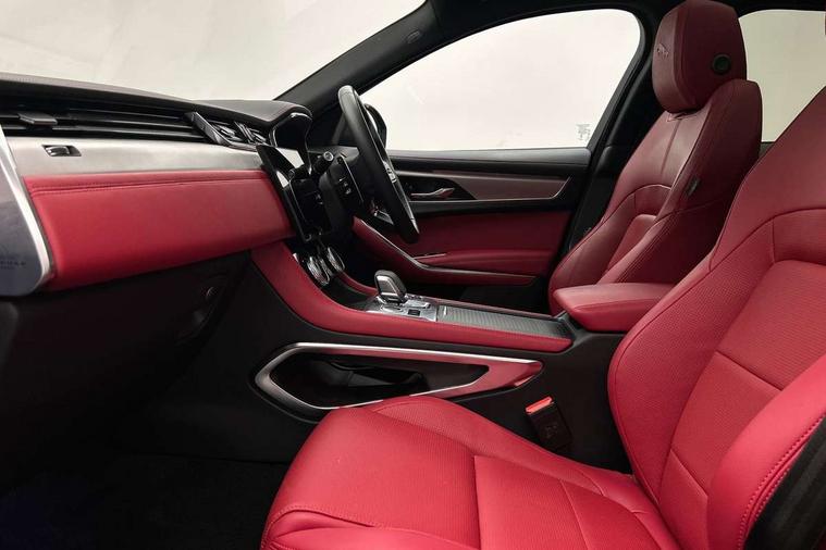 11.4" touchscreen, Android Auto, Apple car play, Blind spot assist, Bluetooth connectivity, Clear exit monitor, Driver alert system, Driver condition monitor, eCall emergency call system, Eco driving style assistant, Electric power assisted steering, InControl remote, Jaguar Toggle shift selector, Lane departure warning system, Lane keep assist, Outside temperature gauge, Personalisation profile management, Pivi pro connected navigation system with app interface and media storage, Pro services and wifi hotspot, Push button starter, Rear traffic monitor, Service interval indicator, Speed proportional steering, Start up sequence with movement in dials and lighting, Traffic sign recognition with adaptive speed limiter, Trip computer, Voice control system, 8 speed automatic transmission, All terrain progress control, All Wheel Drive (AWD), Open differential with torque vectoring by braking, AM/FM radio, Bluetooth streaming, DAB Radio (Digital Audio Broadcasting), Dynamic volume control, InControl apps, InControl protect, iPod integration, 3 flash lane change indicators, Animated directional indicators, Approach Illumination, Auto dimming rear view mirror, Automatic headlights, Electric heated/power fold memory door mirrors with approach lights and auto dimming driver side, Electric windows with one touch open/close and anti trap, F-Pace and R Dynamic badge, Green tinted glass, Heated front windscreen + heated washer jets, Heated rear window with timer, Jaguar script and leaper, LED High level third brake light, LED tail lights, Metal load space scuff plates, Non acoustic front windscreen, Privacy glass, R Dynamic badge on side door, Rain sensor windscreen wipers, Rear fog lights, Rear metal tread plates, Rear side wing doors, Rear wiper, Trailer stability assist, Variable front intermittent wipers, 12V power point front, 3 rear headrests, 3 seat bench in 2nd row, Air distribution speed, Bright metal foot pedals, Centre armrest console, Centre console with side storage, Configurable cabin lighting, Deletion loadspace storage rails, Door sill tread plates, Fold flat front seats, Front centre armrest with storage compartment, Front door storage space, Glovebox finisher with jaguar script, Heated steering wheel, Hooks in loadspace, Illuminated glovebox, Interior front door handles with separate locking switches, ISOFIX on outer rear seats, Jaguar sense, Leather steering wheel, Luggage tie downs in loadspace, Mist sensing, Multifunction steering wheel, Overhead lighting console, Overhead stowage for sunglasses, Passive front head restraints, Premium carpet mats, Rear air vents, Rear armrest with twin cupholders, Rear centre headrest, Rear door storage space, Reversible boot floor, Satin chrome gearshift paddles, Shopping bag hook, Single front passenger seat, Sunvisors with illuminated vanity mirrors, Twin front cupholders with cover, Online Pack with data plan - F-Pace, 355mm front brakes and 325mm rear brakes, 3x3 point rear seatbelts, ABS, All surface progress control (ASPC), Brake pad warning light, DSC - Dynamic Stability Control, Electric parking brake (EPB), Emergency brake assist, Front airbags with passenger seat occupant detector, Front and rear seatbelt reminder, Front side airbags, Full length side window curtain airbag, Hill launch assist, Power operated child locks, Traction control, Tyre pressure monitoring system, Immobiliser, Keyless entry, Keyless start, Locking wheel nuts, Perimeter alarm, Remote central locking, Valet mode,