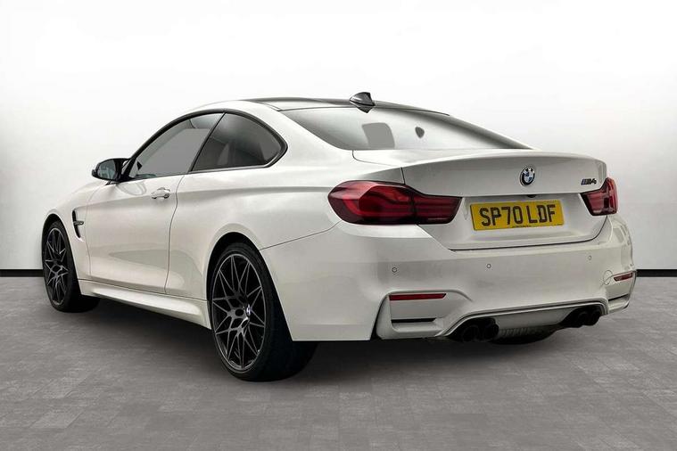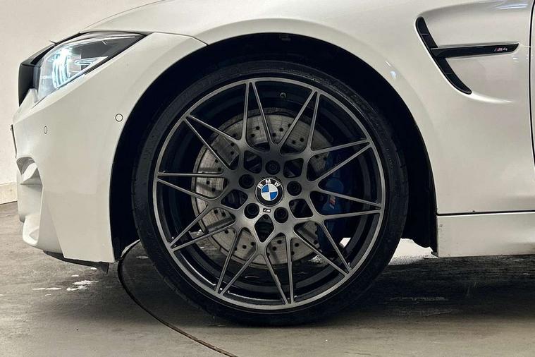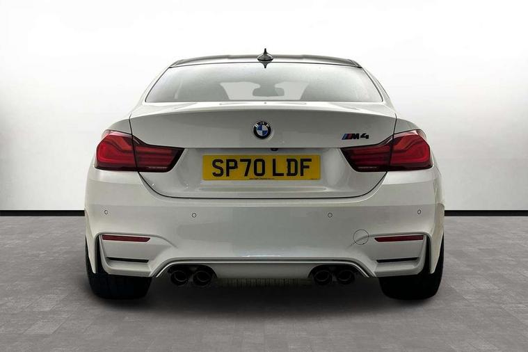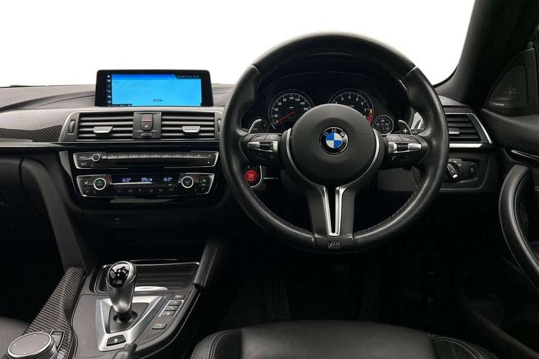 BMW service history, Brake pad wear indicator warning light, Check Control warning system for monitoring of lights and door/luggage compartment open warning, Condition based service, Controller and Control Display+8.8" monitor, Cruise control with brake assist, Electric Power Steering (EPS) with Servotronic, Enhanced bluetooth with wireless charging, iDrive touch controller with shortcut buttons, Instrument cluster with speedometer with miles per hour read out, tachometer and fuel gauge, Integrated owner's handbook, Lights on warning by audio warning signal when ignition is switched off, M drive manager for individual set up, Oil temperature gauge, On-Board Computer (OBC) comprising: average speed, average and current fuel consumption, and range, outside temperature display with acoustic warning, Optimum shift indicator, Service interval indicator, Wireless charging cradle in front centre armrest storage compartment, Adaptive M Sport suspension, Aluminium front suspension, Drive Performance Control, Five link rear suspension, M differential lock, 8 programmable favourite buttons, Auxiliary point for auxiliary devices, Bluetooth audio streaming, BMW professional radio/CD/MP3, DAB Digital radio, Electronic service booklet, Wi-Fi hot spot, Air breather, Auto dimming rear view mirror, Body colour bumpers, Body colour door handles, Body colour door mirrors, Carbon fibre reinforced plastic roof, Daytime running lights, Direction indicator, side repeaters, integrated in exterior mirrors, Door sill finishers, Dynamic brake lights, Electric adjustable heated door mirrors, Electric front and rear windows with fingertip open/close + anti-trap facility and comfort closing function, Exterior mirrors - electrically folding with anti-dazzle, Follow me home headlights, Green tinted heat insulating glass, Headlight beam throw control, Heated windscreen washer jets, High gloss black kidney grille, High gloss black M side strakes, High level third brake light, Illuminated M badge and model name with black high-gloss surround, Individual high gloss shadow line, LED direction indicator lenses, LED eyebrow light, M aerodynamic bodystyling, M rear spoiler integrated bootlid, M Sport exhaust finish with black chrome tailpipe finishers, Rain sensor including auto headlights activation, Shark fin antenna, Two part LED tailights in L-shape with components in smoked glass, brake light, LED turn indicator and rear fog light, Two speed adjustable intervals windscreen wipers, Visible VIN plate, Welcome lighting, 12V sockets in front centre console and passenger footwell, 3 spoke leather M sport multifunction sports steering wheel, 4 grab handles, Anthracite headlining, Armrest front sliding with folding storage compartment, Driver and front passenger seat heating, Dual zone climate control, Electrically adjustable front seats - driver seat with memory, Front and rear bottle holders integrated into door trim storage compartments, Front and rear side armrest integrated into door trim, Front interior light, Front seat backrest width adjustment, Full black panel display, Gearshift lever with M designation, Glovebox with lid, Integrated rear head restraints, ISOFIX child seat preparation+airbag deactivation, Lashing eyelets in boot, Leather gear and handbrake lever, Lightweight M sport seats with breakthrough elements in the seat back, Luggage compartment lighting, M specific running gear, M specific seats for driver and passenger lightweight construction with integrated headrests, M-specific rear seats with integrated two headrests, Reach + rake adjustable steering column, Rear backrest foldable and dividable 60:40, Storage compartment in rear centre console, Sunvisors with illuminated vanity mirrors and ticket pocket, Toolkit located in luggage compartment, Two front cupholders with removable oddments tray/lid, Velour floormats, Extended lights package - M Series, Media pack - Professional - M4, ABS/EBD, Automatic Stability Control (ASC), Battery safety cut-off, Brake assist, Brake drying, Brake energy regeneration, Braking pre-tensioning, Childproof rear door locks, Compound brake discs - inner vented, Cornering brake control (CBC), Crash Sensor - activates hazard/interior lighting + unlocks doors, Driver/Front Passenger airbags, DSC+, Dynamic brake control, Dynamic Traction Control - DTC, Front passenger airbag deactivation, Front pyrotechnic belt tensioners and belt force limiter, rear coaded belt buckles, Front side airbags, Hill start assist, ITS head airbags for front/rear, M dynamic mode, M sport seatbelt, Seat belt security check for driver, Side impact protection, Twin horns, Tyre pressure monitor, Warning triangle and first aid kit, Automatic drive away locking facility, Central locking switch for all doors, fuel filler cap and luggage compartment, Electronic immobiliser, Keyless start, Remote central locking, Remote control including integrated key with inset in chrome two, Remote control Thatcham category 1 alarm, Start/stop button with Comfort Go keyless engine start and auto Start/stop deactivation button, M mobility system (flat-tyre repair system),
