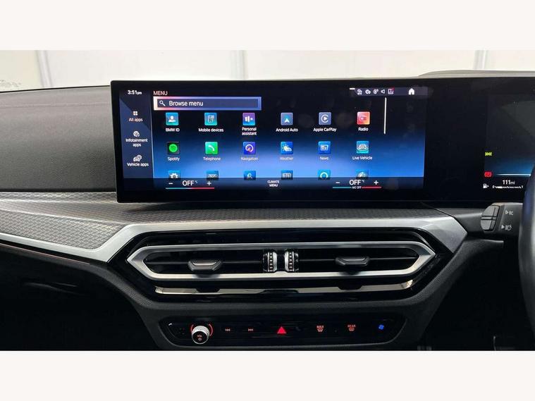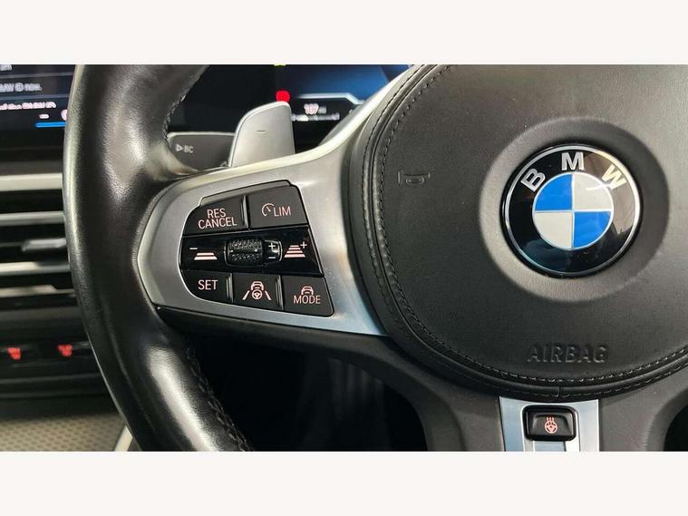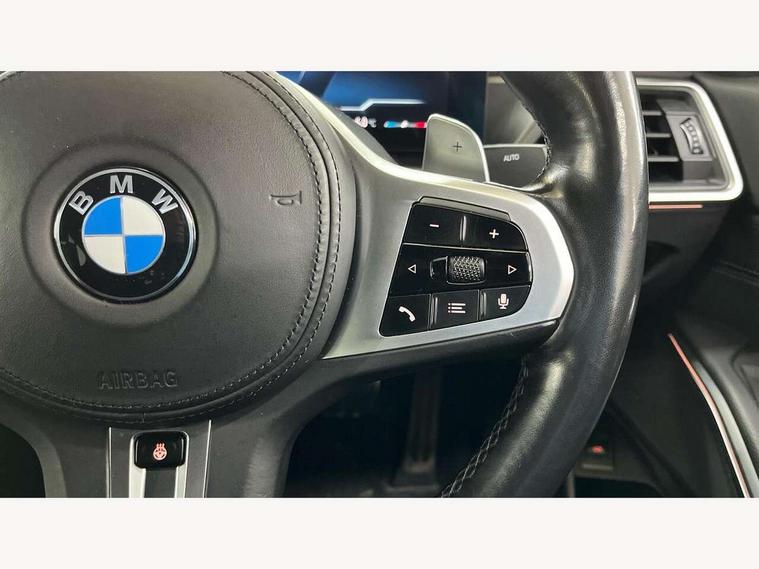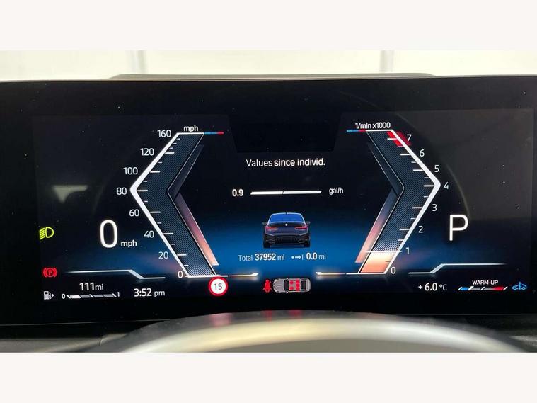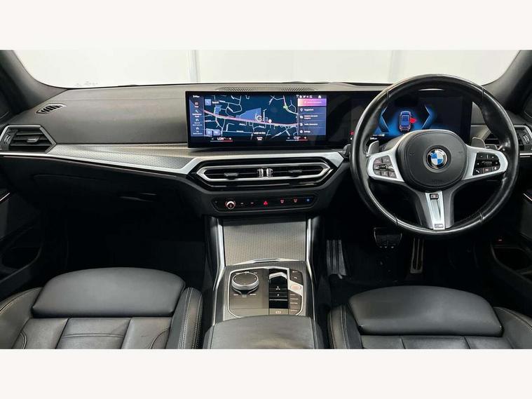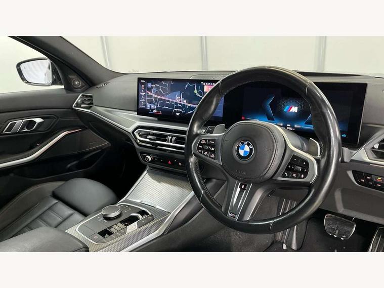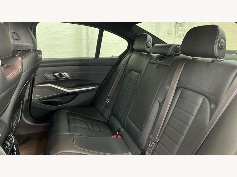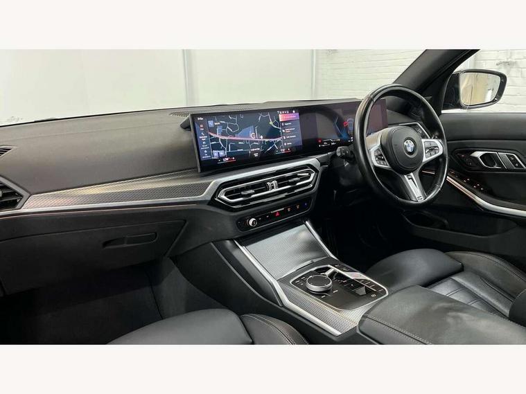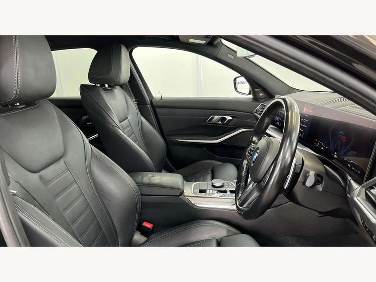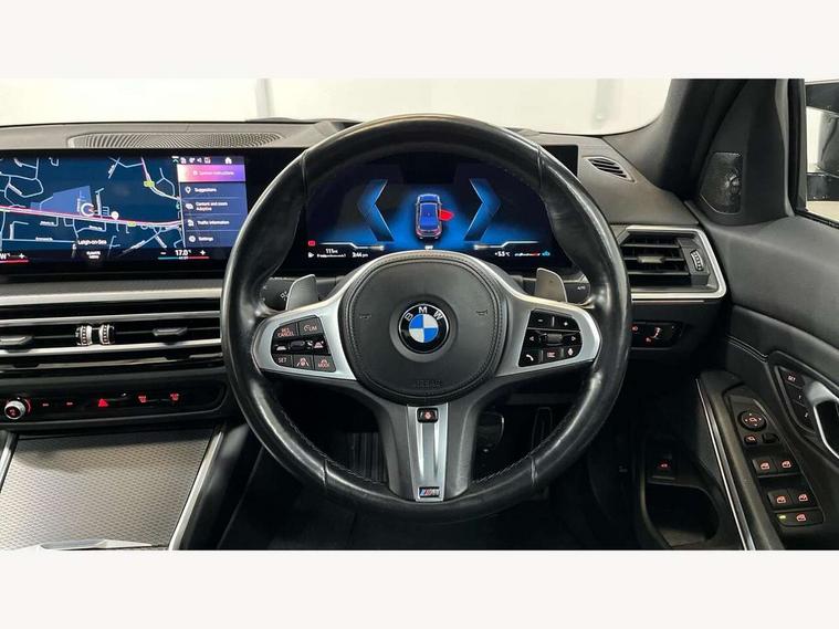 Active guard plus, Attentiveness assist, Automatic Start/stop button, BMW iDrive, BMW Teleservices, Condition based service, ConnectedDrive Services, Driving experience switch, Oil sensor for level and grade, Preparation for driver assistance, Shifting point display, Variable sport steering, 48V Mild hybrid technology, Double joint spring strut front axle, Electronic differential lock control (EDLC), Fuel tank breather system, M Sport differential, Sport automatic transmission with steering-wheel mounted gearshift paddles and launch control, DAB tuner, 3rd brake light, Acoustic glazing, Adaptive LED Headlights, Automated High beam assist, Automatic headlight beam throw control with load dependent regulating reaction, dynamic compensation of braking dive and acceleration squat, BMW emblem, engine compartment lid and tailgate, BMW individual lights shadow line, BMW M Individual high gloss shadow line with extended contents, Body colour roof fin, Door sill strips, Electric windows - front and rear, with open/close fingertip control, anti-trap facility and comfort closing, Follow me home headlight function, Front and rear bumper system with replaceable deformation elements, Front apron plastic in body colour, Fuel filler flap - right rear in body colour, Heated washer jets, High gloss shadow line exterior trim, Illuminated bow type door handles in body colour drivers side with door lock, Interior rear view electrochromatic mirror with automatic anti dazzle function, LED daytime running lights, LED rear lights, LED turn indicator, Licence plate panel integrated into front bumper and tailgate, M Sport spoiler, Matt black B-pillar finsher, Matt black window recess cover, Model designation on right side of tailgate, One piece front bumper cover including towing eye cover in body colour, Rain sensor with automatic headlight activation, Rear boot, Rear side wing doors, Reversing lights, Side frame decorative moulding black matt, Sun protection glass, Visible exhaust tailpipe finisher, Welcome lights in interior and door handle area, 12V power socket in front storage compartment, 2 front cupholder in centre console with clamping elements and matt black inlay, 3 seat bench in 2nd row, 3 zone automatic air conditioning, 40:20:40 split folding rear seat with loading system, Ambient inside door handle light, Ambient light design projected onto the left and right entering and exiting area, Ambient lighting front and rear with 9 selectable colours, Ambient storage compartment lighting in the centre console, Anthracite headlining, Armrest integrated in front and rear door trim + front centre console armrest, BMW ID, Contour lighting in instrument panel and door trim panel, Cruise control operation in steering wheel, Driver backrest width adjustment, Folding rear centre armrest with 2 cupholders, Front and rear ambient footwell lighting, Front and rear door exit lighting (left / right), Front and rear headrests, Front and rear reading lights, Front and rear velour floor mats, Heated front seats, Height adjustable mechanically and infinitely variable steering column, Illuminated armrest storage compartment, Illuminated glove compartment, Illuminated luggage compartment, Lashing eyelets in luggage compartment, M Sport multifunction leather steering wheel, Make-up mirror lights, Single front passenger seat, Standard seat for driver and passenger with manual adjustment, Sunvisors with vanity mirrors and ticket pocket, Toolkit located in luggage compartment, Vernasca leather upholstery, Connected pack professional - 3 Series Saloon/Touring, Interior and exterior mirror pack - 3 Series Touring/Saloon, M Aerodynamics package - 3 Series Saloon/Touring, M sport exterior styling pack - 3 Series Saloon/Touring, Storage compartment pack - 3 Series Saloon/Touring, 3x3 point rear seatbelts, BMW emergency call, Child locks on rear doors, Crash sensor activating of airbags, Unlocking doors, hazard warning lights, interior light, safety battery terminal, Driver and front passenger with seat occupancy detection for driver's and passenger side, Driver and passenger side airbags, body protection at side and airbags deploy from seat backrests, Dynamic brake control, Dynamic stability control + (DSC+) - Anti-lock Braking System (ABS) with brake assist and cornering brake control + Automatic Stability Control (ASC), Dynamic Traction Control - DTC, Electric parking brake including automatic hold function and automatic release of the parking brake when driving off, Head airbags in 1st and 2nd row, head protection at side, curtain airbags open from headliner above 1st and 2nd row, M Sport brakes in red calipers, M sport seatbelt, Plastic fuel tank, Side impact protection, Tyre pressure monitoring with three level warning strategy, Ventilated front and rear disc brakes, Warning triangle and first aid kit, Alarm system, Centre lock switch, Closing system with central locking, Electronic vehicle immobiliser, Sensatec instrument panel,