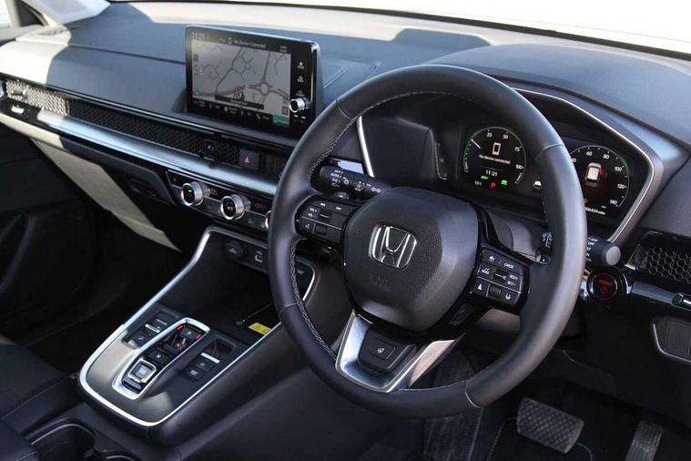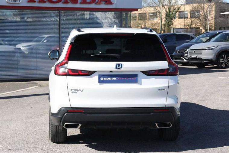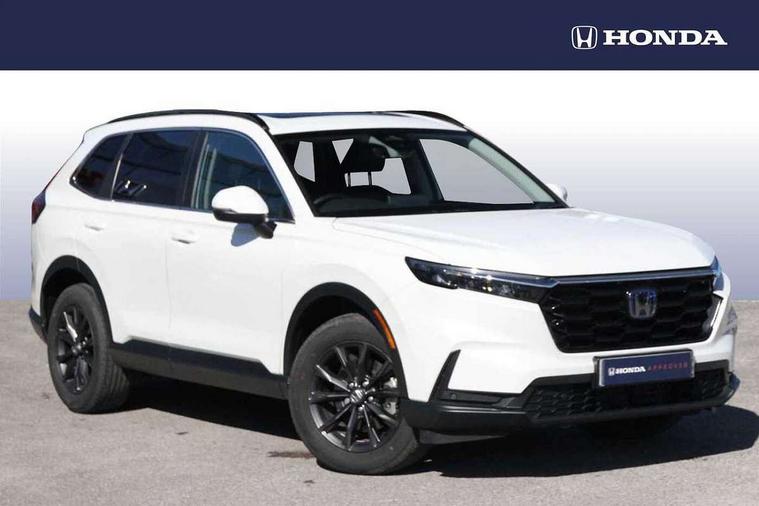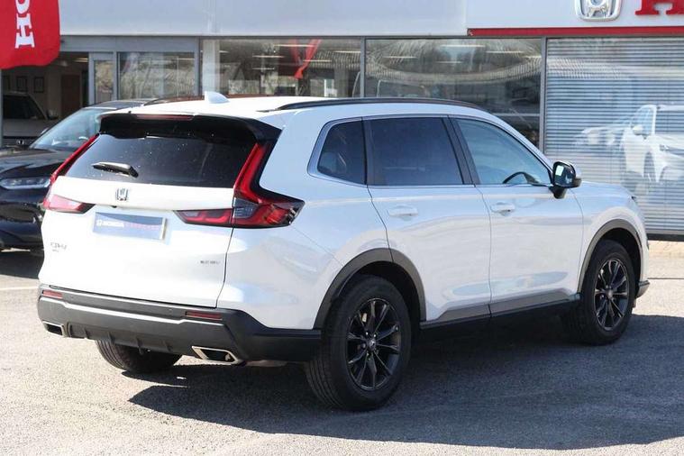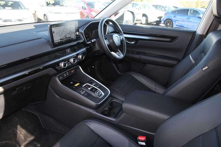 10.2" Multi information display, 4 x front and 4 x rear parking sensors, Active lane change assist, Adaptive cruise control with Cornering speed assist, Adjustable speed limiter, Agile handling assist, BLIS (Blind Spot Information System) with Cross Traffic Monitor, Bluetooth hands free telephone connection, Crossing traffic warning front, Drive mode (Econ, Normal, Snow, Sport), Driver attention monitoring system, E-call, eCall emergency call system, Electric power steering, Emergency stop signalling system, Forward collision warning, Handfree power tailgate with kick sensor and walk away close, HEV mode, Honda 360 sensing, Honda CONNECT with Navigation 9" touchscreen, AM/FM/DAB, Apple Carplay and Android Auto, live traffic info, Intelligent speed limiter, Lane change collision mitigation, Lane departure warning system, Lane keep assist system, Lane watch, Lead car departure notification system, Low speed following, Power meter, Rear view camera, Road departure mitigation, Traffic jam assist, Traffic sign recognition, Wireless apple carplay, Wireless charging, Amplitude reactive damper, Vehicle stability assist, 1X USB (A/2.5A) and 1x Charger (C/3A) on Front, 8 Speakers, DAB+ radio, Dashboard centre speaker, Front tweeters, Premium audio speakers, Rear USB 2x Charger (C/3A), Steering wheel mounted controls, Auto dimming rear view mirror, Auto headlights, Auto wipers, Body colour bumpers, Body colour door handles, Body colour plus material colour roof spoiler, Body coloured shark fin antenna, Chrome + black paint grille, Electrically adjustable and heated door mirrors, Electrically folding door mirrors, Exhaust pipe finisher, Exterior mirror tilt for reverse, Front and rear electric windows, Front LED Indicator lights, Front turn type led with sequential, Headlight auto on/off timer, High beam assist, LED 3rd brake light, LED daytime running lights, LED front fog lights, LED Headlights, LED rear lights, Low gloss black window garnish, Panoramic opening glass sunroof, Privacy glass, Rain sensor, Rear side wing doors, Rear wiper, Roof rails, Trailer stability assist, Welcome home function, 3 seat bench in 2nd row, 4 way driver lumbar support, 4 way electrically adjustable passenger seat without height adjust, 60/40 split folding rear seat, 8 way electrically adjustable drivers seat, Accessory sockets in Front & Trunk, Air conditioning - Rear vent, Ambient light in roof, Cargo net hooks, Courtesy lights, Driver and front passenger seat armrests, Driver/passenger front seatback pockets, Driver/passenger sunvisors and vanity mirrors, Driver/passenger sunvisors with illuminated vanity mirrors, Dual zone automatic climate control, Film hairline interior panels, Footwell ambient interior light front and rear, Front and rear ambient light (door handle&door line) and front cup holder, Front centre armrest, Front map lights, Genuine leather steering wheel, Heated front seats, Heated steering wheel, Hybrid emblem, I-Size ISO Fix Points, Instrument panel with garnish wood film, Leather upholstery, Light roof lining, Luggage floor box, Meter illumination, Normal pedals, Platinum chrome interior door handles, Rear centre armrest, Rear headrests, Rear reading lights, Reclining rear seats, Single front passenger seat, Sunglasses holder, Synthetic headrest, Tilt/telescopic adjustable steering wheel, Tonneau cover, Trunk light, Exclusive styling pack - CR-V, 5 x 3 point seatbelts, ABS/EBD, Anti-whiplash front headrests, Brake assist function, Collision mitigation braking system, Deflation detection system, Driver airbag, Driver SRS airbag (single stage inflation), Electronic parking brake with auto hold, Front and rear collision mitigation throttle control, Front and rear curtain airbags, Front and rear seat belts with emergency locking retractor (ELR), Front centre airbag, Front passenger airbag, Front side airbags, Hill descent control, Hill start assist, Knee airbags (DR) and (AS), Low speed brake system, Manual child lock in rear doors, Paddle deceleration control, Passenger SRS airbag with cut off switch, Rear side airbags, Honda super locks, Immobiliser, Mirrors and windows key fob operation, Remote central locking with 2 key fobs, Security alarm, Selectable door unlock, Smart entry + Smart start, Tilt sensors, Ultrasonic security sensor, Flat tyre solution temper tyre/repair kit,