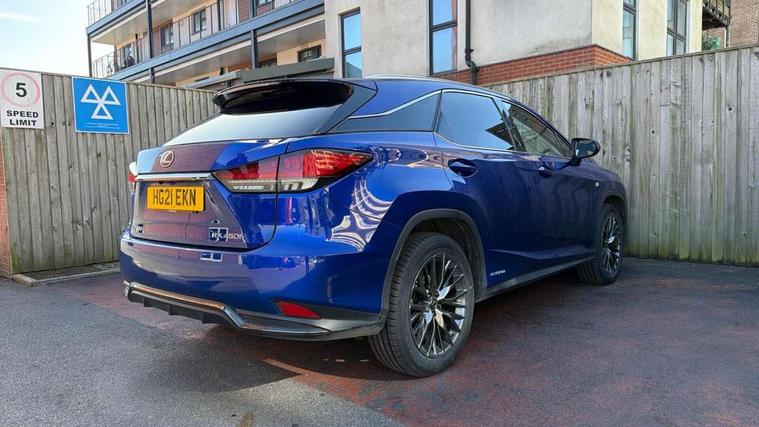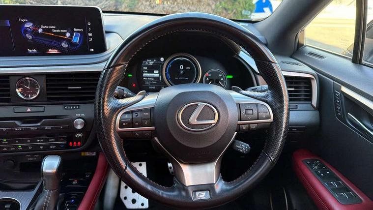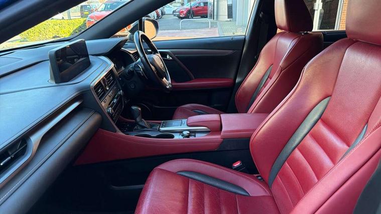 12.3" Touchscreen display and remote touch interface, 5 Driving modes EV/Normal/Eco/Sport/Sport+, Analogue clock with GPS function, Apple car play/Android Auto, Bluetooth mobile phone connectivity, Electric power steering, F SPORT combination meter, Front and rear parking sensors with intelligent clearance sonar, Hands free power boot lid operation with kick sensor, Lane change flasher function, Lexus link connected services with available optional wifi, Lexus Premium Navigation with full European map capability, street view and connected services, Multi-information display 4-inch TFT, Push button starter, Reversing camera with back guide lines, Wireless Smartphone charger, Adaptive variable suspension, E-Four Automatic transmission, F SPORT specific suspension tuning, Front and rear performance dampers, Vehicle Dynamics Integrated Management (VDIM), Vehicle Stability Control (VSC), 12 speakers Pioneer audio, AUX socket with VTR compatibility, DAB Digital radio, DVD, Front and rear USB ports, 3 eye LED headlights with adaptive high beam system with bladescan, Auto dimming rear view mirror, F SPORT exterior styling consists of Mesh front grille, front and rear bumper, badging, black outside mirror covers, Front and rear electric windows, Headlight washers, Heated, auto-folding door mirrors, auto dimming with rerverse tilt and memory, LED brake lights and rear lights with emergency brake signal, LED cornering headlights, LED daytime running lights, LED front and rear sequential indicators, LED front fog lights, Privacy glass, rear doors and tailgate, Puddle lights, Rain sensor windscreen wipers, Roof rails, 2 map pockets in the rear, 2 way electric lumbar support, 2 way manually adjustable front headrests, 2 way manually adjustable rear headrests, 2 x fixed shopping bag hooks in boot, 2 x Sunvisors with vanity mirror and lamp, 3 x 12V power sockets, 4 x tie down hooks in the boot, 40:20:40 split folding rear seats, 60/40 split folding rear seat with 40/20/40 folding ability, 8 way electric adjust front seats, Active sound control, Card holder installed in driver and passengers sun visors, Centre and rear armrest with 2 cupholders, Centre armrest with storage box, Climate concierge, Drilled F SPORT aluminium sports pedals, Driver seat memory function, Driver's seat easy access auto retraction function, Dual zone climate control air conditioning system with S flow and Nanoe technology, Electrically adjustable F SPORT leather steering wheel with paddle shifts and auto retraction function, Electrically adjustable steering column, F SPORT leather gearlever, F SPORT seats - Leather upholstery, Glasses holder in roof lighting panel, Heated front seats, Heated steering wheel, Illuminated entry system, Isofix standard child seat restraint mounting, LED interior illumination, Rear armrest with storage, Rear door sunshades, Self charging hybrid, Sliding/reclining rear seats, Small compartment to right of steering wheel, Textile carpet mats, Unique LED illumination instrumnet panel, Ventilated front seats, 3 point ELR front and rear seatbelts with pretensioners, ABS, Curtain airbags, Driver and front passenger 2 stage airbag, Driver/front passenger side airbags, Drivers knee airbag, EBD + Brake Assist, Electronic parking brake, Electronically controlled braking, Front passenger seat cushion airbag, Hill assist control, Lexus safety system - dynamic radar cruise control, pre collision system day and night, lane tracing assist, road sign, automatic high beam, OTA, Passenger airbag cut-off device, Rear passenger side airbags, Traction control, Tyre pressure warning, WIL whiplash protection front seats, Anti theft system with alarm, intrusion sensor, tilt sensor, glass breakage sensor and engine immobiliser, Locking wheel nuts, Security window etching, Smart keyless entry, Two motion door lock with double lock, Aluminium inlays, 20" F SPORT alloy wheels, Temporary spare wheel,