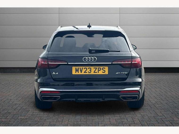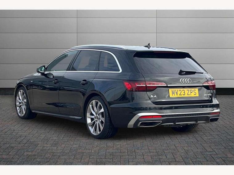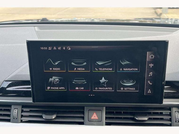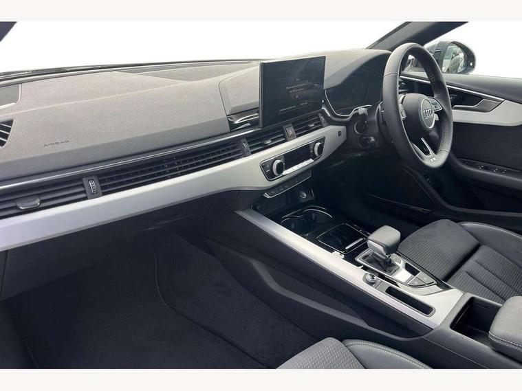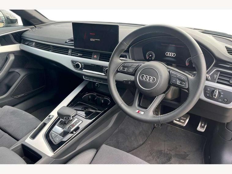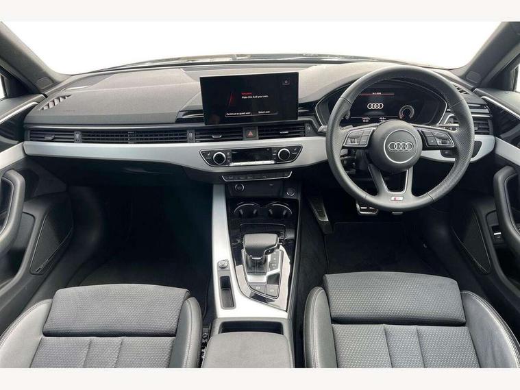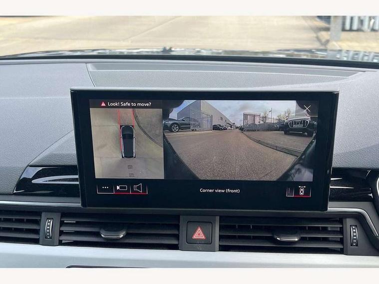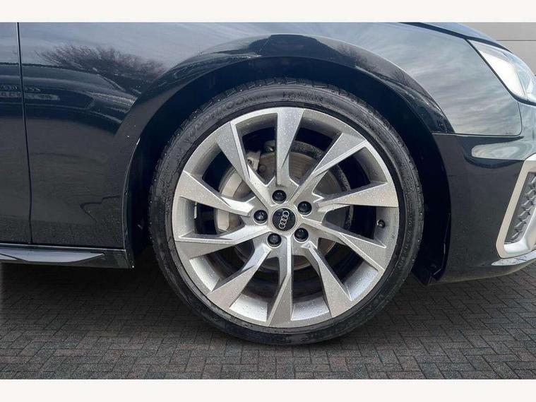 Audi connect safety and service (e-call), Audi connect with Amazon Alexa Integration, Audi drive select, Audi smartphone interface, Audi virtual cockpit, Automatic start-stop system with coasting functionality and efficiency programme, Bluetooth interface, Electromechanical power steering, Email, calendar and text messages displayed via MMI, MMI Navigation plus with MMI touch includes 10.1" high resolution colour MMI display, 3D map, Power operated tailgate, Voice control system, 54 litre fuel tank, Sports suspension lowered by 23mm, 2 USB charging ports, 8 passive loudspeakers, DAB digital radio reception, Aluminium roof rails, Auto dimming rear view mirror, Body colour door handles, Body colour front spoiler lip, Body colour side sill trim, Body coloured door mirrors, Electrically folding auto dimming/adjustable/heated door mirrors with LED side indicators and kerb view function for passenger side, Grained matt black side air inlets with matt aluminium silver inlay, High beam assistant, Honeycomb structure radiator grille in grained matt black, LED headlights with LED rear lights + dynamic rear indicators + headlight adjustment and high beam, turning light + LED daytime running lights, LED third brake light, Matt aluminium silver tailpipe trim, Privacy glass, Rain and light sensors, Rear side wing doors, Rear wiper, S Line badges on the front wings, S line front and rear bumpers with side skirts, S Line rear diffuser in matt anthracite black with trim strip in matt aluminium silver, S Line roof edge spoiler, Variable intermittent front wash/wipe, Windscreen with acoustic glazing, 3 spoke high multi-function sports leather steering wheel grips in perforated leather with S badging including paddle shift, 4 way electric lumbar support for driver and front passenger, 40/20/40 split folding 3 rear seat bench in 3 parts with rear centre armrest, Black cloth headlining, Black perforated leather gearknob, Contrast stitching on seats, steering wheel and gear lever gaiter, Deluxe 3 zone electronic climate control, Door sill trims with aluminium inlay, Electric load area cover, Front and rear head restraints, Front centre armrest, Heated front seats, Illuminated door sill trims with S logo, ISOFIX child seat mounting and top tether, Manual seat adjustment, Single front passenger seat, Stainless steel pedals and foot rest, High gloss package - A4, LED Interior light pack - A4/S4, 3 rear seatbelts, 6 airbags - Driver, front passenger, curtain and side windows, Electronic Stabilisation Control (ESC) including ABS, ASR and EDL, Hill hold assist, Multi collision brake assist, Pop-up bonnet for pedestrian protection, Pre sense city, Rear door child safety locks, Seatbelt monitoring, Warning triangle and first aid kit, Anti theft alarm, Anti theft wheel bolts, Central locking, Keyless Go, Matt brushed aluminium inlays, Tool kit, Tyre repair kit,