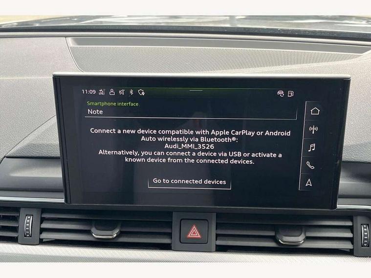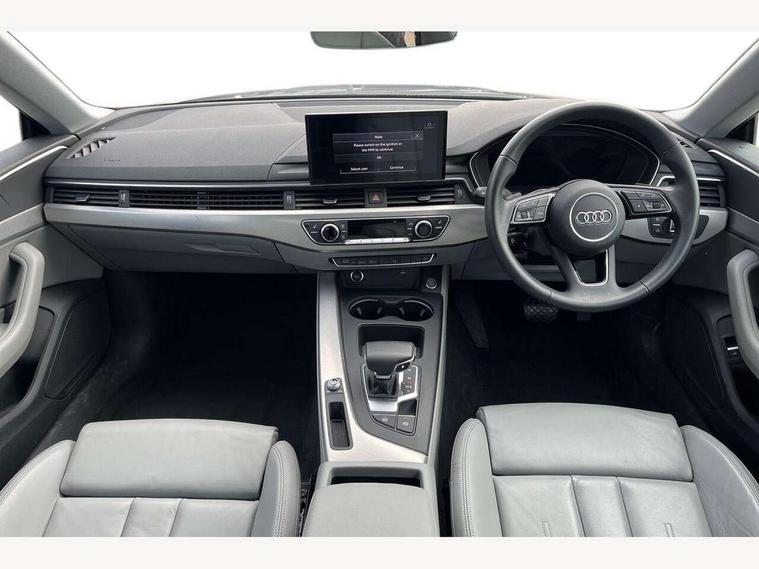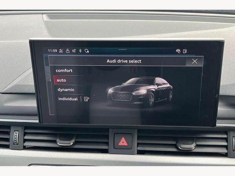 Audi connect safety and service (e-call), Audi drive select (Auto, Comfort, Dynamic and Individual), Audi smartphone interface, Audi virtual cockpit - 12.3" full colour digital instrument cluster, vehicle/engine speed, Radio/media information+Driver assistance systems, Automatic start-stop system with coasting functionality and efficiency programme, Bluetooth interface, Camera based traffic sign recognition, Electro-mechanical power steering, Email, calendar and text messages displayed via MMI, Front and rear parking sensors, Lane departure warning, MMI nav+ with MMI touch - 10.1" high resolution MMI display, touch sensitive, 3D map, route/country info, dynamic route guide, personal route assist, Power operated tailgate, Rear view camera, Service interval indicator, Voice control system, 54 litre fuel tank, Comfort dynamic suspension, 8 passive loudspeakers, CD player, DAB digital radio reception, Two additional USB ports for rear passenger in rear centre console, Two SDXC card slots, Auto dimming door mirrors, Auto dimming rear view mirror, Body colour bumpers, Body colour door handles, Body colour side sill trim, Body coloured door mirrors, Electric adjustable heated door mirrors, Electric folding door mirrors, Electric front windows, Front fog lights, Kerb-view function for passenger side, LED headlights and rear lights with LED daytime running lights, LED side indicator lights integrated into door mirrors, LED third brake light, Matt aluminium silver tailpipe trim, Radiator grille in matt anthracite black and air inlets with inserts in matt aluminium silver, Rain and light sensors, Rear diffuser in matt anthracite black with trim strip in matt aluminium silver, Rear side wing doors, Rear wiper, Sport front and rear bumpers with side skirts, Variable front intermittent wipers, Windscreen with acoustic glazing, 3 seat bench in 2nd row, 3 spoke high multi-function leather sport steering wheel with paddle shift and height and reach adjustable, 4 way electric lumbar support for driver and front passenger, 40/20/40 split folding 3 seater rear bench seat, Black carpets, Deluxe 3 zone electronic climate control, Front centre armrest, Front door sill trims with aluminium inlay, Front head restraints, Front/rear floor mats, Heated front seats, ISOFIX child seat mounting and top tether, Luggage compartment mat, Manual seat adjustment, Rear centre armrest, Rear headrests, Single front passenger seat, Sunvisors with vanity mirrors, Twin leather upholstery + front sports seats, LED interior light pack - A5/RS5, 3x3 point rear seatbelts, 6 airbags - Driver, front passenger, curtain and side airbags, Attention and drowsiness assist, Electromechanical parking brake, Electronic Stabilisation Control (ESC) including ABS, ASR and EDL, Front passenger airbag deactivation, Height adjustable front seatbelts, Hill hold assist, Manual child lock in rear doors, Multi collision brake assist, Pop-up bonnet for pedestrian protection, Pre sense city, Seatbelt monitoring, Tyre pressure warning, Variable restraint system, Warning triangle and first aid kit, Anti theft alarm system, Anti theft wheel bolts, Immobiliser, Keyless Go, Remote central locking, Aluminium ellipse silver inlays, Tool kit, Tyre repair kit,