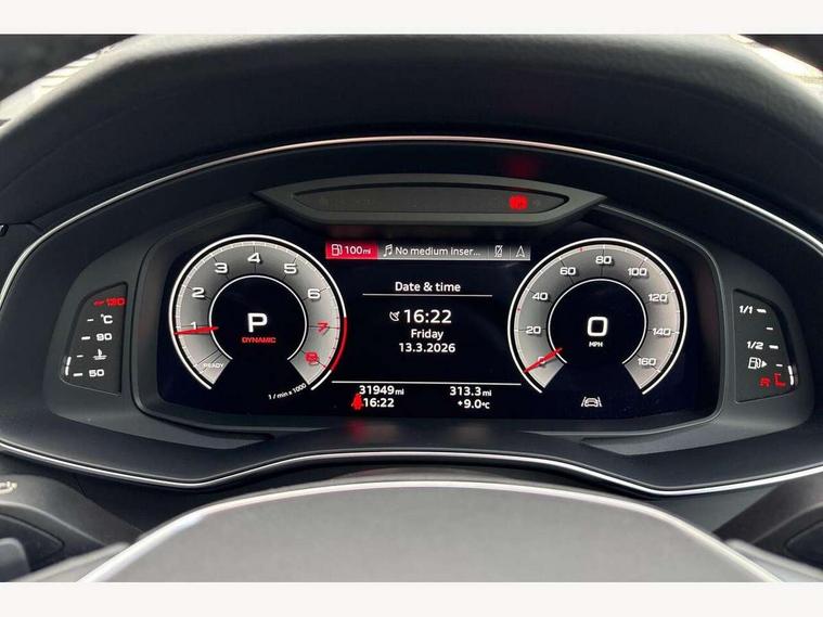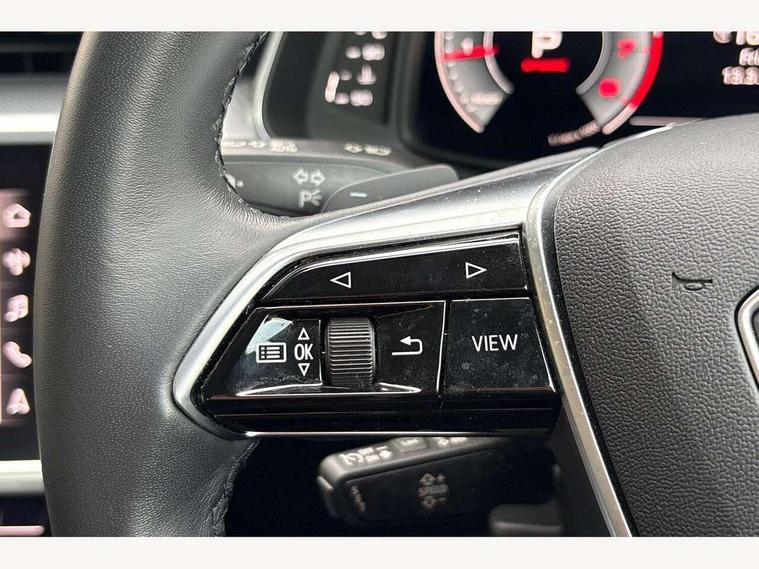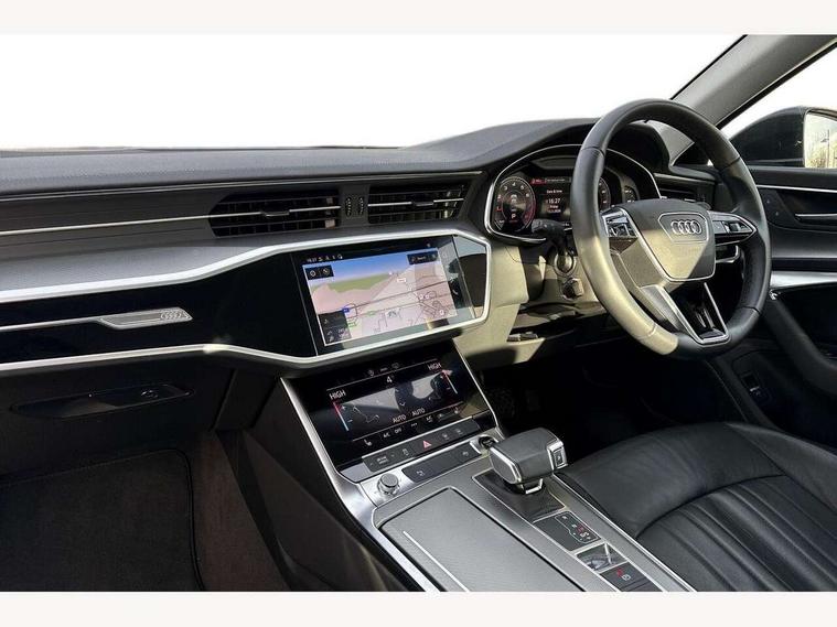 7" high resolution colour driver information display system, Audi connect safety and service (e-call), Audi connect with Amazon Alexa Integration, Audi drive select, Audi parking system plus - acoustic and visual park assist system for front and rear, Automatic start/stop system with coasting functionality, Bluetooth interface, Cruise control + speed limiter, Electric boot lid release, Lane departure warning system, Progressive steering, Rear view camera, Service interval indicator, Smartphone interface includes wireless Apple carplay/Android Auto, Voice control system, Standard suspension, Audi front music interface, Audi sound system, Auxiliary input socket, DAB Digital radio, USB connection, All weather LED headlights, Body colour bumpers, Body coloured door mirrors, Daytime running lights, Electric front/rear windows, Frameless auto dimming interior rear view mirror, Front intermittent wipers, Heat insulating darkened glass in side and rear windows, Heat insulating glass in windshield, LED rear lights, LED third brake light, Matt black rear diffuser with diffuser strip and tailpipes in chrome, Matt black side air intake grille with inlay in matt aluminium, Radiator grille in titanium black matt, single frame in chrome and horizontal struts in matt aluminium silver, Rain and light sensors, Rear boot, Rear side wing doors, 2 zone deluxe electronic climate control, 3 spoke high multi-function leather steering wheel with shift paddles, 4 way electric lumbar support for driver and front passenger, 40/20/40 split folding 3 rear seat bench in 3 parts with rear centre armrest, Black steering wheel insert, Centre armrest matches seat colour, Door sill trims with aluminium inlay, Front centre armrest, Front head restraints, Heated front seats, Height/reach adjust steering wheel, Illuminated sun visors with vanity mirrors, ISOFIX child seat mounting and Top Tether with front passenger airbag deactivation, Leather gear knob, Lunar silver cloth headlining, Rear headrests, Single front passenger seat, LED Interior Ambient Lighting Pack - A6, Non smoking pack - A6, Technology pack - A6, 3 point seatbelts on all seats, Airbags - Front side, front and rear including head, Audi pre-sense front, EBD - Electronic brakeforce distribution, Electromechanical parking brake, Electronic Stability Control (ESC) including ABS, ASR and EDL, Extended pedestrian protection measures, Manual child proof rear door locks, Seatbelt monitoring, Tyre pressure warning light, Warning triangle and first aid kit, Anti theft alarm with tow away protection, Anti-theft wheel bolts and wheel loosening detection, Immobiliser, Keyless Go, Remote central locking, Aluminium fragment inlay,
