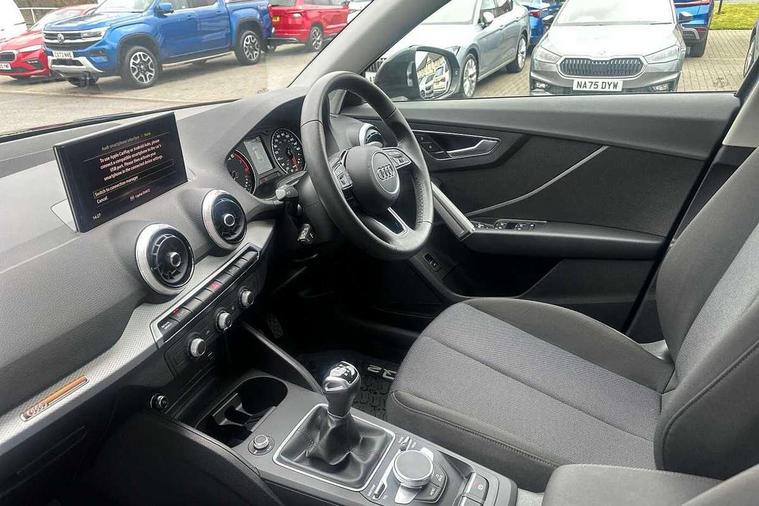 Audi drive select, Audi smartphone interface, Automatic start/stop system with recuperation, Bluetooth interface includes bluetooth audio streaming, Cruise control, E-call, Navigation preparation (ready 4 Nav) - enables MMI radio plus to be upgraded to MMI navigation, Power operated tailgate, Progressive steering, Rear parking sensors, 2 x SDXC card reader, 6 passive loudspeakers, DAB Digital radio, DVD Drive, MMI radio plus with 8.3" MMI screen and MMI controller, Auto dimming rear view mirror, Black grained body protection in bottom section of front/rear bumper, wheel arch trims, sidre skirts, Black window trims, Body colour door mirrors, Electrically adjustable, folding, auto dimming and heated door mirrors with integrated LED side indicators, Floret silver C-Pillar blade in metallic, LED daytime running lights, LED headlights with dynamic rear indicators, LED third brake light, Rear side wing doors, Rear wiper, Variable front intermittent wipers, 12v socket in front, 3 seat bench in 2nd row, 3 spoke leather trimmed multi-function steering wheel with height and reach adjustable, 4-way electric lumbar support for front seats including seat height adjustment for both front seat, 60/40 split folding rear seat bench, Front and rear head restraints, Front centre armrest, Front/rear floor mats, Height/reach adjust steering wheel, ISOFIX child seat mounting in front passenger and rear outer seats, Script cloth upholstery, Single front passenger seat, Titanium grey cloth headlining, Tool kit, 3x3 point rear seatbelts, 6 airbags - Front, curtain and front side airbags, Electromechanical parking brake, Electronic stabilisation control including ABS, ASR and EDL, Front passenger airbag deactivation, Hill hold assist, Pre-sense front with pedestrian recognition, Seatbelt monitoring, Tyre pressure warning light, Warning triangle and first aid kit, Anti theft alarm, Anti theft wheel bolts, Electronically operated child locks, Remote central door locking, Inlays in silver grey diamond paint,