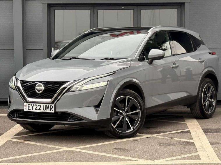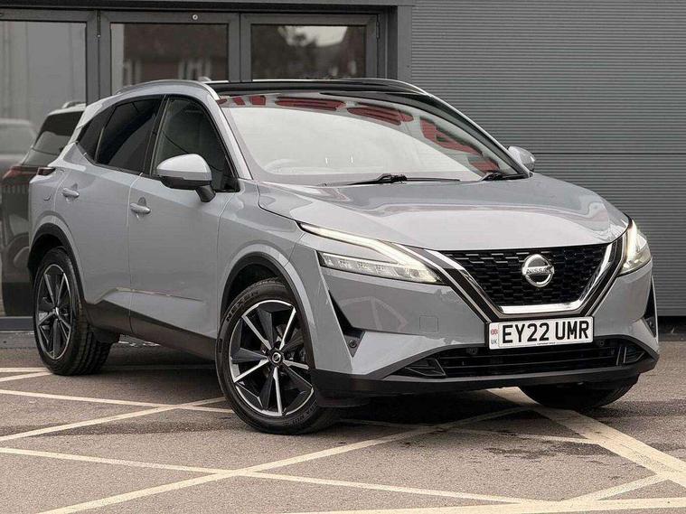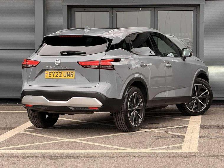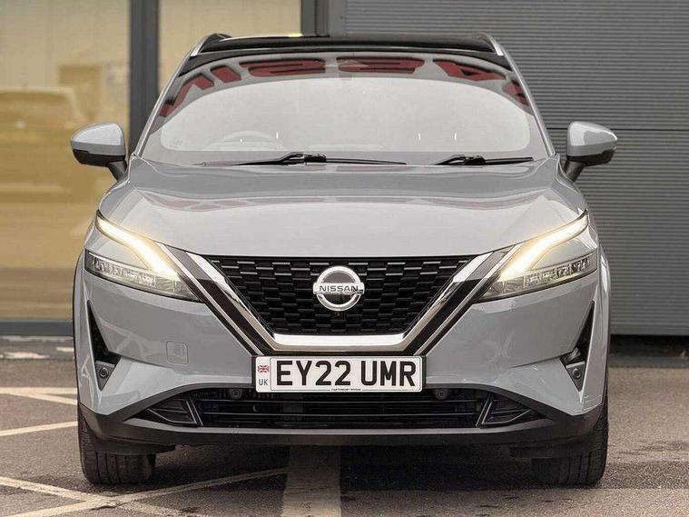 Drive assist pack - Qashqai, Heat pack - Qashqai, Tech Pack (Drive Assist + HUD), 19" alloy wheels, Capless fuel filler, Engine immobiliser, Nissan i-key, Rear bumper with silver insert, Remote central door locking with deadlocking, Thatcham Cat.1 alarm, 6 speakers, AM/FM audio system with DAB, Bluetooth audio streaming, Front USB connections (Type-A and Type-C), Rear USB charging only ports (Type-A and Type-C), 3x3 point rear seatbelt pretensioners + load limiters, ABS, ESP, EBD and brake assist, Active brake limited slip, Auto hold function, Child locks on rear doors, Curtain and front side, far side airbags, Driver and passenger airbags, Driver, passenger and 2nd row rear seat belt reminder, Electronic parking brake, Front seatbelt pretensioners + load limiters, Height adjustable front seatbelts, Hill start assist, Intelligent blind spot intervention, Intelligent front emergency braking with pedestrian, cyclist recognition and junction assist, Intelligent rear automatic braking, Tyre pressure monitoring system, Vehicle dynamic control, 3rd brake light, Auto dimming rear view mirror, Auto rear wiper when reversing, Body colour mirror caps, Body coloured door handles, Bodyside mouldings, Chrome side window finisher, Door handle with button, Electric auto folding door mirrors, Electrically adjustable and heated door mirrors with LED turn indicator, Fixed panoramic glass roof with electric sunshade, Follow me home headlights, Front and rear LED turning signals, Intelligent auto headlights, LED daytime running lights, LED rear lights, One touch front and rear electric windows with remote opening and closing, Partially body coloured bumpers, Privacy glass, Rear roof spoiler, Rear side wing doors, Rear styling plate, Roof rails, Shark fin antenna, Splash free rain sensing wipers, Super UV and infrared cut glass, Three blink turn signal, 12v power socket in dashboard and luggage, 2 way electrical driver lumbar adjustment, 2x Rear coat hooks, 3 bench rear seats in 2nd row, 3 rear headrests, 4 folding assist grip, 6 Luggage hooks - 4 on floor, 2 on side, 60/40 split folding rear seat bench, 8 way electric adjustable drivers seat, Ambient lighting around centre console, Ambient lighting in front doors, Centre console storage tray, Chrome interior door handles, Cloth/syntech leather monoform upholstery, Dark headlining, Driver and front passenger sunvisors with illuminated vanity mirrors, Driver seat back pocket, Dual zone automatic climate control with pollen filter, Front and rear door storage, Front cupholders x 2, Front door with bottle holders, Glovebox with light, Hard trunk cover, Height adjustable front headrests, Leather shift knob, Leather steering wheel, Luggage board system, Luggage space lighting, Manual lumbar support on passenger seat, Manually adjustable passenger (slide recline + lifter), Multifunction steering wheel, Passenger seat back pocket, PVC front centre console and armrest, Rear armrest with 2 cupholders, Rear door bottle holders, Single front passenger seat, Soft PVC kneepad, Steering wheel switches, Tilt/telescopic adjustable steering wheel, Two rear isofix child seat anchorage points with top tether, Welcome light and doors with console tray ambient lighting, Blind spot warning, Drive modes (sport, normal, eco), Dusk sensor, Electric speed sensitive power steering, Emergency and breakdown call, Front and rear parking sensors, Full Digital 12.3" TFT Digital Combimeter, Google maps services - search, weather, 3D maps and Google street view, Hands free power tailgate, Idle stop/start system, Intelligent around view monitor, Intelligent Cruise control (ICC), Intelligent driver alert system, Intelligent forward collision warning, Intelligent lane intervention, Lane departure prevention, Lane departure warning system, Moving object detection, Nissan connect 9" touchscreen infotainment system, Nissan connect navigation, Push button starter, Rear cross traffic alert, Remote control services - door locks, lights, horn and car locator, Telematics - notifications and connectivity services, TomTom live traffic services, Traffic sign recognition with legal speed adjustment, Trip computer, Virtual personal assistant and firmware over the air capability, Wireless Apple CarPlay and wired Android Auto, Wireless charging pad,