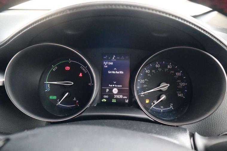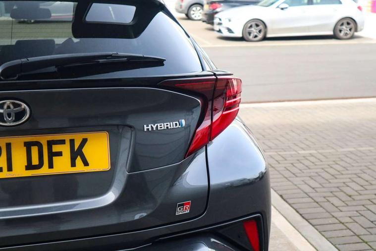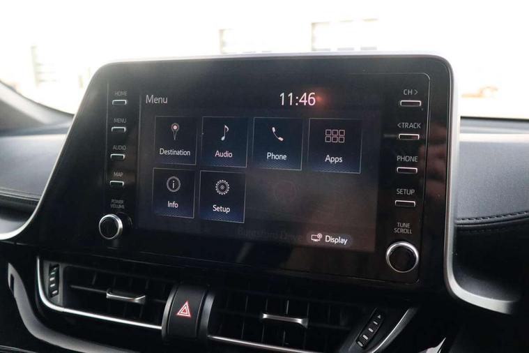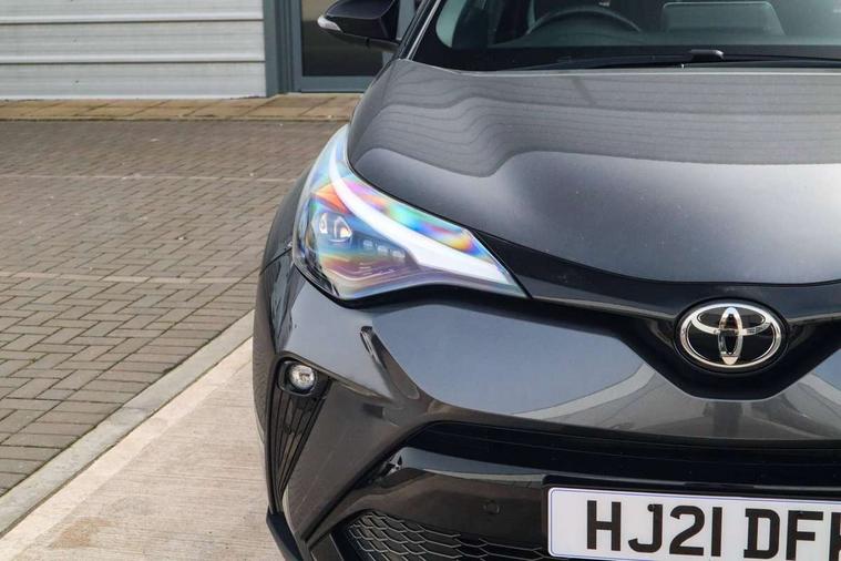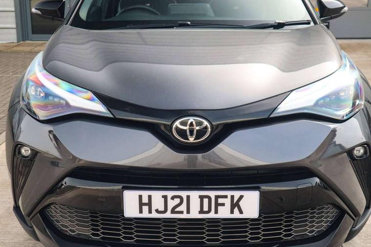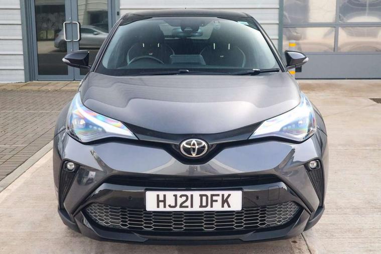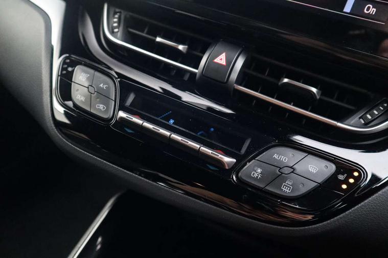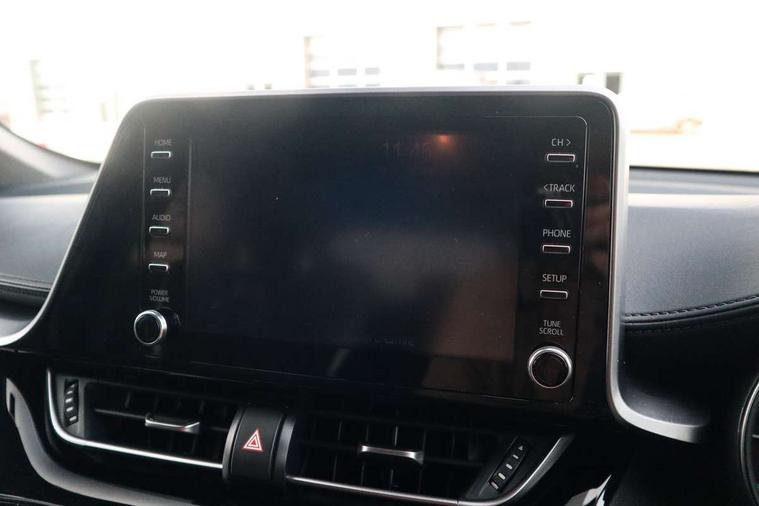 4.2" coloured TFT screen for multi-information display, Adaptive cruise control, Bluetooth connectivity, Electric power steering, Hybrid system indicator, Lane departure alert with steering control, Remote boot door release in cabin, Remote boot door release in key, Reversing camera, Road sign assist - RSA, Simple Intelligent parking assist, Touch 2 Go navigation system, Trip computer, Voice recognition, Vehicle Stability Control (VSC), 6 speakers, AM/FM radio, DAB Radio (Digital Audio Broadcasting), Toyota touch 2 multimedia system with 8" display, USB connector, Wi-fi connectivity, Adaptive front light system, Adaptive LED Headlights, Anti-jam protection on power windows, Auto high beam, Auto up and down function on all power windows, Automatic headlight levelling, Automatic headlights, Automatic headlights cut-off, Black and body coloured rear bumper, Black upper front grille, Body colour door handles, Body colour door mirrors, Body coloured front bumper, Boot door release with push button, Chrome front lower bumper, Electric heated door mirrors, Follow me home headlights, Front and rear power windows, Front spoiler lip in black, Honeycomb lower front grille, LED daytime running lights, LED fog lights, LED front light guide, LED High mounted stop light, LED rear brake lights, LED rear combination lights, Noise reduction layer on front windows and windscreen, Power adjustable door mirrors, Privacy glass, Rear sequential indicators, Rear spoiler, Rear tailgate, Rear window defogger, Rear window wiper, Shark fin antenna, UV-filter on driver and passenger windows, UV-filter on rear windows, 12v power outlet - front, 3 rear headrests, 3 spoke perforated leather steering wheel, 60/40 split folding rear seat, Adjustable rear headrests, Adjustable speed limiter switch on steering wheel, Assist grips front and centre pillar, Audio and telephone switches on steering wheel, Black front door assist grips, Blue ambient lighting on front cup holders, Blue ambient lighting on front doors, Boot light, Chrome interior door handles, Driver and front passenger personal light, Driver and front passenger Whiplash Injury Lessening seats, Driver and passenger seatback pockets, Dual zone automatic air conditioning, Fabric upholstery, Front cupholders, Front head restraints, Front sports seats, Glovebox with internal light, Hard tonneau cover, Heated driver and front passenger seats, Hooks for luggage holding net, Humidifying Nanoe air purifier, Illuminated entry system, Isofix attachments on outer rear seats, Leather gearshift, Light on driver sun visor, Light on passenger sun visor, Manual telescopic steering wheel, Manual tilt steering wheel, Manually height adjustable driver seat, Manually height adjustable front passenger seat, Manually reclining driver seat, Manually reclining front passenger seat, Manually sliding driver seat, Manually sliding front passenger seat, Microphone on front personal light, Mirror on driver sun visor, Mirror on passenger sun visor, Multimedia switches on steering wheel, Pollen filter, Power adjustable lumbar support on driver seat, Shopping bag hooks, Slow opening on lower glovebox, Voice recognition switch on steering wheel, Tech with parking sensor pack - C-HR, 16 Disk front wheel brake, 3x3 point rear seatbelts, ABS+EBD+Brake assist, Electronic parking brake, Front and rear seatbelt reminder, Front passenger airbag on/off switch, Hill start assist control (HAC), Pre collision system with pedestrian detection, Pre-tensioners and force limiters, Rear door child safety locks, SRS Airbags - Driver + Front passenger, front side, front and rear curtain and driver's knee airbags, Toyota safety sense, Tyre pressure monitoring system, Acoustic vehicle alert system (AVAS), Glass-breaking alarm sensors, Immobiliser, Intrusion alarm, Intrusion sensor, Motion sensor alarm, Power door locks, Power passenger window lock, Remote central locking, Black lower dashboard, Black upper dashboard, Piano black console, Silver deco line on upper dashboard, 19" Black machined alloy wheels, Tyre repair kit,
