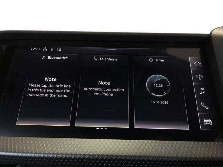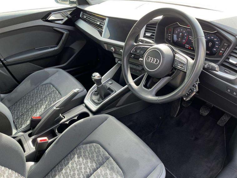 10.25" Digital instrument cluster display classis style instrument dials + speed, odometer, time, outside temperature, telephone menu + fuel level warning, Audi drive select - power steering assistance + engine, Audi smartphone interface with connect compatible smartphone via USB directly MMI display + Nav, music, third party apps controlled via MMI controller, Automatic start/stop system, Bluetooth interface, Cruise control, Driver's information system, Electromechanical power steering, Emergency e-call, Lane departure warning system, Rear parking sensor, Service interval indicator, Speed limiter, Voice control system, Washer fluid level indicator, Dynamic suspension, 2 x USB type C connection points, 6 passive loudspeakers, DAB Digital radio, MMI radio plus with 10.1" colour MMI display screen and MMI touch, Auto dimming rear view mirror, Body coloured bumpers, Body coloured door mirrors, Electric front and rear windows, Electrically adjustable, heated, folding door mirrors with integrated LED side indicator, Front side air inlets in grained matt black and C frame in anthracite black, Heat insulating glass windscreen and side windows, Heated rear windscreen, High level LED brake light, LED headlights with LED rear lights + dynamic rear indicators + headlight adjustment and high beam, turning light + LED daytime running lights, Radiator grille and rear diffuser in matt anthracite black, Radiator protective grille frame in matt aluminium silver, Rain and light sensors, Rear fog lights, Rear side wing doors, Rear wiper, Side front spoiler lips in grained matt black, 12V socket in centre console with two cup holders, 3 rear seats with headrests, 3 seat bench in 2nd row, 3 spoke leather multifunction plus steering wheel, 40:60 Split folding rear seat or folded fully, Black front and rear floor mats, Door sill trims with aluminium inlay, Driver and passenger seat with manual height adjust with forward and backwards adjustment, Front head restraints, Front passenger seat, Grey cloth headlining, Height and reach adjustable steering wheel, ISOFIX child seat mounting for front passenger and outer rear seats including top tether attachment point of outer rear seats, Leather gear knob with aluminium trim, Leather handbrake grip, Luggage compartment light with front and rear reading lights, Manual air conditioning, Manually adjustable lumbar support in front seats, Novum cloth upholstery with front sport seats, Luggage compartment pack - A1, 3x3 point rear seatbelts, Audi pre-sense front with pedestrain and cyclist recognition, Brake assist function, Driver and front passenger airbag with front side and head airbags, Electronic Stability Control including ABS, EBD, ASR and EDL, Front passenger airbag deactivation switch, Hill hold assist, Manual rear child locks, Seatbelt height adjustment for front seats, Seatbelt monitoring, Tyre pressure warning light, Warning triangle and first aid kit, Anti theft alarm, Anti theft wheel bolts and loose wheel warning, Immobiliser, Remote central locking with 2 foldaway keys, Aluminium trim for control switches, air vents and digital instrument cluster, Black dashboard, Silver grey accent areas including air vents, door handle recesses and centre console in diamond paint finish, Slate grey inlays polygon structure in fine paint finish,