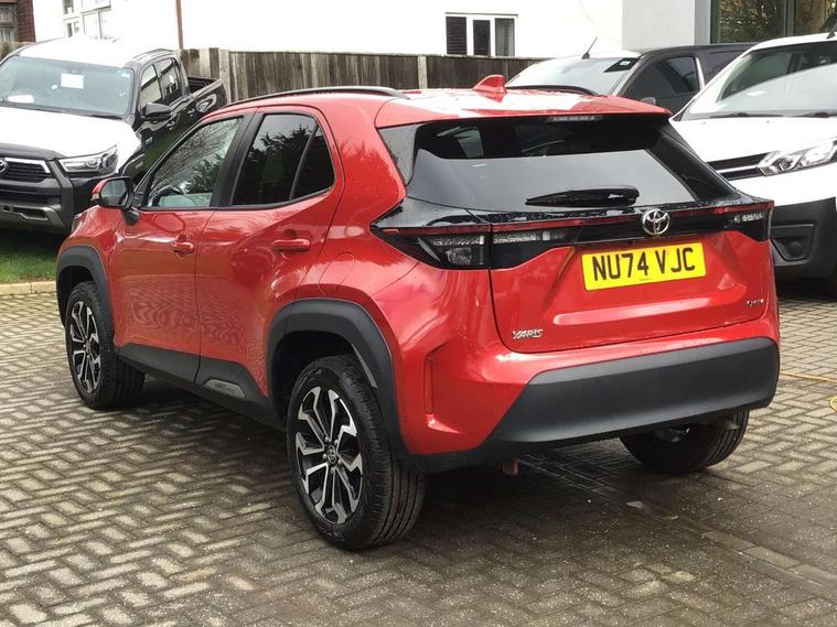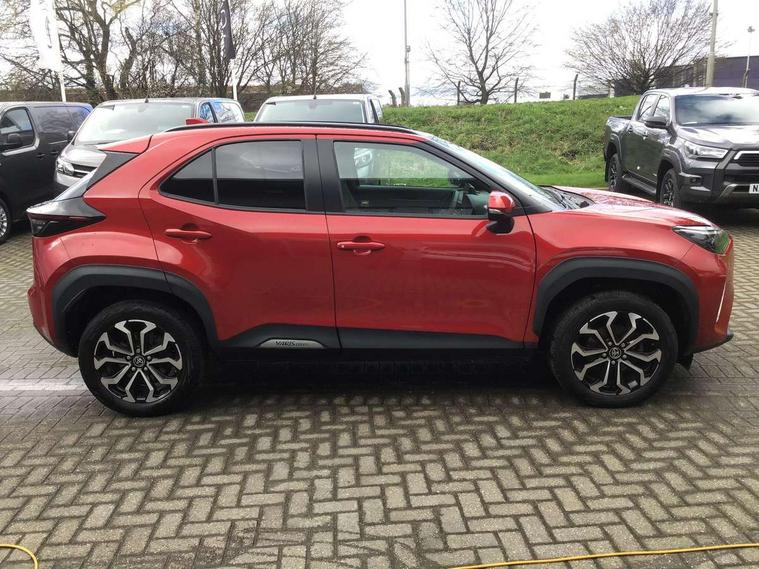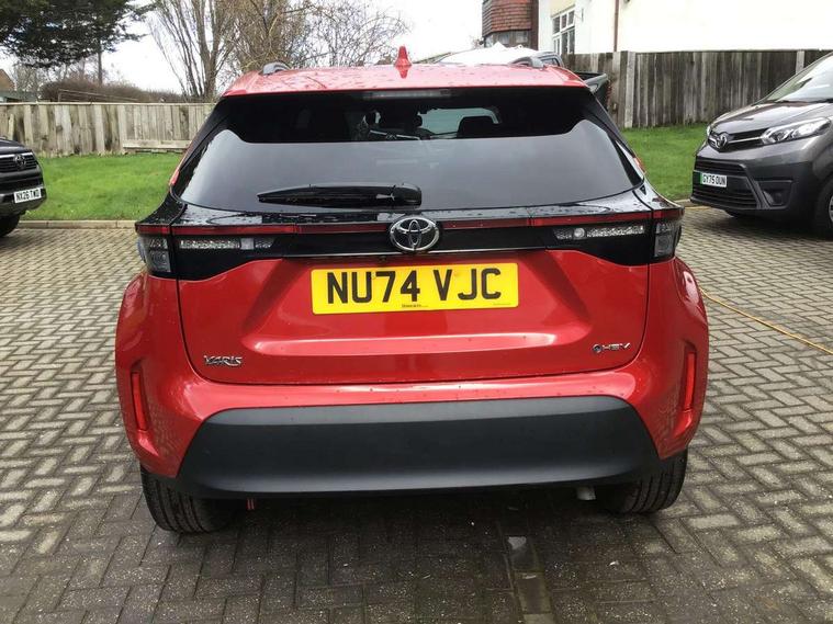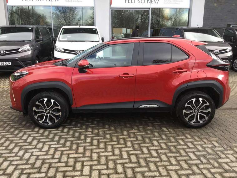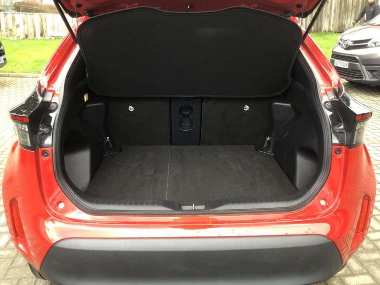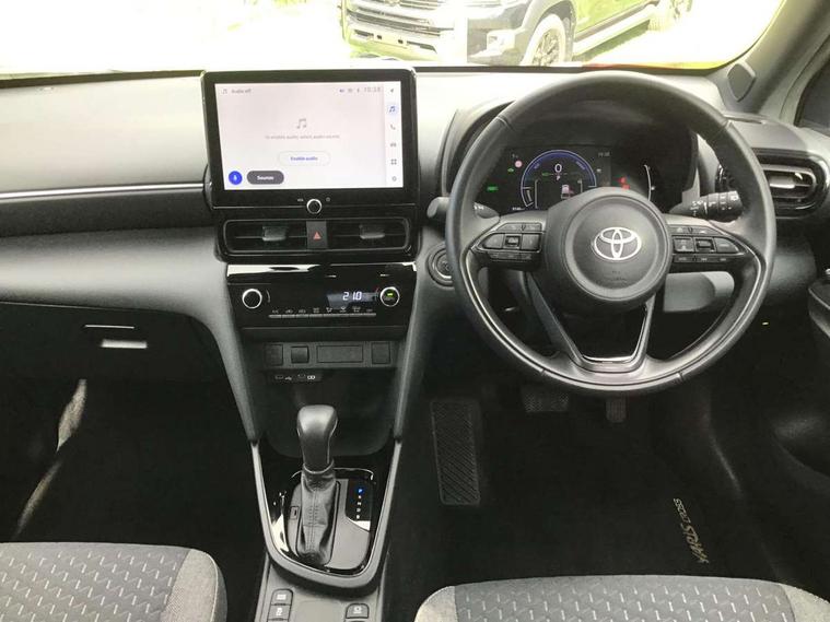 10.5" Multimedia display screen, 7" Multi information display screen, Adaptive cruise control, multi info switches on steering wheel, Adjustable speed limiter, Bluetooth connectivity, Color multi-information display, Digital speedometer, Digital tachometer, Drive mode selector, Driver attention alert system, eCall emergency system, Electric power steering, Emergency driving stop system, Full range intelligent adaptive cruise control, Hybrid system indicator, Intersection turn assist, Key reminder warning, Lane trace assist, My T Connected services, Pre-collision system enhanced with emergency steering assist, Reversing camera, Road sign assist - RSA, Static guide lines on reversing camera, Telephone switch on steering wheel, Wireless Smartphone integration incl Apple CarPlay, Steering assisted vehicle stability control, 6 speakers, DAB Digital radio, Front USB Type-C connector, Front USB-C device charger, 3rd brake light, Acoustic windscreen glass, Anti-jam protection on power windows, Auto high beam [AHB] with on/off switch, Auto intermittent windscreen wipers, Automatic headlights, Automatic headlights cut-off, Black door moulding, Black lower front grille, Black protection moulding on side doors, Black roof rails, Black upper front grille, Black wheel arch mouldings, Body colour door handles, Body colour front bumper, Body colour rear bumper, Electric adjustable heated door mirrors, Follow me home headlights, Front and rear electric windows with auto up/down function, Headlight cut off reminder, Indicators integrated on door mirrors, Intermittent rear wiper, LED daytime running lights guide, LED front fog lights, LED front light guide, LED Indicators, LED projector headlights, LED rear lights with sequential indicators, Manual day/night rear view mirror, Manual headlight levelling, Manually retractable door mirrors, Noise reduction layer on windscreen, Pre wiring for towing hook, Privacy glass, Rain sensor, Rear side wing doors, Rear spoiler, Rear window defogger, Shark fin antenna, 12v power outlet - front, 2x Rear coat hooks, 3 seat bench in 2nd row, 3 spoke leather steering wheel, 40/60 split deckboard, 40:20:40 split folding rear bench seat, Adjustable rear headrests, Adjustable speed limiter switch on steering wheel, Auto air conditioning, Black roof lining, Boot light, Central armrest, Driver and front passenger personal lights, Driver and front passenger Whiplash injury Lesseing seats, Fabric door trim, Fabric upholstery, Front console box, Front cup holders, Front door pockets, Front head restraints, Front/rear assist grips, Gear shift indicator, Gloss black surround on gear shift console, Height adjustable driver's seat, Height adjustable front passenger seat, Hooks for luggage holding belts, ISOFIX child restraint system, Lane departure alert switch on steering control, Leather gearshift, LED centre room light, Manual telescopic and tilting steering wheel, Mirror on driver and passenger sun visor, Pollen air filter, Power adjustable lumbar support on driver seat, Rear cup holders, Rear door pockets, Rear head restraints, Remote air-conditioning system, Single compartment glovebox, Single front passenger seat, Soft tonneau cover, Storage box under boot floor, Voice recognition switch on steering wheel, Yaris cross floor mats, 3x3 point rear seat belts, ABS+EBD+Brake assist, Driver and passenger central airbags, Driver and passenger front airbags, Driver and passenger side airbags, Electronic parking brake, Emergency brake light system (EBS), Front seat belt reminder, Hill start assist control (HAC), Passenger airbag on/off switch, Pre-collision system with pedestrian and cyclist detection, Rear door child safety locks, Rear passenger side airbags, Rear seat belt reminder, Traction control, Tyre pressure warning system, Immobiliser, Intrusion alarm, Keyless smart entry with push button start, Power door locks, Power passenger window lock, Remote door lock, Gloss black side air vent surrounds, Tyre repair kit,