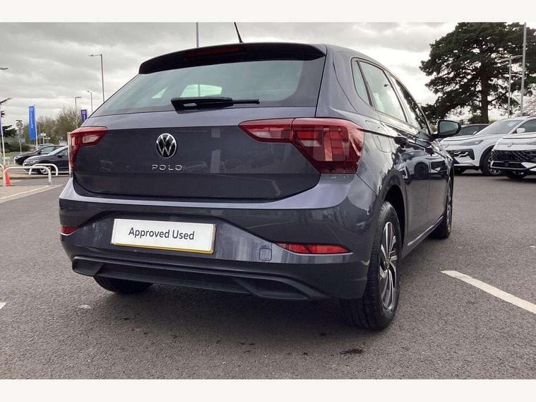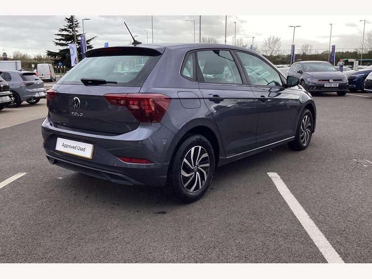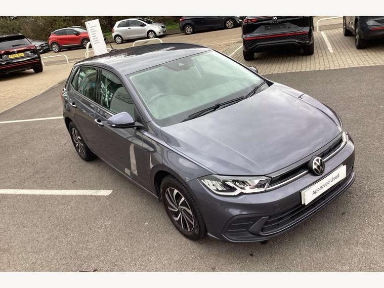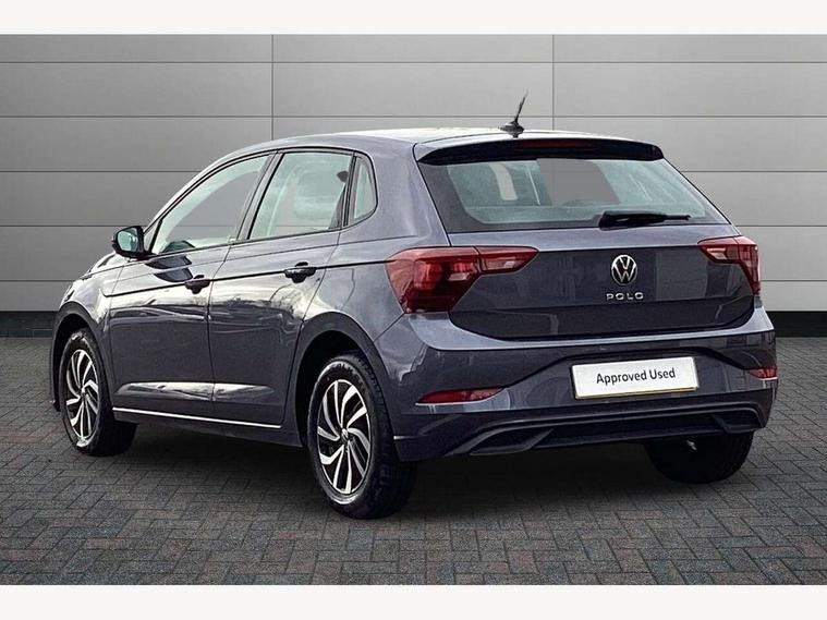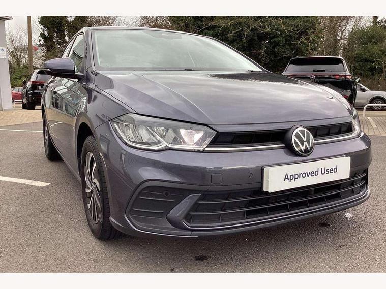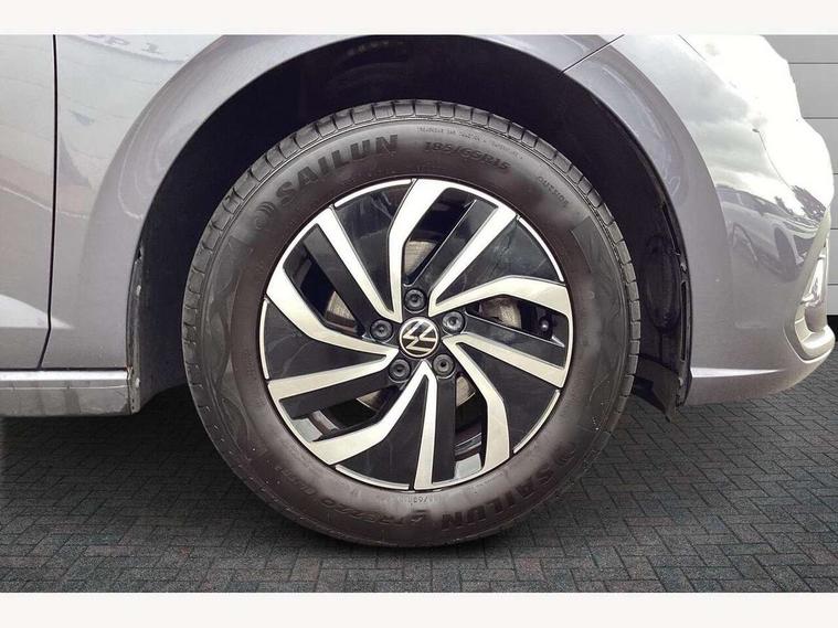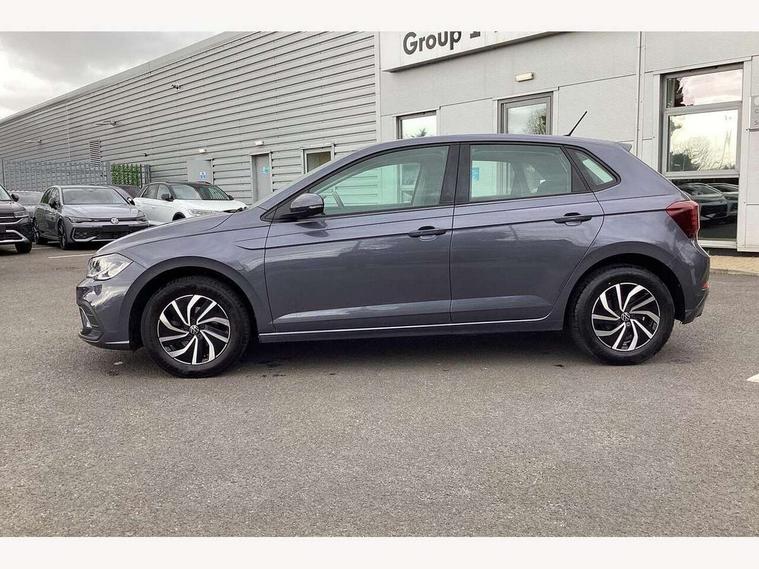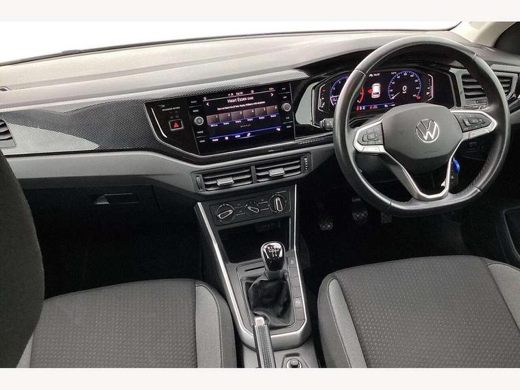 Adaptive cruise control without follow-to-stop and speed limiter, Bluetooth mobile phone interface, Driver alert system, Emergency call service, Front assist system, Power assisted speed sensitive steering, Preparation for We connect and We connect plus, Speedo and rev counter, electronic odometer, trip, service interval display and fuel gauge, Standard rear axle, Travel Assist - Lane keeping system and traffic jam assist, Travel assist including emergency assist, Trip computer, Warning signal and warning light for front and rear seatbelts not fastened, Washer fluid level indicator, Wireless app connect, Front wheel drive, Rear shock absorpion, Start-stop system with battery regeneration (recuperation - energy recovery during braking), DAB Digital radio, Diversity antenna for FM reception, Front and rear 6 speakers, Automatic dimming interior rear view mirror, Body colour bumpers, Body colour door handles, Body colour door mirrors, Electric front windows, Heat insulating darkened glass in side and rear windows, Heat insulating glass windscreen, Power folding adjustable/heated exterior mirrors and front passenger exterior mirror lowering function, Rain sensor, Rear electric windows, Rear fog light, Rear side wing doors, Rear windscreen washer and wiper with interval delay, Third brake light, 12V power socket in centre console, 2 front and 2 rear reading lights, 2 USB-C ports in the front, 2 USB-C charging sockets on the center console in the rear, 3 rear head restraints, 60/40 split folding rear seat and rear seat bench not split, Ceramique headliner, Chrome plated radiator grille inserts, air vent surrounds and light switch surrounds, Door and side trim panel, Driver and front passenger seat height adjustment, Driver/passenger sunvisors with illuminated vanity mirrors, Front centre armrest, Front seat backrest storage pockets, Front standard seats, Handbrake lever handle in leather, Hartley/Thomas cloth upholstery, Isofix child seat preparation easy-fit (for two outer rear seats, and front passenger seat) compatible with I-size, Leather trimmed gear knob, Luggage compartment cover, Luggage compartment floor, Luggage compartment lighting, Multifunction steering wheel, Single front passenger seat, Standard pedal cluster, Light and vision pack - Polo, 3 point height adj front seatbelts + pretensioners, 3x3 point rear seatbelts, ABS, Driver and front passenger airbag with front passenger airbag deactivation, Drivers and front passengers safety optimised head restraints, ESC (Electronic stability control) + EDL (Electronic Differntial lock) and ASR (Traction control), Extended and predictive pedestrian/ cyclist protection, Front curtain and side airbags with center airbag, Front disc brakes, Hill hold control, Manual child lock in rear doors, Rear drum brakes, Single tone horn, Tyre pressure loss indicator, Alarm with interior protection, Anti-theft alarm system with interior monitoring, backup horn, and towing protection, Anti-theft wheel bolts, Electronic engine immobiliser, Lava stone black gloss/matt decorative inserts in dash and front door panels, Low rolling resistance tyres,
