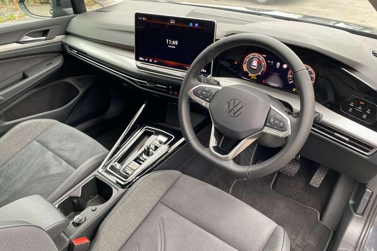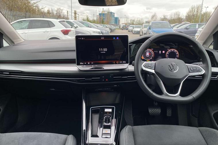 Activated carbon canister, Adaptive cruise control (ACC), Advanced driver attention and drowsiness monitor, Dynamic road sign display, E-Sim card for online connectivity, eCall emergency call system, Multi-color Digital cockpit pro, selection of different info profile possible, Multifunction front facing camera for distance control, Navigation system, Oncoming vehicle braking when turning including swerve support, Preparation for light assist system, Side assist blind spot lane change system, rear traffic alert and exit warning system, Speed limiter, Speedo, rev counter, electronic odometer, trip, service interval display, exterior temperature and fuel gauge, Traffic jam assist, Voice enhancer and voice control, Warning signal and warning light for front and rear seatbelts not fastened, We connect plus preparation, We connect preparation, Wireless app connect, Hybrid propulsion system, Petrol Particulate Filter, Start-stop system with battery regeneration (recuperation - energy recovery during braking), XDS electronic differential lock for improved traction and handling, 2 USB C ports in front, 2 USB charging sockets on the centre console in the rear charging capacity upto 45W, Comfort telephony + wireless charging, without wireless aerial connection, Digital radio reception (DAB), Diversity antenna for FM reception, Gaming platform via car app, Infotainment system with 12.9" display, Mobile phone interface with inductive charging feature, 3rd brake light, Auto dimming rear view mirror, Auto headlights, Automatic headlamp activation with Coming home and Leaving home feature, Body colour bumpers, Body colour door handles, Body colour door mirrors, Chrome trimmed front air intake surrounds, Chrome trims on the side window bottom, Exterior ambient lighting with with illuminated molding between the headlamps and door handle recess, Exterior mirrors convex on the left and aspherical on the right, Front and rear electric windows, Heat insulating windshield made of laminated glass, LED daytime running lights, Rain sensor, Rear exhaust tailpipe, Rear fog light on one side and reversing lights on both sides, Rear side wing doors, Rear windscreen washer and wiper with interval delay, Remote electrically foldable door mirrors, puddle lights and reverse activated passenger's door mirror, Welcome light with surround lighting, 12V socket in front centre console, 12V socket in luggage compartment, 3 rear head restraints, 3 seat bench in 2nd row, Air care climatronic 3 Zone automatic climate control with rear air conditioning control panel, Ambient lighting with 30 colour including LED light unit in front footwell with selectable light colour, Art velours cloth upholstery, Carpet mats, front and rear, Chrome plated radiator grille inserts, air vent surrounds and light switch surrounds, Door insert, side trim panel and arm support in leatherette, Front centre armrest, Front head restraints, Front seat lumbar support adjuster, ISOFIX anchors for child seats on outer rear bench seats and on front passanger seat compatible for i-Size, Luggage compartment lighting, Manual height adjustable front seats, Plastic gear knob, Rear cupholder and loadthough, Single front passenger seat, Soul black instrument panel, Split folding backrest with centre armrest and unsplit rear seat bench, Sports comfort seats in front, Standard pedal cluster, Storm grey roof lining, Sun visors with illuminated vanity mirrors, Driver assistance pack - Golf DSG Estate/Hatchback, 3 point height adj front seatbelts + pretensioners, 3 rear three point seatbelts, ABS, Autonomous emergency braking front assist with pedestrian and cyclist monitoring, Child locks on rear doors, Driver and front passenger airbag with front passenger airbag deactivation, Electronic parking brake with auto hold, ESC (Electronic Stability Control), Extended pedestrian protection measures, Hill start assist, Rear disc brakes, Two tone horn, Tyre pressure loss indicator, Volkswagen roadside assistance, Anti theft wheel bolts, Preparation for alcohol interlock, New brushed dark metal decorative inserts for dashboard and front door panels,