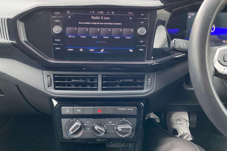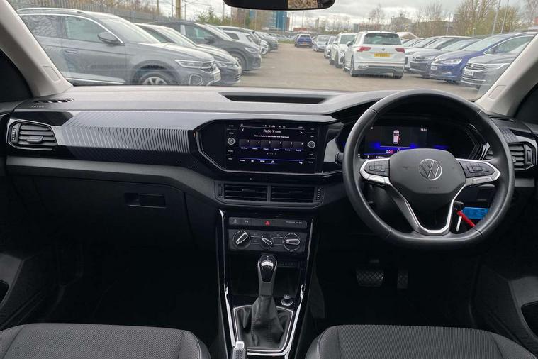 'Lights On' Reminder warning buzzer, Adaptive cruise control including front assist, forward collision warning, autonomous emergency braking, speed limiter, Blind spot monitoring, Bluetooth telephone and audio connection for compatible devices, Car information display, Digital cockpit, Driver alert system, eCall emergency call system, Lane assist, Low washer fluid warning light, Multifunction computer with visual gear change recommendation for fuel consumption, Operating permit alteration, Power assisted speed sensitive steering, Speedo, rev counter, electronic odometer, trip, service interval display, exterior temperature and fuel gauge, Stop/start system, Warning sound and light for doors and tailgate open, Warning sound and light for front seatbelts unfastened, We Connect Go Dongle, Wireless Car net app connect with Apple CarPlay, combined functionality of Apple CarPlay/Android Auto and MirrorLink, Battery regeneration during braking, Misfuel prevention device, 2x USB connection with USB charging sockets and in rear centre console, DAB Digital radio receiver, Diversity antenna for FM reception, Multi device interface (MDI) with USB connection, Music playback - MP3, WMA and AAC files, Premium USB cable for Apple or Android smartphone compatibility, Simultaneous pairing of 2 compatible mobile devices, Title and cover art display, Automatic hazard lights activation under emergency braking, Black door mirrors, Black roof rails, Body colour door handles, Body coloured bumpers, Dusk sensor + automatic driving lights, Electrically foldable, adjustable and heated door mirrors with reverse activated kerb view adjustment on passenger's side, Front and rear electric windows, Front fog lights with static cornering function, Galvanised body, Heated rear window, LED third brake light, Lower door sills and door pillars in black, Radiator grille with high gloss surface and chrome strip, Rear fog light on one side, reversing light on both sides, Rear lights incorporating LED technology, Rear side wing doors, Rear tinted glass 65% approx light absorbing from B pillar backwards, Rear window aerial, Rear windscreen washer and wiper with interval delay, Reflectors in all doors, Tailgate with integrated roof spoiler, Windscreen wipers/ intermittent wipe + 4 position delay, 12V Accessory socket in centre console, 3 rear head restraints and 3 rear three point seat belts with ECE label, 3 seat bench in 2nd row, 60/40 split folding rear seat backrest, Comfort front sport seats, Diag cloth upholstery, Drawer under drivers seat, Driver and front passenger sunvisor with vanity mirror, Driver's sunvisor with ticket holder, Dust and pollen filter, Front + rear carpet mats, Front and rear reading lights X 2, Front centre armrest with storage compartment, Front seat back storage pockets, Front seats with adjustable lumbar support, Glovebox, Heating and fresh air system with 4 stage blower, Height/reach adjust steering wheel, Instrument lighting white adjustable panel illumination, Interior light with delay, Isofix child seat preparation for 2 rear child seats, Luggage compartment cover, Luggage compartment lighting, Manual air conditioning, Moveable and foldable Rear bench seat, Storage compartment in drivers and front passengers door, Three spoke multi-function leather trimmed steering wheel and gearknob, Variable boot floor, Anti-lock Braking System (ABS) with Hydraulic Brake Assist (HBA), Automatic post collision braking system, Driver and front passenger safety-optimised head restraints, Drivers and Front Passengers airbags with front passengers airbag deactivation switch, ESC with EDL, ASR, EDTC and trailer stabilisation function, Front and rear curtain airbags, Front seat side impact airbags, Height-adjustable front three-point seat belts with tensioners, Hill start assist, Pre crash preventive occupant protection, Rear door child safety locks, Rigid safety cell with front and rear crumple zones, Single torn horn, Tyre pressure loss indicator, Volkswagen roadside assistance, Alarm with interior protection and deactivation via infotainment system, Child security locks in rear doors, Electronic engine immobiliser, Remote tailgate unlocking using key fob, Decorative inserts transition high gloss black/platnium grey, 17" Manila black diamond turned surface alloy wheels + anti theft wheel bolts, Breakdown kit,