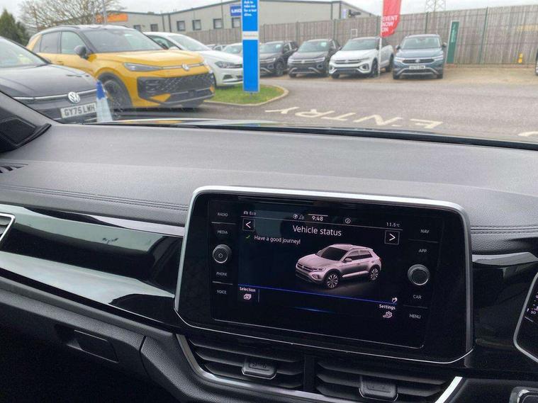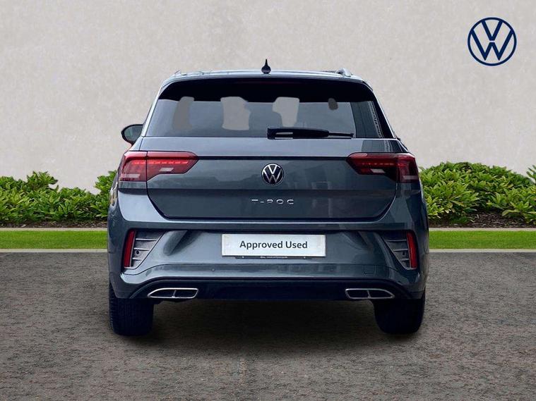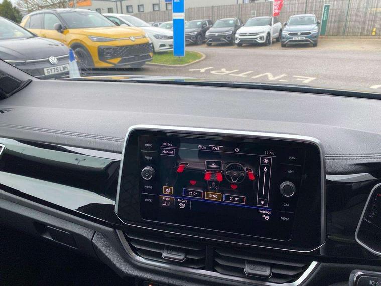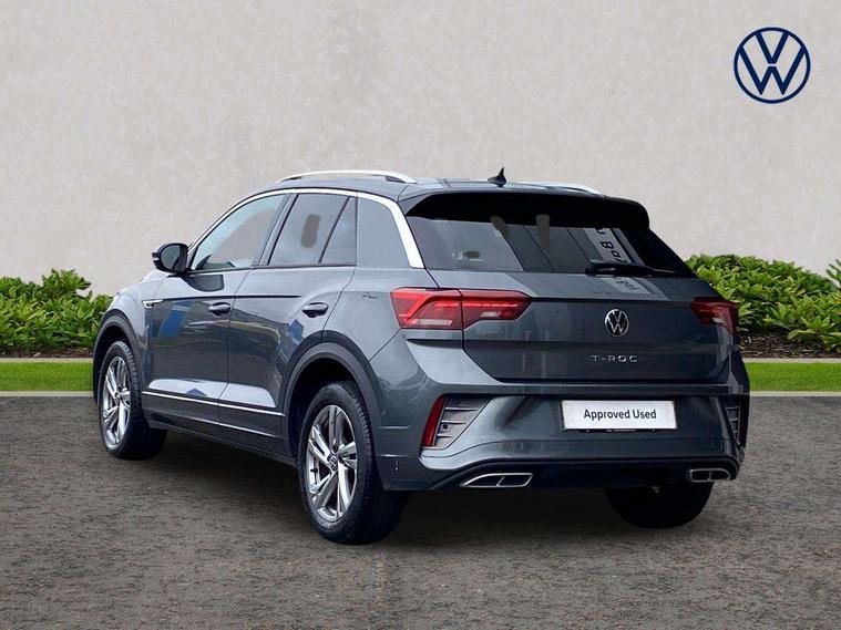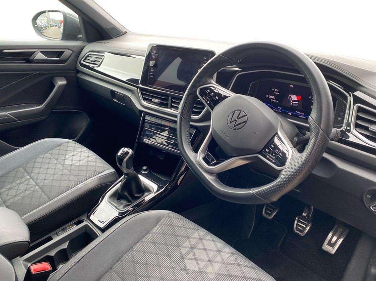 10.25" Digital cockpit pro, Bluetooth mobile phone interface, Driver alert system with fatigue detection, Driver tips and journey analysis, Emergency call service, Lane keeping system Lane Assist, Modified key software - reduce switch off time for key status change to Long no motion, Online services, Park assist including front and rear parking sensors, Service interval indicator, Tailgate/trunk lid release from outside, Think blue trainer driver tips and journey analysis, Warning sound and light for front seatbelts unfastened, Wireless app connect, Battery regeneration during braking, Start/stop function with battery regeneration, Diversity antenna for FM reception, Front and rear 6 speakers, Music playback - MP3, WMA and AAC files, Premium USB cable in choice of either Apple or Android smartphone compatibility, SD card slot, Simultaneous pairing of 2 compatible mobile devices, Title and cover art display, We Connect and We Connect Plus functionality, 3rd brake light, Auto dimming interior rear view mirror, Automatic hazard lights activation under emergency braking, Automatic headlight control with LED separate daytime running lights with coming/leaving home function, Extended roof spoiler, Exterior mirrors aspherical on driver side, convex on front passenger side, External USB type C socket and charging sockets, Front windscreen wiper with intermittent wipe and 4 position delay, Heated rear window, LED Plus headlamps, LED rear combination lamps, LED rear number plate lights, LED tail lamp rear comination lamps, Power windows with comfort operation and circuit breaker, R-Line design body coloured bumpers, Rain sensor, Rear exhaust tailpipe, Rear fog light on one side and reversing lights on both sides, Rear side wing doors, Rear wash/wipe with intermittent wipe setting, Remote electrically foldable door mirrors, puddle lights and reverse activated passenger's door mirror, 12V power socket in centre console, 3 rear head restraints, 3 seat bench in 2nd row, 4 load lashing points in luggage compartment, Air care climatronic air conditoning system with active combination filter and 2-zone temperature control, Black roof lining, Chrome plated radiator grille inserts, air vent surrounds and light switch surrounds, Door and side trim panel with leatherette insert, Drawer under drivers seat, Front + rear carpet mats, Front centre armrest, Front cupholders x 2, Front footwell illumination, Front reading light, Front scuff plates with R logo, Instrument lighting, white adjustable panel illumination, Interior ambient lighting and surround lighting, Interior light delay, Isofix child seat preparation, Leather gearshift handle, Load-through provision with cup holder when folded down ('Unsplit rear seat bench, split folding backrest, with centre armrest), Luggage compartment lighting, Single front passenger seat, Stainless steel pedals, Storage compartment in left and right luggage area, Storage compartment in rear doors, Storage compartments in driver and front passenger doors, Sunvisors with illuminated vanity mirrors, Variable boot floor, height adjustable and removable, Driver assistance pack without proactive passenger protection - T-Roc, 3 point height adj front seatbelts + pretensioners, 3 point seatbelts in outer rear with ECE label, ABS, Child locks on rear doors, Driver and front passenger airbag with front passenger airbag deactivation, Driver and front passenger safety-optimised head restraints, Drivers seatbelt reminder, Electronic parking brake, Electronic Stability Control (ESC) inc EDL (Electronic Differential Lock) and ASR (Traction Control), Front and rear passengers curtain airbag system including front side airbags, Front assist with city emergency braking and pedestrian monitoring, Front seat side impact airbags, Hill start assist, Predictive pedestrian protection, Rear disc brakes, Single tone horn, Tyre pressure loss indicator, Volkswagen roadside assistance, Alarm with interior protection, Anti-theft alarm system with interior monitoring, backup horn, and towing protection, Remote central locking with SAFELOCK, radio remote control with 2 remote control folding keys, Trims for alloy wheels,