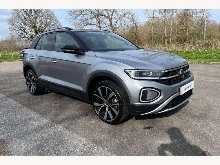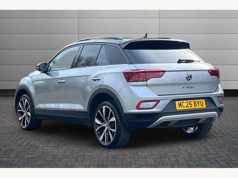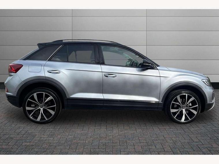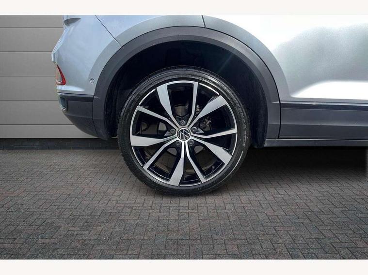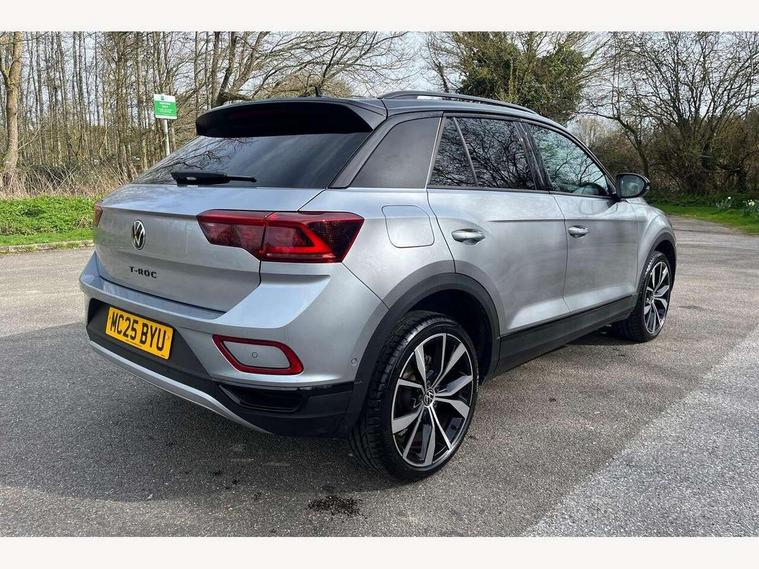 10.25" Digital cockpit pro, Advanced driver attention and drowsiness monitor, Dynamic road sign display, Emergency call service, Lane keeping system Lane Assist, Mobile phone interface, Modified key software - reduce switch off time for key status change to Long no motion, Online services, Park assist including front and rear parking sensors, Power assisted speed sensitive steering, Rear view camera, Service interval indicator, Tailgate/trunk lid release from outside, Think blue trainer driver tips and journey analysis, Warning sound and light for front seatbelts unfastened, Wireless app connect, Battery regeneration during braking, Start/stop function with battery regeneration, DAB Digital radio, Diversity antenna for FM reception, Front and rear 6 speakers, Music playback - MP3, WMA and AAC files, Premium USB cable in choice of either Apple or Android smartphone compatibility, SD card slot, Simultaneous pairing of 2 compatible mobile devices, Title and cover art display, We Connect and We Connect Plus functionality, Adhesive film in carbon look on the C-pillars, Advanced dynamic light assist for LED matrix headlights, Auto dimming interior rear view mirror, Automatic hazard lights activation under emergency braking, Black roof rails, Body colour sports bumpers with silver metallic underbody fascia, Body coloured exterior mirror housings and door handles, Dynamic cornering light, Dynamic headlight range control with self adjusting whilst driving, Electrically adjustable and heated door mirrors, Extended roof spoiler, Exterior ambient lighting, Exterior mirrors aspherical on driver side, convex on front passenger side, External USB type C socket and charging sockets, Front windscreen wiper with intermittent wipe and 4 position delay, Heated rear window, Illuminated front grille, IQ LED matrix headlights, LED 3rd brake light, LED rear number plate lights, LED rear tail lights with dynamic turn signal, LED separate daytime running light, Light mode for poor weather, rain, fog or snow, Power windows with comfort operation and circuit breaker, Privacy glass for rear side windows and rear window, Rain sensor, Rear exhaust tailpipe, Rear fog light on one side and reversing lights on both sides, Rear side wing doors, Rear wash/wipe with intermittent wipe setting, Remote electrically foldable door mirrors, puddle lights and reverse activated passenger's door mirror, Tilting and sliding panoramic sunroof with rear panoramic sunroof, 12V power socket in centre console, 3 rear head restraints, 3 seat bench in 2nd row, 4 load lashing points in luggage compartment, Air care climatronic air conditoning system with active combination filter and 2-zone temperature control, Black roof lining, Chrome plated radiator grille inserts, air vent surrounds and light switch surrounds, Door and side trim panel with leatherette insert, Drawer under drivers seat, Front + rear carpet mats, Front centre armrest, Front comfort sports seats, Front cupholders x 2, Front footwell illumination, Front seat back storage pockets, Glove compartment door with light, Instrument lighting, white adjustable panel illumination, Interior ambient lighting and surround lighting, Interior light delay, Isofix child seat preparation, Leather gearshift handle, LED interior light with switch off delay/dimmer and 2 front/rear LED reading lights, Load-through provision with cup holder when folded down ('Unsplit rear seat bench, split folding backrest, with centre armrest), Luggage compartment lighting, Non-folding front passenger seat backrest, Single front passenger seat, Storage compartment in left and right luggage area, Storage compartment in rear doors, Storage compartments in driver and front passenger doors, Sunvisors with illuminated vanity mirrors, Variable boot floor, height adjustable and removable, Black design pack - T-Roc style design, Driver assistance pack without proactive passenger protection - T-Roc, Easy open package with safelock - T-Roc, 3 point height adj front seatbelts + pretensioners, 3 point seatbelts in outer rear with ECE label, ABS, Child locks on rear doors, City emergency braking and pedestrian monitoring, Driver and front passenger airbag with front passenger airbag deactivation, Driver and front passenger safety-optimised head restraints, Drivers seatbelt reminder, Electronic parking brake, Electronic Stability Control (ESC) inc EDL (Electronic Differential Lock) and ASR (Traction Control), Front and rear passengers curtain airbag system including front side airbags, Predictive pedestrian protection, Rear disc brakes, Two tone horn, Tyre pressure loss indicator, Volkswagen roadside assistance, Black decorative trims, Piano black decorative inserts in dashboard and front door trim panels, 19" Misano black diamond turned alloy wheels with low rolling resistance and anti theft wheel bolts, Tool kit, Trims for alloy wheels, Tyre mobility kit including compressor and sealing foam,