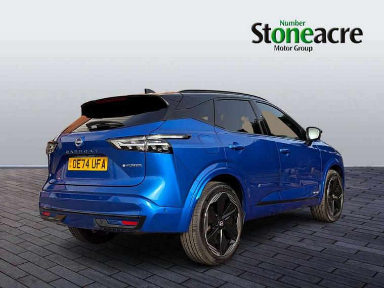 360 degree Intelligent around view monitor with moving object detection, Blind spot intervention, Blind spot warning, Drive assist custom mode, Drive modes (sport, normal, eco), Driver drowsiness and attention warning, e-Pedal step, Electric speed sensitive power steering, Emergency and breakdown call, Emergency lane keep assist, Emergency Stop Signal (ESS), Engine start/stop button, EV mode switch, Event data recorder, Front and rear parking sensors, Full Digital 12.3" TFT Digital Combimeter, Google virtual personal assistance, Idle stop/start system, In-car WIFI hotspot, Intelligent Cruise control (ICC), Intelligent forward collision warning, Intelligent speed assist, Lane departure warning system, Nissan connect 12.3 inch touchscreen infotainment system, Nissan connect navigation with google maps, Nissan connect services 2.0 (Google Automotive System), Outside temperature sensor, Rear cross traffic alert, Reversing detection, Traffic jam pilot, Wireless Apple CarPlay/Android Auto, Wireless charging pad, Limited slip differential, Multi link suspension, 2 front USB-C ports, 2 rear USB-C ports, 6 speakers, AM/FM audio system with DAB, Bluetooth audio streaming, Auto dimming frameless rear view mirror, Auto rear wiper when reversing, Black roof rails, Body colour mirror caps, Body coloured bumpers, Body coloured door handles, Bodyside mouldings, Chrome side window finisher, e-POWER badging, Electric auto folding door mirrors, Electrically adjustable and heated door mirrors with LED turn indicator, Follow me home headlights, High beam assist, Intelligent auto headlights, LED 3rd brake light, LED daytime running lights, LED headlights with adaptive driving beam, LED rear lights, LED sequential turn lights, One touch front and rear electric windows with remote opening and closing, One touch passenger window, Rear privacy glass, Rear roof spoiler, Rear side wing doors, Rear styling plate, Shark fin antenna, Splash free rain sensing wipers, Super RED rear LED lights, Super UV and infrared cut glass, 3 bench rear seats in 2nd row, 3 rear headrests, 60/40 split folding rear seat bench, Chrome interior door handles, Dark headlining, Driver seat back pocket, Dual zone automatic climate control with pollen filter, e-POWER shifter, Fixed Glass roof with electric sunshade, Front door with bottle holders, Height adjustable front headrests, Luggage board system, Luggage space lighting, Multifunction steering wheel, Passenger seat back pocket, Quilted alcantara leather upholstery, Rear door bottle holders, RGB ambient light (Full area coverage), Single front passenger seat, Smooth leather steering wheel, Tilt/telescopic adjustable steering wheel, Two rear isofix child seat anchorage points with top tether, 3x3 point rear seatbelt pretensioners + load limiters, Autonomous emergency braking, Child locks on rear doors, Curtain and front side, far side airbags, Driver and passenger airbags, Driver, passenger and 2nd row rear seat belt reminder, Electric handbrake with auto hold function, Front seatbelt pretensioners + load limiters, Height adjustable front seatbelts, Hill start assist, intelligent front emergency braking, Rear automatic braking, Tyre pressure monitoring system, Vehicle dynamic control, Engine immobiliser, Intelligent key with walk away lock and approach unlock functions, Remote central door locking with deadlocking, Thatcham alarm, 20" N-Design diamond cut alloy wheels, Tyre puncture repair kit,