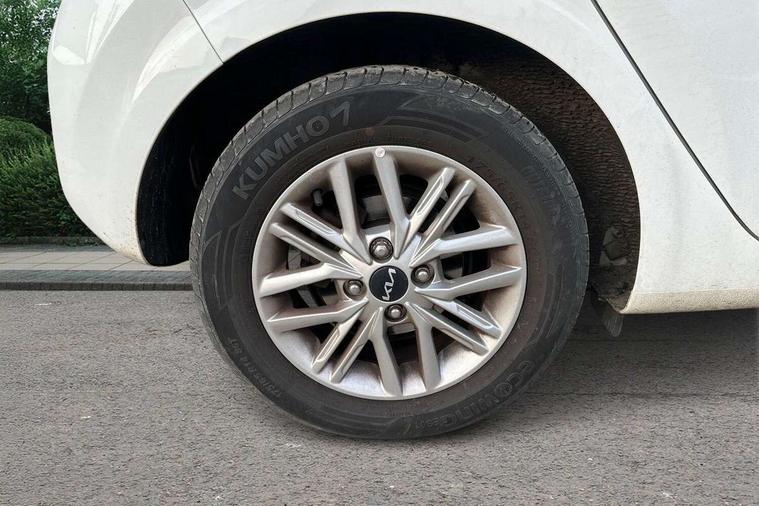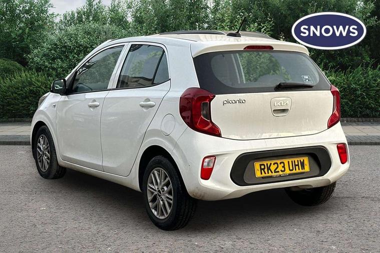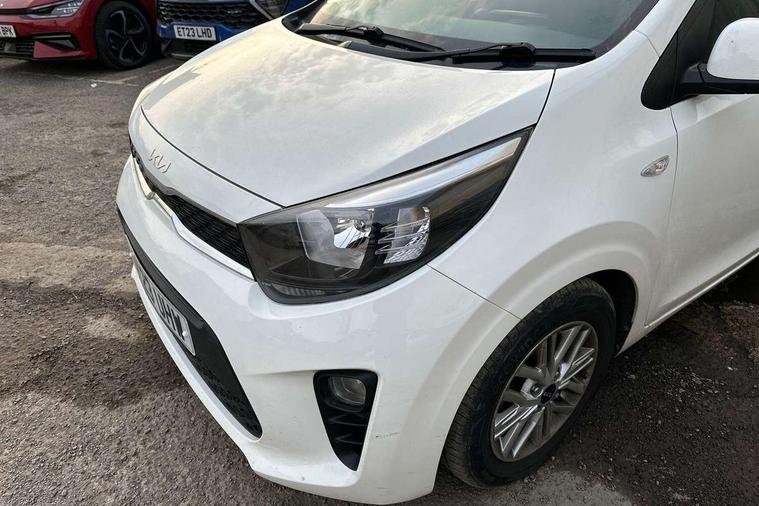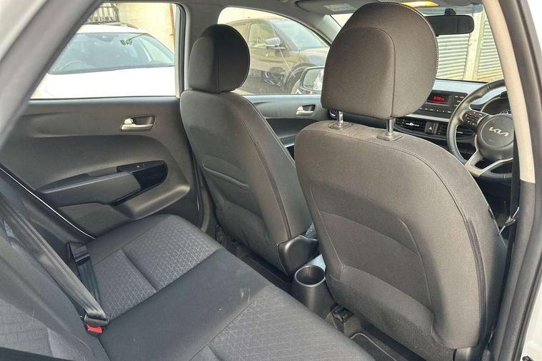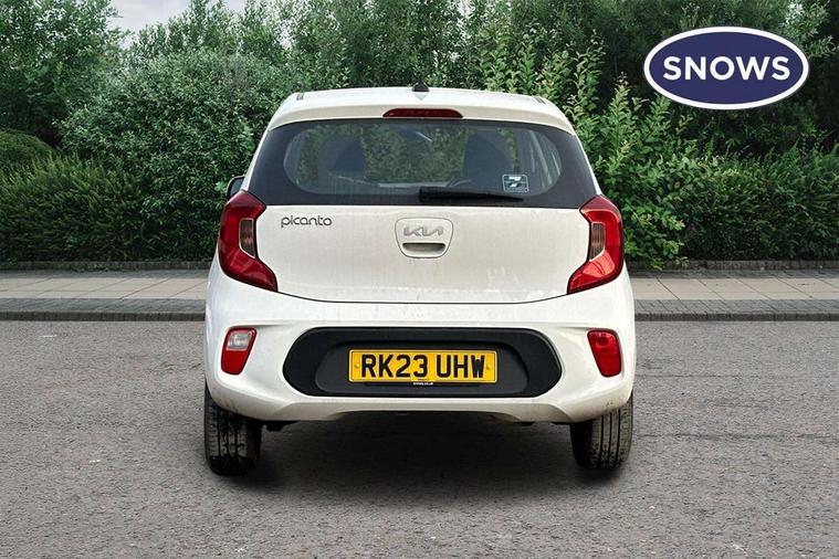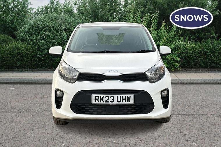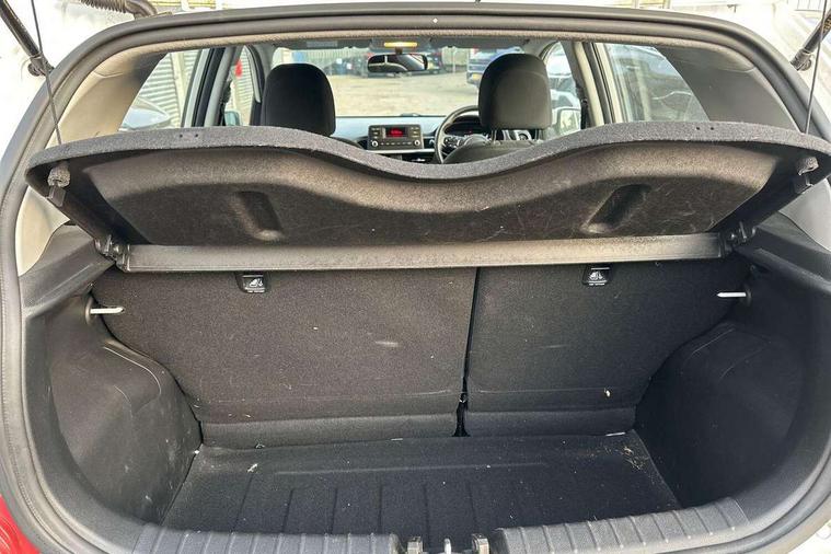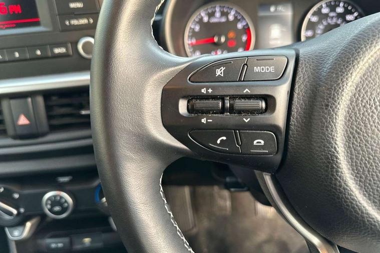 3.8" monochrome audio display with RDS and DAB, Emergency call service, Emergency stop signalling system, External temperature gauge, Motor driven power steering, Tachometer, Tailgate, Trip computer, 4 speaker audio system, Bluetooth with music streaming, Steering wheel mounted controls, USB ports for connection of a media device, Automatic headlight control system, Black radiator grille with chrome surround, Body colour bumpers, Body colour mirrors and door handles, Day/night rear view mirror, Daytime running lights, Electric adjustable heated door mirrors, Front and rear electric windows with drivers's auto up/down function, Headlamp levelling, Heated rear window, High mount brake light, MFR - Multi Focus Reflector halogen headlights with black bezel, Rain sensor, Rear fog lights, Rear side wing doors, Rear wash/wipe, Speed variable front wipers, Tinted glass, Visible VIN plate, Welcome and follow-me home light functionality, 1 x rear coat hook, 12V power point front, 2 seat bench in 2nd row, 3 x passenger assist grips, 60/40 split/folding 2nd row of seats, All round height adjustable headrests, Cupholders in centre console, Driver and front passenger sunvisor with vanity mirror, Driver seat height adjust, Front cabin lights, Glovebox, High gloss lower centre fascia trim, door armrest and air vents, ISOFIX Child seat top tethers and anchor fixings, Leather trimmed steering wheel and gearshift, Luggage area light, Luggage area parcel shelf, Manual air conditioning, Passenger front seatback pockets, Premium cloth upholstery, Silver paint finished interior door handles, Single front passenger seat, Slide/reclining front seats, Tilt adjustable steering wheel, Advanced Driver Assistance Pack - Picanto, 2 x 3-point rear seatbelts, ABS/EBD, Automatic unlocking of doors in case of impact, Dual front airbags, ESC + BAS + VSM + HAC, Front passenger airbag cut-off switch, Front seatbelt height adjusters, Front seatbelt pretensioners + load limiters, Hill hold control, Knee airbags, Rear child proof door locks, Seatbelt warning, Side impact protection, Torque vectoring brake based and straight line stability (SLS), Traction control, Twin curtain airbags, Twin front side airbags, Tyre pressure monitoring system, Anti theft alarm, Engine immobiliser, Folding key, Locking wheel nuts, Remote central door locking, 14" alloy wheels, Tyre mobility kit,