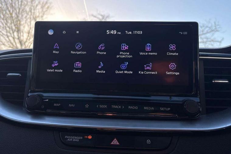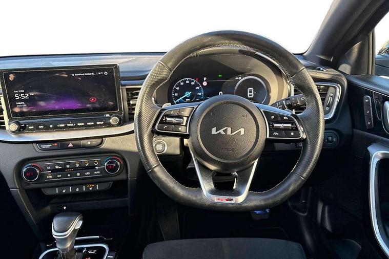 10.25" touchscreen satellite navigation including telematics, 12.3" TFT supervision cluster display, 4.2" supervision colour cluster display, Apple car play/Android Auto, Blind spot Collision Warning (BCW), Bluetooth with Voice Recognition & Music Streaming, Drive mode selector, Driver attention warning, Emergency call service, Emergency stop signalling system, Forward Collision-Avoidance Assist (FCA) - City/Pedestrian/Cyclist, Kia connected services featuring TomTom live, Lane Following Assist (LFA), Lane keep assist, Motor driven power steering, Rear cross traffic collision warning (RCCW), Reversing camera with dynamic guide lines, Smart cruise control with stop and go functionality, Smart park assist system (SPAS) with parallel/perpendicular/reverse with front/rear parking sensors, Smart power tailgate, Speed limit information function (SLIF), Trip computer, Wireless Mobile Phone Charger, Intelligent Stop and Go, DAB Radio with MP3, Illuminated USB & aux ports, JBL Premium sound system with 8 speakers, Steering wheel mounted controls, USB & AUX Ports for Connection of a Media Device, USB Fast Charger in Front Centre Console, 3rd brake light, Air intake with black accent lower lip, All-round Electric Windows with Auto Up & Down Function, Auto dimming rear view mirror, Automatic defog system, Automatic headlights, Body colour bumpers, Body colour exterior door handles, Body coloured rear roof spoiler with high gloss black trim, Chrome window surround, Electric adjustable/heated/folding door mirrors with LED Indicators, Exterior front door handle illumination, Front fog lights, Front wiper de-icer, Headlamp levelling, Heated rear window with timer, High beam assistant, High Gloss Black and Satin Chrome Radiator Grille, High gloss black door mirrors, High gloss black side sill mouldings, LED Bi-Function headlights, LED daytime running lights, LED full width tail lights, LED rear fog light, LED rear lights, Privacy glass in rear windows and tailgate, Puddle lights, Rain sensing front wipers, Rear side wing doors, Rear wash/wipe, Wide panoramic sunroof with electric tilting/sliding function and automatic roll blind, Wide view drivers door mirror, Windscreen Washer Level Warning, 10-way power adjustable driver's seat with memory and power lumbar support on front passenger's side, 2 x 12V Power sockets (Front centre console), 3 seat bench in 2nd row, 3 x passenger assist grips, 40:20:40 Split Folding Rear Seats with Remote Folding, All-round height adjustable headrests, Aluminium pedals, Black headlining, Centre console storage and sliding armrest, Cupholders in rear armrest, Dash illumination dimmer switch, Driver & Front Passenger Sunvisors with Vanity Mirror Illumination & Ticket Holder, Driver's seat height adjuster, Dual zone automatic air conditioning, Front and rear door storage, Front cabin LED map light with sunglasses case, Front Passenger Seat Height Adjuster, Front seat and rear pockets, Heated front seats, Heated outer rear seats, Heated steering wheel, Illuminated ignition key hole, Interior door lock/unlock function, ISOFIX Child seat top tethers and anchor fixings, Leather D-Cut steering wheel with grey stitching, Leather gearshift, Load area cover, Luggage area light, Luggage area parcel shelf, Luggage hooks, Luggage rail system, Paddle shifter, Part leather/faux suede upholstery, Premium centre console with sliding cupholder cover, Rear Air Ventilation, Rear centre armrest, Rear coat hooks, Satin chrome interior door handles, Single front passenger seat, Tilt/telescopic adjustable steering wheel, ABS with Electronic Brakeforce Distribution (EBD) and Brake Assist System (BAS), All round 3-point seatbelts, Dual front side airbags, Dual horn, Electric parking brake, Electronic stability control (ESC) and vehicle stability management (VSM), Front passenger airbag deactivation, Height adjustable front seatbelts, Hill start assist control (HAC), Impact sensing auto door unlocking, Rear door child safety locks, Seatbelt reminder warning, Traction control, Twin curtain airbags, Twin front airbags, Tyre pressure monitoring system, Alarm system, Engine Immobiliser & Deadlocks, Engine Start/Stop Button with Smart Entry System, Locking wheel nuts, Speed sensitive auto door locking, Black high gloss front console tray garnish & door trim, Satin Chrome Fascia Trim, 18" Alloy wheels with grey centre cap, Tyre mobility system,
