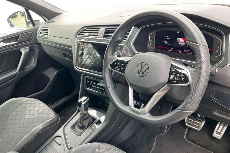 Adaptive cruise control ACC stop and go including speed limiter, App-Connect incl. App-Connect Wireless for Apple CarPlay and Android Auto, Bluetooth phone integration system, Distance control assist, Driver alert system, Driver profile selection, Dynamic road sign display, eCall emergency call system, Electromechanical speed sensitive power steering, Engine start/stop button, Lane keeping system Lane Assist, Lights on warning, Multifunction front facing camera, Outside temperature display, Premium multifunction display with multi colour display, Remote control boot opening, Rev counter, Revision / skills operating concept travel assistant, Service interval indicator, Speed limit display, Start/stop system with regenerative braking, Trip computer, Warning sound and light for doors and tailgate open, Battery regeneration during braking, Diesel particulate filter, Misfuel prevention device for diesel engine, Selective Catalytic Reduction, XDS electronic differential lock for improved traction and handling, 4 X 20 watt output, 8 Speakers, Diversity antenna for FM reception, Radio, SD card slot, Simultaneous pairing of 2 compatible mobile devices, SMS functionality - read, compose and send SMS messages using touch-screen display, Title and cover art display, USB C ports, Auto dimming interior rear view mirror, Automatic headlight control system, Body colour door handles, Chrome moldings on the side windows, Coming/leaving home lighting function, Dynamic headlight range control, Front and rear electric windows, Heated rear window, High level 3rd brake light, Laminated safety glass windshield, heat and sound insulating, LED headlamps with LED separate daytime running light and dynamic cornering light, LED rear combination lamps, LED rear number plate lights, License plate carrier in front and rear, Poor weather light and cornering light, R Line body kit, R Line side sills, Rain sensor windscreen wipers, Rear exhaust tailpipe, Rear fog lamp, Rear side wing doors, Rear spoiler in R style, Rear windscreen washer and wiper with interval delay, Side and rear windows in heat insulating glass, Trailer Stability Programme, Unique R Line badging, Windscreen wipers/ intermittent wipe + 4 position delay, 12V outlet in center console rear and in luggage compartment, 12V outlet in front and tray, 2 cup holders in front, 2 LED front reading lights, 2 LED rear reading lights, 3 bench rear seats in 2nd row, 3 rear headrests, 4 load lashing points, 40:20:40 split folding rear seats, Air Care Climatronic 3 zone automatic climate control with enhanced air filter and controls in the rear, Backrest release for left front seat, Black headlining, Brushed stainless steel pedals and footrest, Carpet mats in front and rear with decorative stitching in Gray, Climate control unit rear with touch function, Door and side trim panel in foam film, insert in leatherette, Front centre armrest, Front footwell illumination, Front seats head restraints (x-adjustment), Height adjustable front seats, Height/reach adjust steering wheel, Instrument lighting white adjustable panel illumination, Interior light with delay, Isofix Preparation 2 Rear child seats, Leather gear knob, Lockable cooled glovebox, Luggage compartment lighting, Luggage net, Rear bench seat asymetrically split folding, longitudinally movable and folding with load-through hatch and center armrest, Remote unlocking for rear seat backrest, Removable luggage cover, Removable rear headrests, Safety optimised front head restraints, Single front passenger seat, Sliding/reclining rear seats, Standard rear seat release, Storage compartment in driver's door, Storage compartment in passenger's door, Storage compartment in rear doors, Storage compartments in luggage area left and right, Storage tray on dashboard, Sun visors with illuminated vanity mirrors, Top front comfort seats, Variable boot floor, height adjustable and removable, Driver assistance pack plus - Tiguan DSG, 3 point seat belt for centre rear seats, 3 point seat belts with seat belt pretensioners for the outer rear seats, Active bonnet, Curtain airbags for front and rear passengers, Driver/Front Passenger airbags, Drivers knee airbag, Electronic parking brake with auto hold, Electronic Stability Control with driver steering recommendation, ABS, ASR, EDL, EDTC and trailer stabilization, Front assist with autonomous emergency braking (for Adaptive Cruise Control ACC up to 130 mph), Front disc brakes, Front passenger airbag deactivation, Front side airbags, Height adjustable front 3 point seatbelts + pretensioners, Hill hold control, Manual child proof rear door locks, Pedestrian monitoring system, Power assisted brakes, Proactive passenger protection system in combination with front assist, Rear disc brakes, Rigid safety cell with front and rear crumple zones, Two tone horn, Warning sound and light for front seat belts if unfastened, Anti theft alarm system with interior monitoring, backup horn and towing protection, Anti theft wheel bolts, Electronic engine immobiliser, Tool kit,