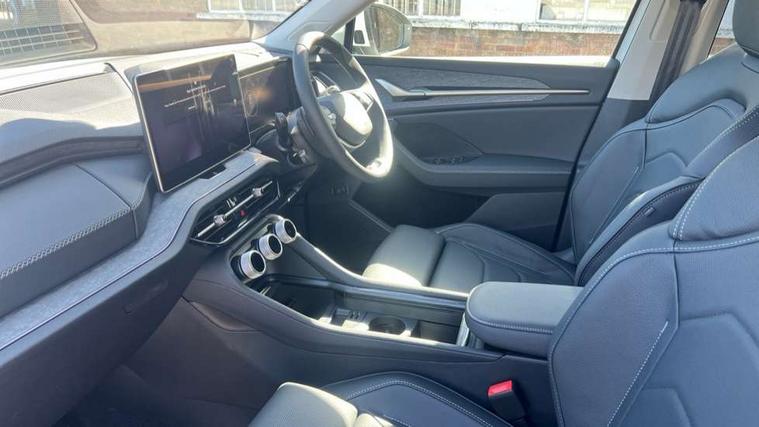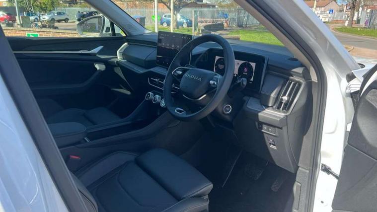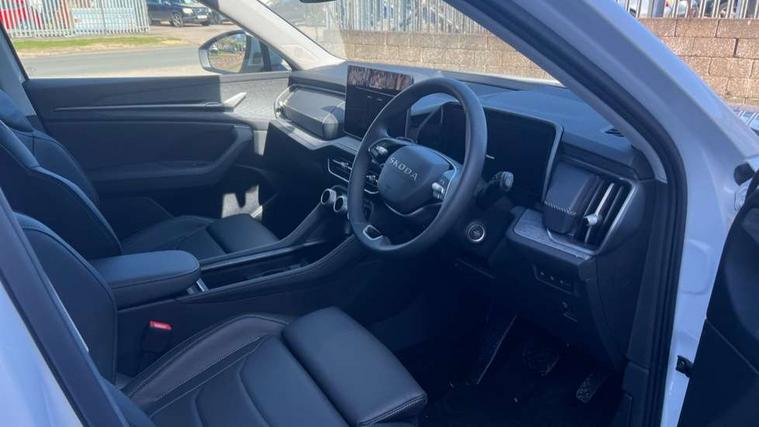 13" satellite navigation touchscreen display, Blind spot detection with door exit warning, Bluetooth system, ChatGPT functionality, Driver alert - Fatigue and drowsiness monitor, Dry display cleaner, Emergency call, Front and rear parking sensors, Front cross traffic assist, Lane assist, PAS, Rear traffic assist, Tailgate unlocking from outside, Traffic sign recognition, USB C Port x 2 in front centre console, Virtual Cockpit - 10.25" digital display, Voice control system, Wireless charging for two smartphones (15W) with cooling function, Wireless SmartLink for Apple CarPlay and Android Auto, Stop/start function, 2x USB-C in the rear, DAB Digital radio, Aero front windscreen wipers with intermittent function, Auto dimming rear view mirror, AWL (all weather lighting) and all weather light with cornering function, Black wheel arch surrounds, Body colour bumpers, Body colour door mirrors and handles, Cornering light and poor weather light, Electric folding /adjustable/separted heated/folding door mirrors, auto dimming with boarding sports and memory function, Electric front and rear windows, Exterior black decorative trims, Front grille with horizontal light strip, Heat insulating glass in windshield, Heated rear window, Ice scraper in fuel tank cap, Invisible tailpipe, LED daytime running lights, LED matrix headlights with AFS and LED fog lights, LED rear light with welcome effect and dynamic turn signals, LED third brake light in rear spoiler, Light assistant with automatic headlight control and coming home feature, Logo projection in door mirrors, Multiple matrix beam, Privacy glass, Rear roof spoiler, Rear side wing doors, Rear window wiper, Red decorative strip between rear LED lights, Safety reflectors on front and rear doors, Unique dark chrome design logo on alloy wheels, Window control switches with black trim, Windscreen wipers with rain sensor, Without engine designation, 1.5l bottle holder points in all door, 1x centre rear reading light, 2 seat bench in 3rd row, 2 spoke multi-function leather heated steering wheel with paddle shift, 3 configurable smart dials with 32mm coloured display, 3 seat bench in 2nd row, 4 foldable roof handles with rear coat hooks, Ambient interior lighting - Dashboard, front-door stowage compartments, front and rear door panels and footwell lighting, Automatic gear selector on steering column, Chrome interior door handles, Driver/front passenger reading lights, Fabric headlining, Fixed bench 40:60:40 split folding backrests, Front and rear floor mats, Front centre armrest with jumbo box storage compartment, cup holder and 12V socket, Height adjustable front headrests, Isofix child seat fittings in outer middle row rear seats and front passenger with top tether, Manually adjustable steering column, Pollen filter, Rear centre armrest with cupholders, Rear seat boot backrest release, Single front passenger seat, Skoda lettering on steering wheel, Storage pocket including mobile phone pockets on the backs of the front seats, Sunvisors with illuminated vanity mirrors, Three rear height adjustable headrests, Ticket holder on A Pillar, Tri zone climate control, Umbrella in door panel x1 made from sustainable materials, Upper and lower glovebox with card holder and coin compartment, USB C port by rear view mirror for charging only (15W), Auto door release and activation of warning lights in the event of an accident, Driver and front passenger airbag with knee airbag and front passenger airbag deactivation, Electric child locks, Electronic parking brake, ESC (incl. ABS+EMD+MSR+ASR+EDL+HBA+DSR+RBS+ESBS+MCB+TSA+XDS), Front assist with braking reaction to vehicles, pedestrians and cyclists, Front disc brakes, Fuel cut off safety device, Height adjustable front 3 point seatbelts + pretensioners, Hill hold assist, Junction assist with automatic emergency braking, Rear disc brakes, Safety vest holder in door, Seat belt reminder for all seats, Three point rear seat belts, Two tone horn, Tyre pressure monitor, Anti-theft wheel bolts, Immobiliser, Remote central locking with 2 keys,