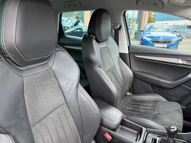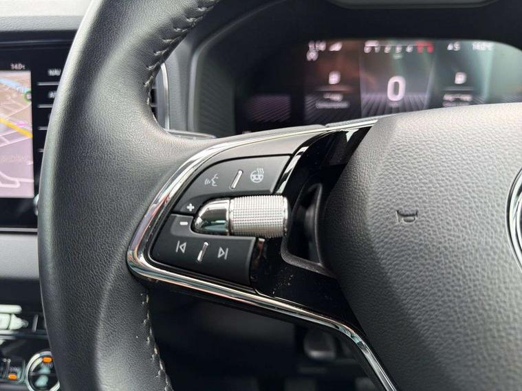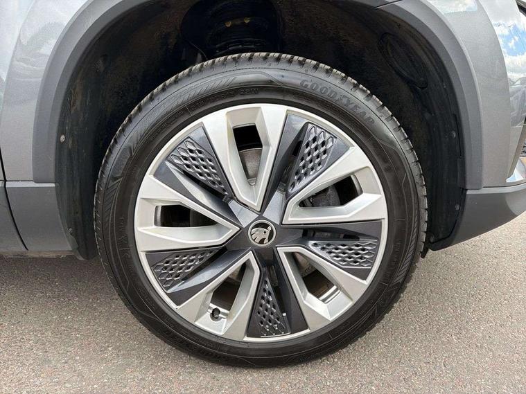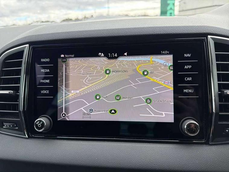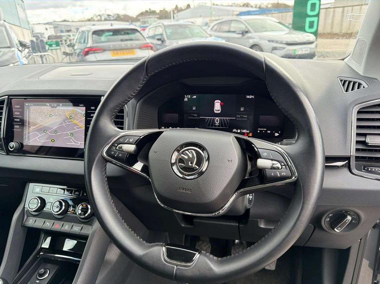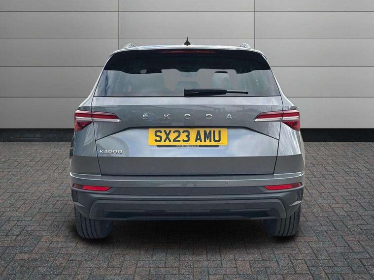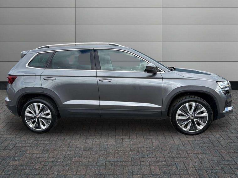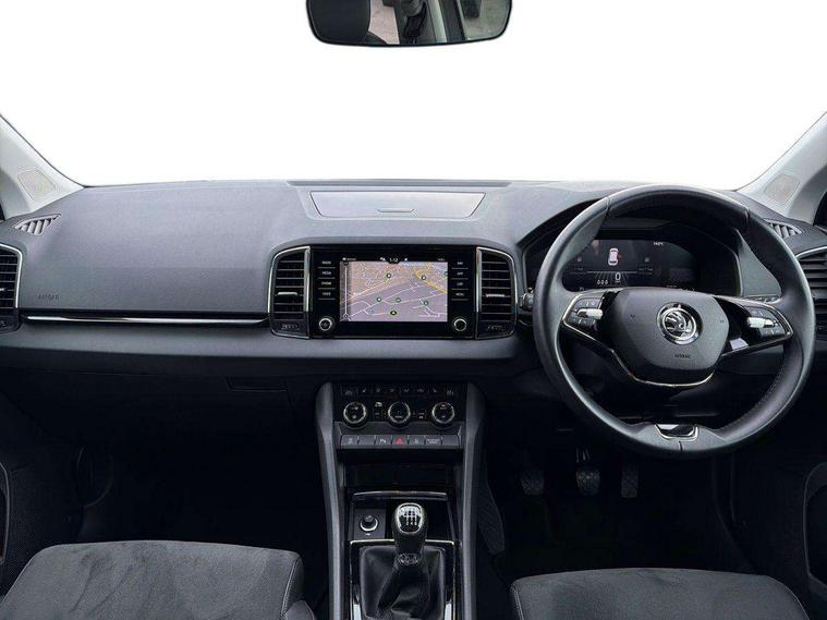 8" Digital display, Care connect, Drive mode selector, Driver fatigue sensor, Electro-mechanical PAS, Emergency services call system, Outside temperature gauge, Service interval indicator, SmartLink wireless for Apple and wired for Android, Start/stop system with regenerative braking, USB C Port x 2 in front centre console, Diesel particulate filter, 8 Speakers, DAB radio with Bluetooth, USB connection, Acoustic glass, Aero front windscreen wipers with intermittent function, Auto dimming rear view mirror with light and rain sensors, Black electric window control buttons, Body colour door mirrors and handles, Dynamic headlight range control with cornering light function, Electric front and rear windows with child proof lock, Heated rear windscreen, LED daytime running lights, LED rear lights with high functionality welcome effect and dynamic indicators, Light assistant (coming/leaving home/tunnel light), Plastic scuff plates, Privacy glass, Rear side wing doors, Rear spoiler, Rear window wiper with washer system and intermittent control, Safety reflectors on front doors, Third brake light, 1.5 litre bottle holders in driver and front passenger door panels, 12V socket in boot, 12v socket in front centre armrest with storage compartment and rear air vents, 2 spoke leather heated multifunction steering wheel, 2 x Tablet holder, 3 rear height adjustable headrests, 3 seat bench in 2nd row, 4 foldable roof handles with rear coat hooks, Black floor carpet, Chrome inner door handles, Decorative door sills with KAROQ badging, Double sided boot floor, Foldable hooks in the boot, Front head restraints, Height adjustable front three point seats belts with tensioners, Height/reach adjust steering wheel, Ice scraper, Illuminated glovebox, Illuminated luggage compartment, Interior noise suppression, Isofix child seat preparation for front passenger seat, Isofix child seat preparation outer rear, Manual lumbar support for front seats, Pen holder, Pollen filter, Rear boot cover, Rear reading lights, Rubbish bin door, Safety vest holder, Single front passenger seat, Storage box in upper central dashboard closed, Sunvisors with illuminated vanity mirrors, Textile floor mats, Ticket holder, VarioFlex seats with standard rear seat release, Boot pack - Karoq, Chrome roof rails + chrome pack - Karoq, Parking pack - Karoq, Automatic door unlocking in case of crash, Automatic fuel cut off in case of crash, Child locks on rear doors, Driver airbag, Electronic parking brake with auto hold function, Emergency rear braking signal, ESC including ABS, MSR, ASR, EDS, HBA, DSR, RBS, MKB and traction control, Front side airbags, Hill hold control, Knee airbags, Passenger airbag with switch-off function, Pedestrian monitor, Seatbelt reminder signalisation and pretensioner for all seats, Three point seatbelts rear, Two tone horn, Tyre pressure display, Tyre pressure monitor, Alarm with interior monitoring, back up horn and tilt sensor with safe function, Electronic engine immobiliser, Keyless entry and start/stop, Remote central locking with 2 remote folding keys, Chrome framed air vents, 18" Procyon silver alloy wheels with anthracite aero inserts, Anti-theft wheel bolts protection, Storage on wheel cover, Tool kit,