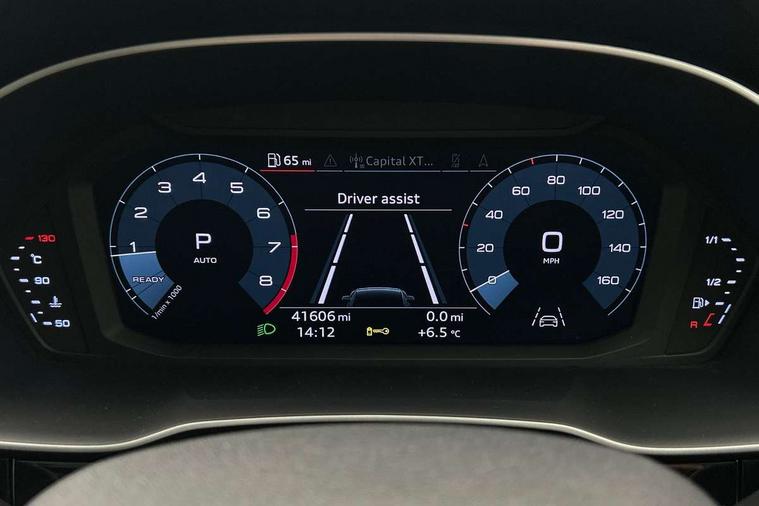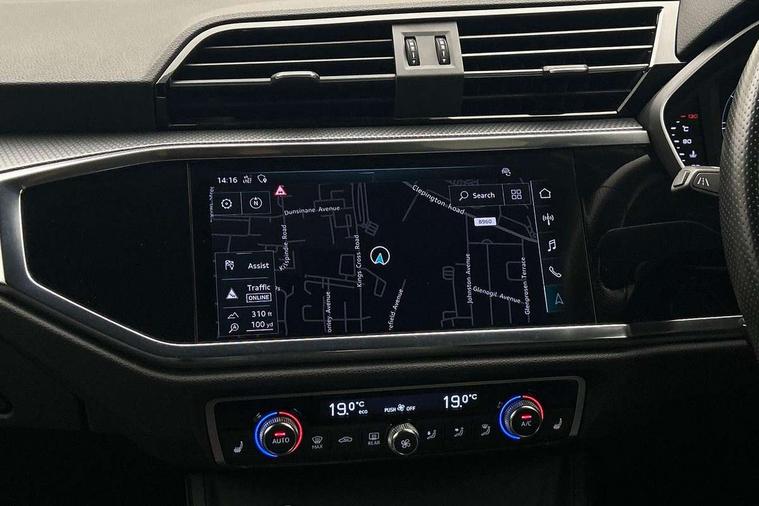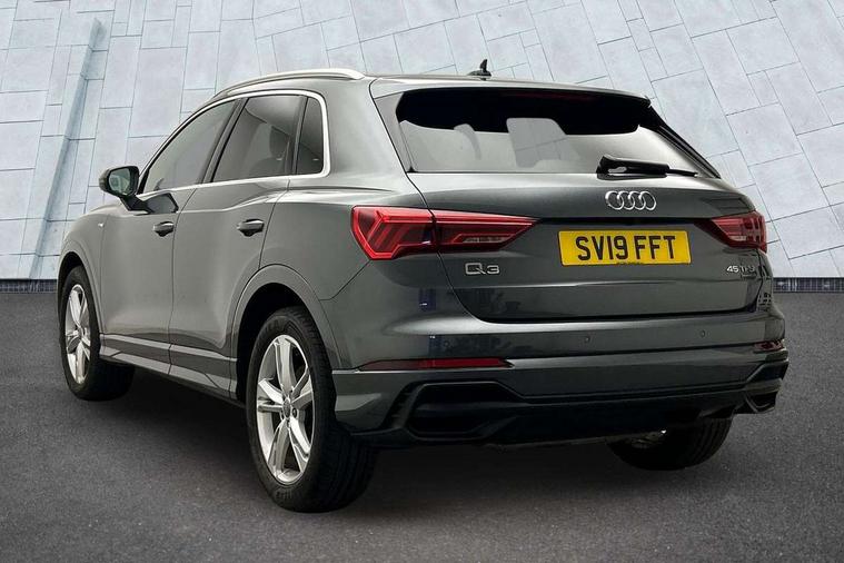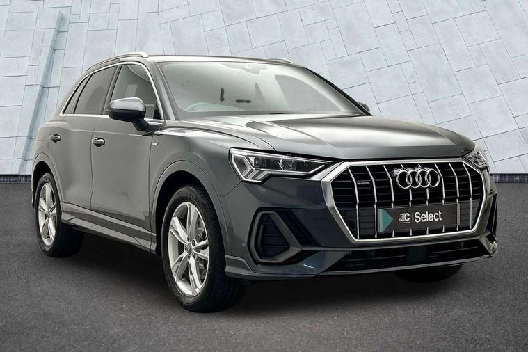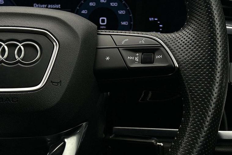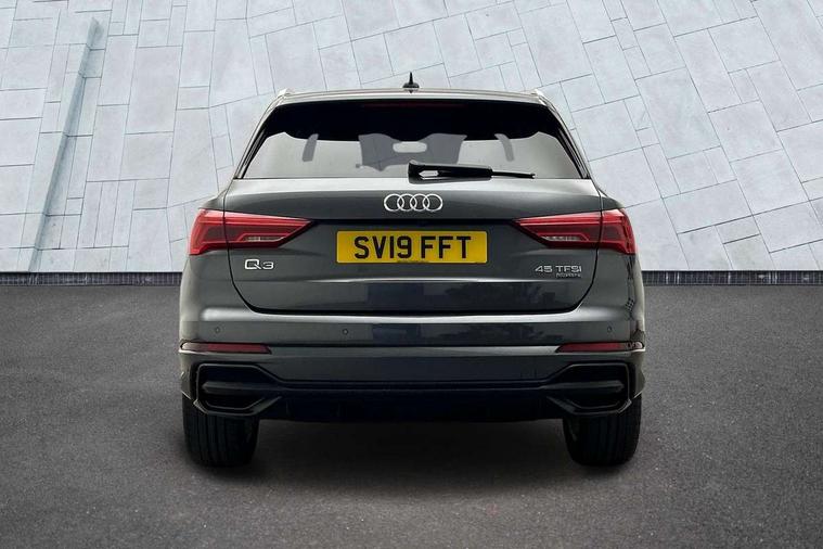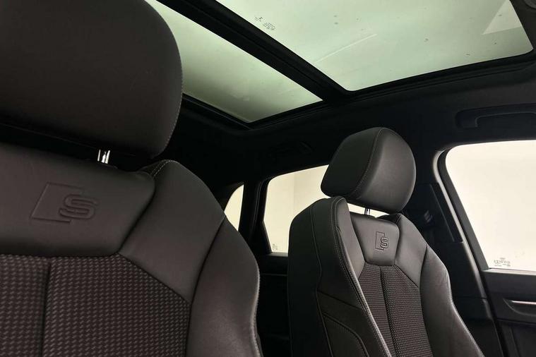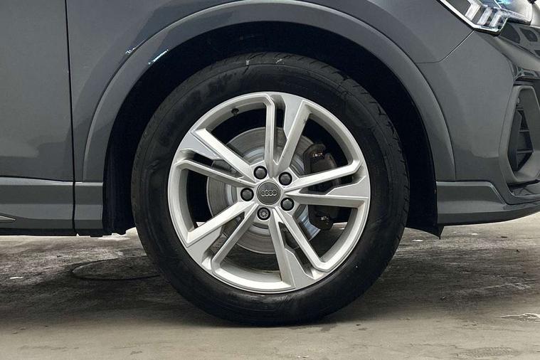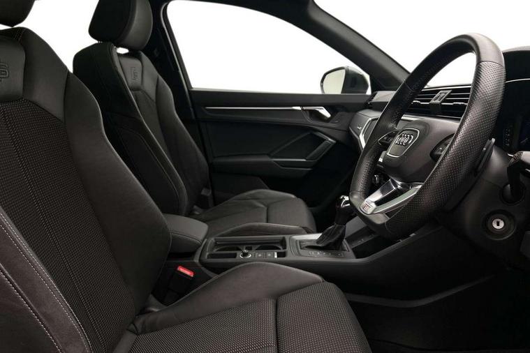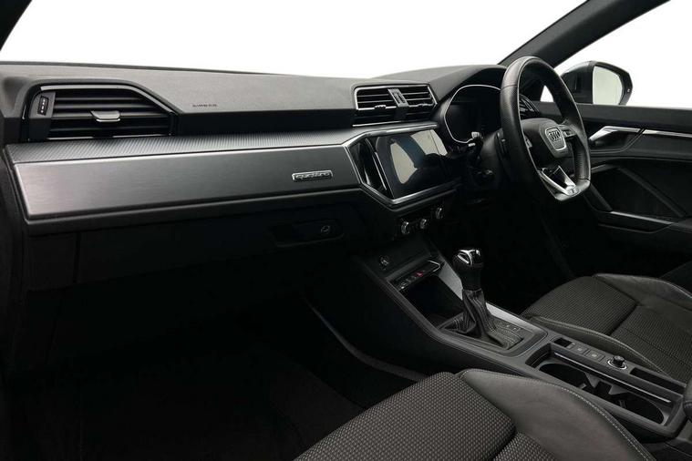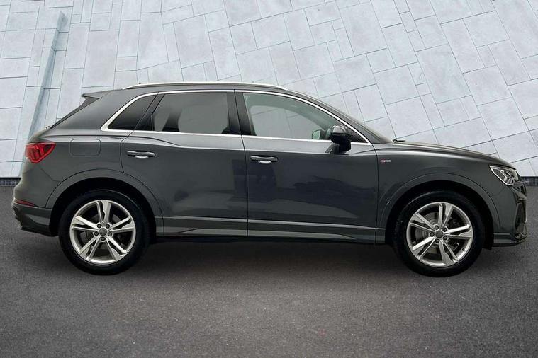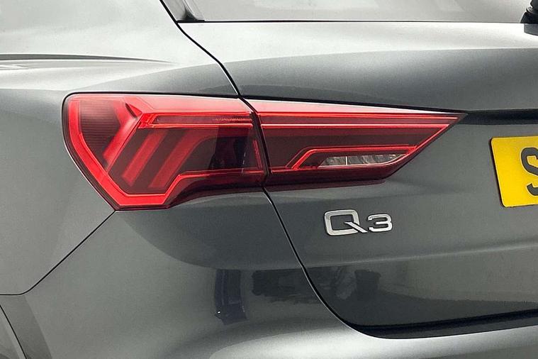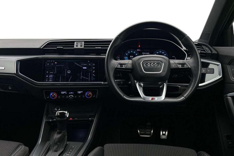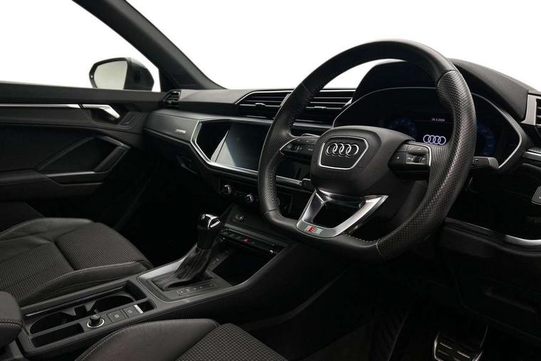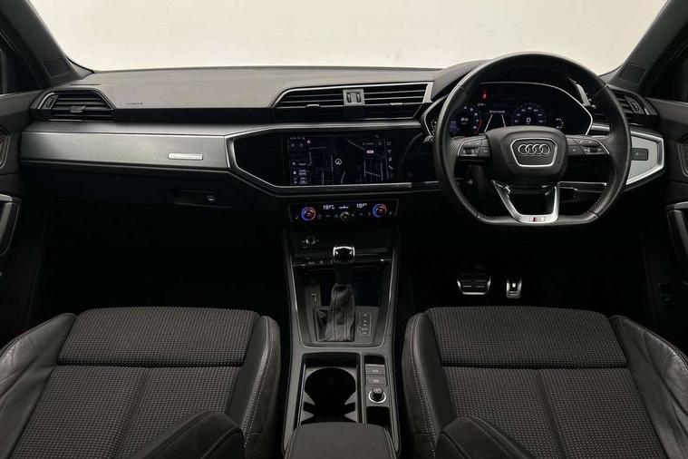 Audi connect safety and service (e-call), Audi drive select, Audi lane departure warning, Audi side assist, Audi smartphone interface, Audi Virtual Cockpit - 10.25" display, Bluetooth interface, MMI navigation plus with MMI touch, Power opening/closing tailgate, Progressive steering, Service interval indicator, Stop/start system, Voice control system, DAB digital radio module, Acoustic windscreen, Aluminium roof rails, Aluminium window trim, Auto dimming rear view mirror, Body colour door mirrors, Body coloured bumpers, Diffuser in matt Platinum grey, Electrically adjustable and heated door mirrors with integrated LED side indicators, Front and rear electric windows, Front fog lights, Front side air inlets in matt platinum grey, Front spoiler blade in matt platinum grey, Grille vertical bars in aluminium silver/Matt, High gloss black finish B and C pillars, Privacy glass, Rain and light sensors, Rear diffuser strip in selenite silver, S Line badge on wings, S Line front and rear bumpers, Side skirt insert in matt Platinium grey, Titanium black radiator grille, 12V socket in rear centre console, 40:20:40 split folding rear bench seat, Adjustable rear seat bench/backrest with centre armrest and cupholder, Aluminium door sill trims, Black cloth headlining, Dual zone climate control, Front and rear black floor mats with contrast stitching in rock grey, Front and rear headrests, Front centre armrest with storage compartment and angle adjustment, Illuminated door sill trims with S logo, ISOFIX child seat mounting and Top Tether with front passenger airbag deactivation, Perforated leather gearknob, Stainless steel luggage compartment sill finisher, Stainless steel pedals, Non smoking pack - Q3, 3x3 point rear seatbelts, 6 airbags - Driver, front passenger, curtain and side windows, Audi pre-sense front with pedestrain and cyclist recognition, Electronic stabilisation control including ABS, ASR and EDL, Hill hold assist, Pre sense basic, Seatbelt monitoring, Tyre pressure warning, Warning triangle and first aid kit, Anti theft alarm, Anti theft wheel bolts, Remote central locking, Dark matt brushed aluminium inlay, MMI touch colour display in gloss black with aluminium surround,