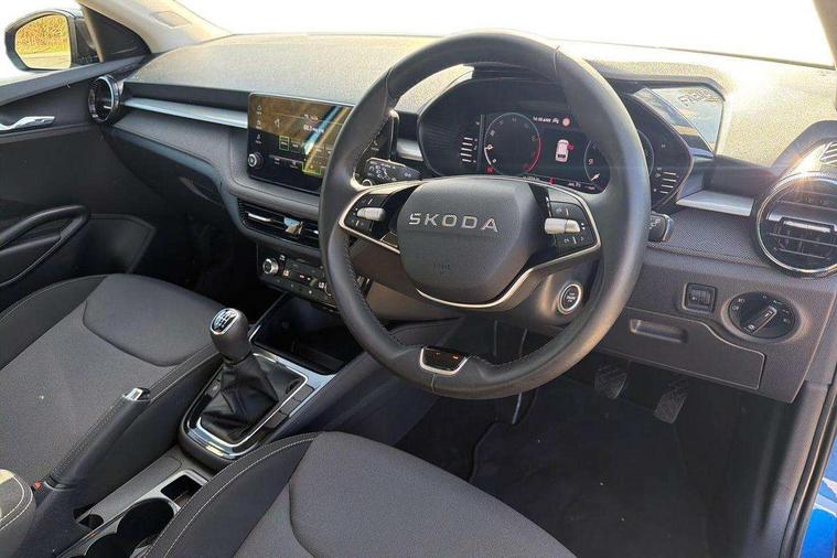 Advanced driver attention and drowsiness monitor, Bluetooth connection, Electromechanical power steering, Exterior temperature gauge, Service interval indicator, Traffic sign recognition, Virtual cockpit with 10.25" colour display, Wireless SmartLink for Apple CarPlay and Android Auto, 6 Speakers (4 in front and 2 in rear), Auxiliary socket for external MP3 player, DAB digital radio reception, Auto dimming rear view mirror, Body coloured bumpers, Door mirror integrated indicators, Front and rear electric windows, Front window wiper intermittent control, Headlight range control - Automatic, Ice scraper in fuel cap, LED 3rd brake light, LED daytime running lights with coming and leaving home feature, LED rear lights, Privacy glass, Rear LED fog light, Rear side wing doors, Rear window wiper with washing nozzles, Roof mounted spoiler, SKODA tailgate lettering in chrome, Unique dark chrome design logo on alloy wheels, 2 reading lights in front and 2 reading lights in rear, 3 rear headrests, Backrest split and folding, Central console with removable cup holder and storage box, Chrome handbrake release button, Dual zone air conditioning with climatronic electronic control, Fabric upholstery, Front centre armrest, Gearshift knob/handle in leather, Grain satin black interior door handles, Hand brake lever handle in leather, Height adjustable front headrests, Height adjustable front seats, Height adjustable steering wheel, ISOFIX and TopTether anchorage points to the outer rear seats, ISOFIX and TopTether on the front passenger seat, Luggage compartment lighting, Manually adjustable lumbar support in front seats, Pollen filter, Rear seat bench unsplit, Single front passenger seat, Skoda lettering on steering wheel, Storm grey headlining, Sun visors with mirror and airbag label on passenger side, Textile floor mats, Ticket holder, Umbrella in drivers door, 3-point height adjustable front seats belts with pretensioner and force limiter, Automatic warning lights in case of crash, Driver and passengers airbag with switch off function, e-Call+, ESC including ABS, MSR, ASR, EDS, HBA and XDS, Front and rear seat belt warning, FRONT ASSIST (AEB City and AEB Inter Urban), Front side airbags, Head airbags, One tone horn, Pedestrian protection, Three rear 3-points safety seat belts with pretensioner and force limiter including stop function for outer rear seat belts, Tyre pressure monitoring system, Anti-theft alarm system including immobiliser, interior monitoring, backup horn, and towing protection, Central locking with radio remote control, interior controls, SAFE function and 2 foldable keys, Black painted air vents, Grain satin black central console cover, Metallic grey upper decorative trim, Satin black door and side trim panel in front, Textile Kota grey lower decorative inserts, Anti-theft wheel bolts protection, Super-low rolling resistance tyres,