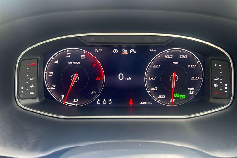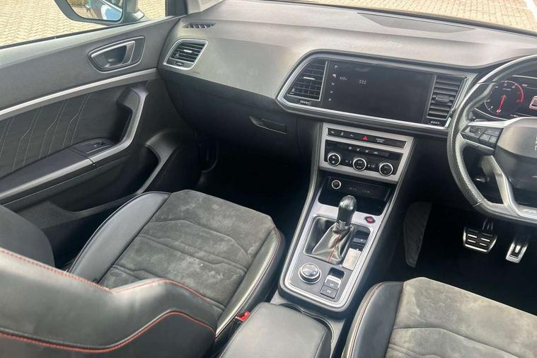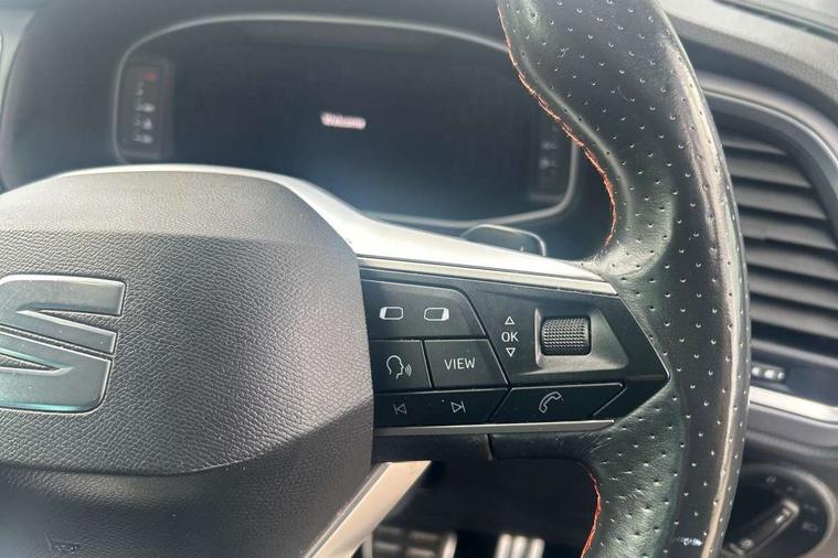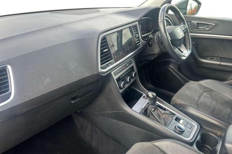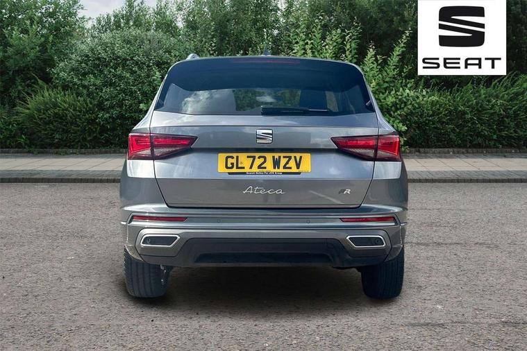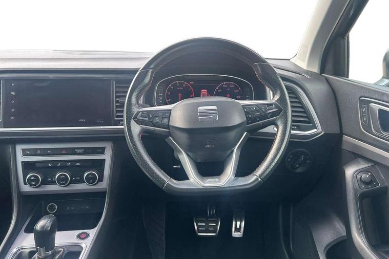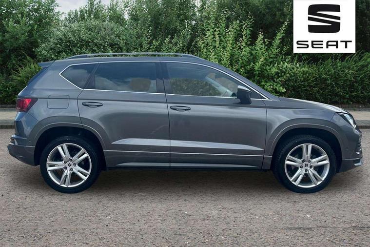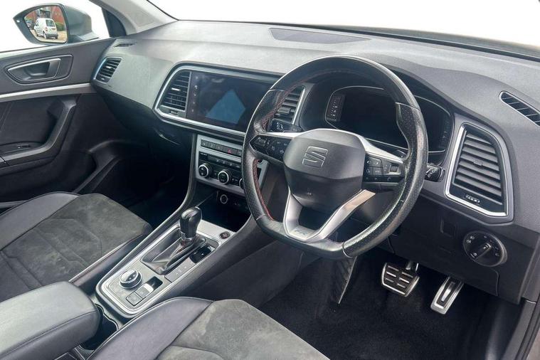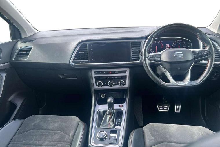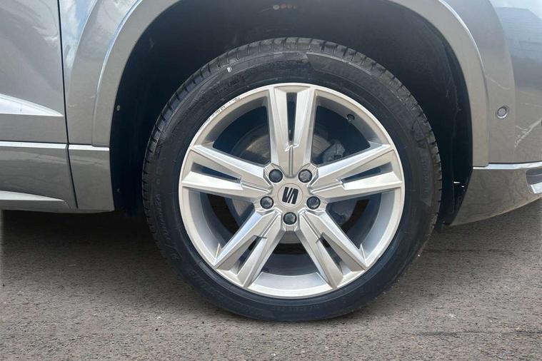 8" Digital cockpit, Colour multi-function on board computer display, Cruise control system with speed limiter, E-call, Outside temperature gauge, Progressive power assisted steering, SEAT drive profile with driving experience button - Normal, Sport, Eco and Individual mode, gearshift, steering and throttle response, Self parking functionality (includes front and rear parking sensors), Start/stop system, Tailgate, Trip computer, Wireless full link smartphone integration, Wireless phone charger, Steering wheel mounted audio/phone controls, Body colour bumpers, Body coloured wheel arch surrounds, Chrome front grille frame, Chrome roof rails, Chrome side window trim, Dark tinted rear windows, Daytime running lights, Door mirrors with welcome light silhouette, Dynamic headlight range control with self adjusting whilst driving, Electric adjustable/heated/folding door mirrors, Front and rear electric windows, Full LED headlamps with lens and LED front fog lamps with cornering function, Illuminated aluminium front door sill, LED rear tail lights with dynamic indicators, Rear fog lights, Rear side wing doors, Rear wash/wipe, Simulated exhaust pipes in chrome frame, Variable front intermittent wipers, 12V socket in front, 3 seat bench in 2nd row, 60/40 split folding rear seat, Aluminium pedals, Drawer under right front seat, Dual zone climate control, Front and rear head restraints, Front centre armrest, Front seat back storage pockets, Height adjustable driver and passenger seat with lumbar adjustment, ISOFIX points in outer rear seats with top tether anchorage points, Leather steering wheel and gear knob, Microsuede upholstery with front comfort seats, Rear armrest and easy back seat release mechanism from boot, Single front passenger seat, Steering wheel mounted gearshift paddles, Convenience pack - Ateca, Interior lighting pack - Ateca, Navigation system pack with DAB - Ateca, 3x3 point rear seatbelts, ABS, Traction control system (TCS), Electronic stability control (ESC) and Electronic differential lock system (XDS), Airbags - Driver and front passenger airbag with deactivation, front side, two curtain and driver's knee airbags, Electric parking brake with auto hold function, Front and rear seatbelt reminder, Front assist with autonomous emergency braking, Hill hold control, Manual rear child locks, Single tone horn, Tiredness recognition system, Traction control, Tyre pressure monitoring system, Alarm, Keyless entry, Locking wheel bolts, Remote central locking, Chrome interior detailing, 18" Brillaint silver alloy wheels,