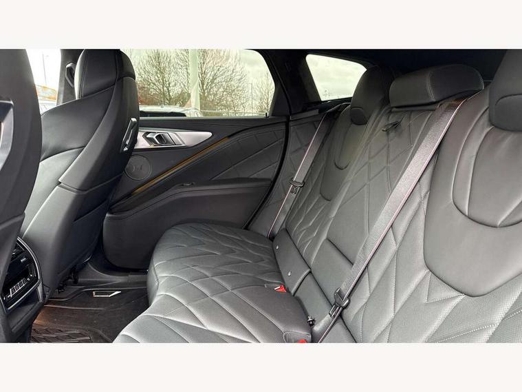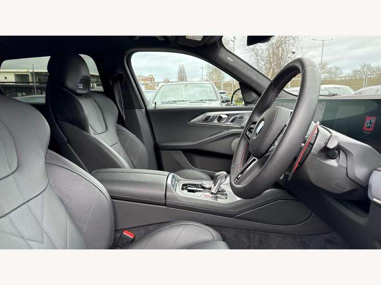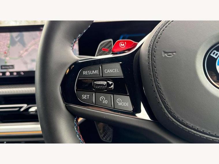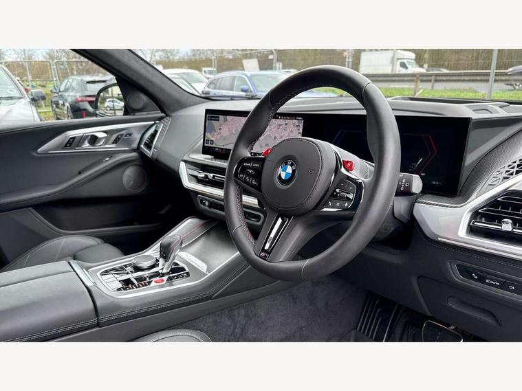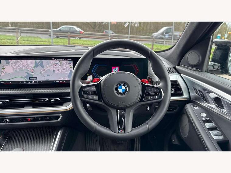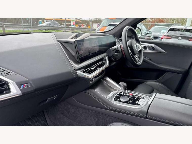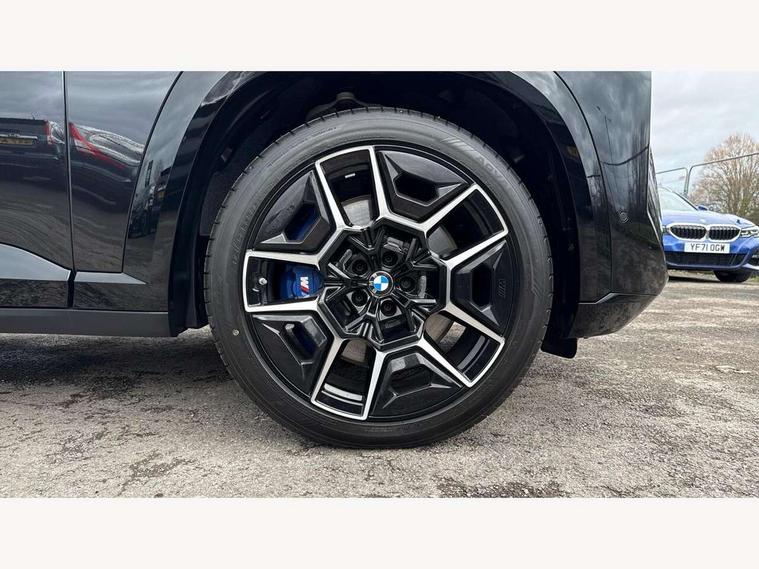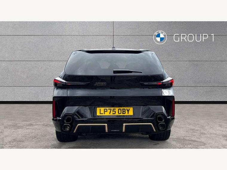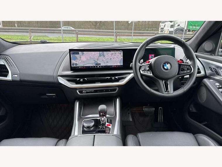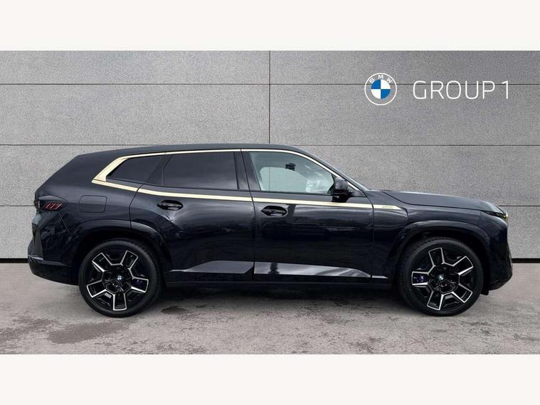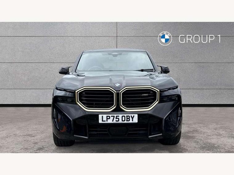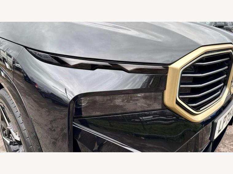 Attentiveness assist, Automatic tailgate operation, BMW gesture control, BMW legal emergency call, BMW Live Cockpit Pro with headup display, Navi, voice control, 12.3" instrument cluster, 14.9" control display, 3rd party app, bluetooth, Wi-Fi, BMW Teleservices, Brake pad wear indicator, Concealed underneath bonnet, Condition based service, Connected eDrive Services, Front/rear Parking distance control, Integrated owners handbook, Parking assistant plus with 360 degree surround view camera, remote 3D view, driver recorder and remote theft recorder, PAS, Speed dependent regulation with variable steering gear ratio, Stop/start button, 11 kW Onboard charger, AC/DC charging, Adaptive M suspension professional, Electric drive unit, Fast charging cable professional mode 3 for public charging, High voltage battery, M Sport differential, M xDrive system, Sport exhaust system, Steptronic transmission with gearshift paddles on steering wheel, BMW iconic sound electric, DAB Digital radio, Personal eSim, Adaptive LED Headlights with Low beam and high beam headlight function, Auto dimming driver's door mirror, Automatic cornering lights, BMW kidney Iconic Glow, Charging flap, Door locking - after driving off to secure vehicle, Dynamic brake lights, Electric windows - front and rear, with open/close fingertip control and trap release, Exterior centre air inlets in front bumper in black high gloss, Exterior mirror housings in black, Exterior mirrors with automatic parking function, Frameless interior mirror, Green tinted windows, Headlight range control, Heated windscreen washer jets, High beam assistant, High gloss black rear diffuser, LED daytime running lights, LED side lights, LED third brake light in rear spoiler, Light staging (welcome and goodbye), M specific electrically adjustable/foldable/heated exterior mirrors with integrated direction indicators, Prism optics door handle insert in black high gloss, Radiator grille struts in black high gloss, Rain sensor with automatic windscreen wiper and headlight activation, Rear reflector (left and right) integrated into bumper, Rear side wing doors, Rear window single layer safety glass, Rear wiper, Roof trim strips in black high gloss, Side window graphic including black band in night gold with XM badge, Sun protection glazing, Tailgate without BMW logo, Trailer stabilisation logic, Two lasered BMW logos in upper left and right of rear window, Two part led rear light with brake light and turn indicator in both parts, Two part radiator grille frame in night gold, Two rear design trim element in night gold, Wheel well cover and cladding in black high gloss, Windscreen and side window laminated safety glass, XM badge in left side radiator grille, 12V power socket in front centre console, 12V power socket in luggage compartment on right, 12V power socket in rear centre console, 15 preconfigured selectable colours with contour and mood lighting in Road mode, 1x USB Type A port in area of cupholder (charging with 1.5 A and data transfer), 1x USB Type C port for charging in armrest storage compartment, 2 cup holders in front, 2 x USB Type C ports for charging in rear centre console, 3 bench rear seats in 2nd row, 3 rear headrests, 3 spoke M leather steering wheel, 4 lashing eyes in luggage compartment, 40/20/40 split folding rear seats with backrest, Adjustable front head restraints, Ambient centre stack lighting, Ambient door panel lighting and unlocking, Ambient door pocket lighting, Ambient instrument panel lighting, Anthracite Velour front and rear floormats, Armrest - front and rear integrated door trim, centre console includes storage compartment, rear centre includes 2 cupholders, Backrest rear panel with folding pockets, BMW ID, BMW XM exclusive charging cable pocket in luggage compartment, Brushed/polished aluminium inserts in entry sills, Child seat ISOFIX attachment for the outer seats incl upper retaining strap, Contour instrument panel lighting, front centre console, door panel front and rear, Courtesy lights in tailgate, Door pockets with bottle holder, Driver and front passenger alcantara sun visors with illuminated vanity mirror and ticket holder, Driver/front passenger reading lights, Dynamic function of contour lighting, Four zone automatic air conditioning, Front and rear ambient footwell lighting, Front and rear door exit lighting (left / right), Front and rear Illuminated M logo in entry sills, Glove compartment lighting, Grab handle in front and rear outer seats integrated in roof lining at rear with coat hooks, Heated and cooled cupholders, Illuminated armrest handle, Illuminated M logo on headrestraints, LED ambient lighting for centre console, Lockable glove compartment, Luggage compartment lighting strips, M electric front sport seats includes electrical seat adjustment with memory, lumbar support and M embossing on headrests, Multifunction steering wheel, Nano filter, Non foldable rear headrests, Outer rear headrests height adjustable, Rear centre head restraint not adjustable, Rear reading lights, Sculptural headliner in 3D prism structure Alcantara with ambient lighting, Side marker reflector in lamella look integrated into tail light, Single front passenger seat, Soft close function for doors, Stationary cooling, Storage tray and compartment with lid in centre console, Two outer side adjustable head restraints in 2nd row, Two part parcel shelf in luggage compartment, Wireless charging tray, Comfort pack - XM, Connected package professional - XM, M Aerodynamic package - XM, Travel and comfort system pack - XM, 3 point seatbelts on all 3 rear seats, Acoustic protection for pedestrians, Active protection, Airbag - Front driver and passenger, side airbags and Head airbags, Airbags activation controlled with intensity and scope, Anti-lock braking system (ABS), Cornering brake control (CBC), Crash sensor activating central locking release, hazard warning lights, fuel cut off, interior lighting + activation of safety battery terminal cl
