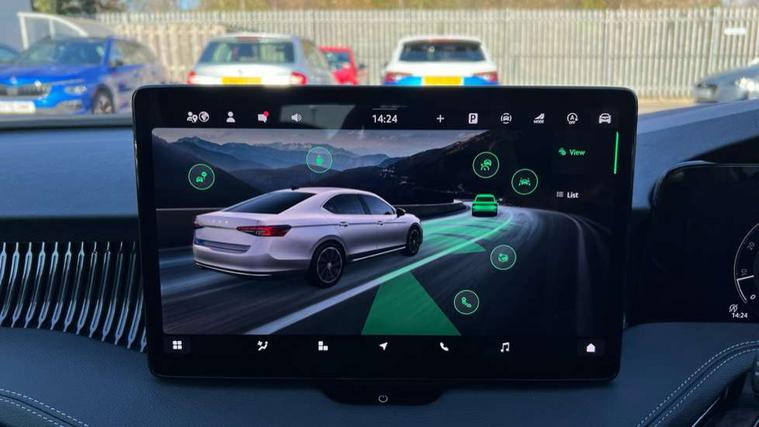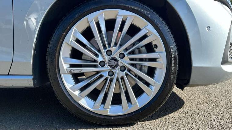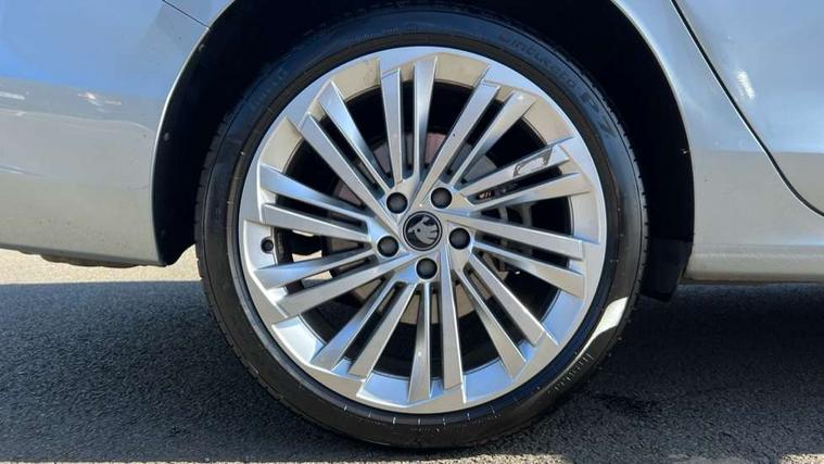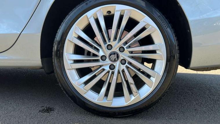 13" touchscreen display with satellite navigation, 4x USB-C ports (2x in front centre console and 2x in rear) (45W), Adaptive cruise control with speed assist, lane assist plus and traffic tram assist, Blind spot detection with door exit warning, Bluetooth system, CareConnect and Emergency Call, ChatGPT functionality, Driver fatigue sensor, Easy boot close funtion, Front assist with extended predictive pedestrian protection, Front cross traffic assist, PAS, Quick start all heating software functionality, Remote park assist, Stop/start engine system, Traffic sign recognition, Turn assist with evasive assistance, Virtual Cockpit - 10.25" digital display, Voice control system, Washer for rear camera, Wireless charging for one smartphone (15W) with cooling function, Wireless smartlink apple carplay, SmartLink+ android auto, Dynamic chassis control plus with progressive dynamic steering, Canton sound system - 14+1 speaker, DAB Digital radio, Display cleaner, FM radio connection, Web radio connection, Acoustic side windows and interior noise suppression, Backdrop lighting, Body colour door handles, Body coloured door mirrors, Chrome window surround, Dynamic range control with poor weather light and integrated fog light, Electrically adjustable, heated, folding and driver side auto-dimming door mirrors with memory function, integrated indicators and logo projection, Frameless auto-dimming rear view mirror with USB-C, Ice scraper in fuel tank cap, LED 3rd brake light, Light assist with High beam control, Light assistant (coming/leaving home/tunnel light), Privacy glass, Rear fog lights (x2), Rear side wing doors, Unique dark chrome design logo on alloy wheels, Unique dark chrome grille surround with dark chrome rib elements, plus dark chrome rear diffuser strip, Windscreen wipers with rain sensor, 12V socket 1x centre console 1x boot, 14-way electrically adjustable, memory, front seats with 4-way pneumatic lumbar support, and extendable thigh support with smart comfort entry aid, 2x cargo elements in boot, 2x light in boot, 3 seat bench in 2nd row, 60:40 Split folding rear seats, Advanced massage function for front seats, Bottle holders in the front doors 1.5 litre bottle and rear 1.5 litre bottle, Cup holder in front with easy open mat, Front armrest with storage box, Front sports comfort seats, Heated and ventilated front seats, Height adjustable front and rear head restraints, Illuminated glovebox, Interior lights with control switches, Isofix child seat fittings in outer rear and front passenger seats, LED front and rear reading lights, Single front passenger seat, Skoda lettering on steering wheel, Storage compartment with cover, Storage pockets on back of front seats, Sun visors with illuminated vanity mirrors, Ticket holder on A Pillar, Tri zone climate control, Umbrella in driver's door, Light and view package - Superb, Parking package - Superb, Transport package - Superb Hatchback, Winter package - Superb, 3 rear seatbelts, 8 Airbags - Front driver and passenger, front side driver and passenger, centre, curtain front and rear, drivers knee, Crew protect assist, Driver and passenger seatbelts with warning light, Electronic parking brake, ESC including ABS, EBV, MSR, ASR, EDS, HBA, DSR, RBS, CBC, multi-collision brake (MKB) and Auto hold, Hill hold assist, Power operated child lock in rear doors, Alarm with interior monitoring tilt sensor and back up horn, Backrest remote release from trunk, Electronic engine immobiliser, Keyless start/stop, Remote central locking with SAFE system, Third key, Walk away locking, Decorative front door sills, 18" Steel space saving spare wheel,