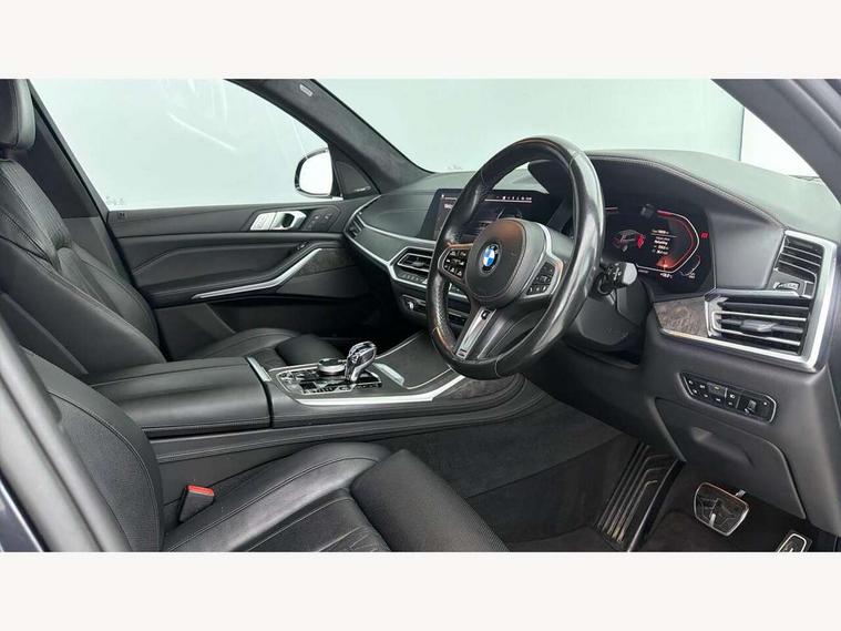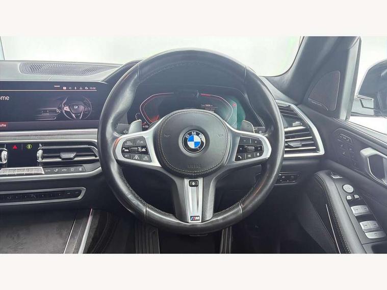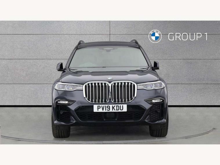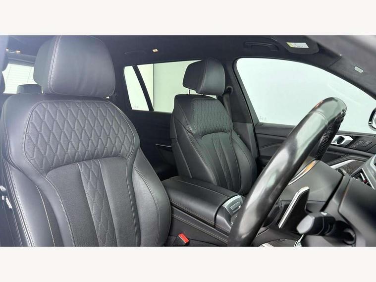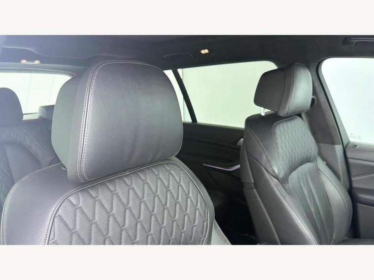 20GB hard disc drive (HDD) memory, Active guard plus, Attentiveness assist, Automatic tailgate operation, BMW digital live cockpit professional - 12.3" digital instrument panel and 12.3" CID + Intelligent personal assistant, BMW display key, BMW legal emergency call, BMW Online services, BMW Teleservices, Brake force display, Brake pad wear indicator warning light, ConnectedDrive Services, Cruise control with brake assist, Electric Power Steering (EPS) with Servotronic, Enhanced bluetooth hands free facility with Telephony wireless charging, iDrive touch controller with shortcut buttons, Oil sensor for level and grade, On board computer inc. average speed, fuel consumption, liquid crystal Info display, journey computer, outside temperature display, personal profile, Parking assistant plus with active park distance control, Speed limiting function, Stop/start button, Wi-Fi hotspot, Adaptive 2-axle air suspension, Diesel particulate filter, Double wishbone front axle, Drive performance control with ECO PRO comfort + sport and adaptive mode, 1 x USB A 1.5A in cupholder, 1 x USB C 3A in centre armrest & 1 x double USB C 3A in rear end of console for 2nd seat row, DAB tuner, Favourite buttons, Gesture control for infotainment system, Acoustic glazing, Active Air Stream kidney grille with high-gloss chrome, Adaptive LED Headlights, Body colour mirror housing, Chrome trims and door surrounds, Door sill finishers with M designation, Dynamic brake lights with LED technology, Exhaust tailpipes - single, left and right with Chrome finisher, Follow me home headlight function, Frameless interior mirror, Front and rear electric windows, Heated windscreen washer jets, High beam assist, LED daytime running lights, LED fog lights, LED rear lights, M aerodynamic bodystyling, M designation on left and right front side panels, Rain sensor with automatic headlight activation and windscreen wiper control, Tailpipe finisher, Third brake light in rear spoiler, Welcome light carpet, X7 on left tailgate, xDrive designation on right tailgate, 12V - Power sockets with 2x centre console and 1x luggage compartment, 3rd row seats, Ambient interior lighting with 6 pre-designed selectable lights including dynamic function, BMW Individual headliner anthracite, Centre console includes storage compartment, Compartment in front of cupholder, Electric adjustable driver and passenger seat with memory function, Electrical steering column with adjustable height and length with activation and control on the steering column, Electrically adjustable front comfort seats, Foldable rear centre armrest with 2 cupholders and storage compartment, Front and rear door pockets, Front and rear door sill inlays with illuminated BMW M designation, Front and rear seat heating, Front and rear side armrests integrated into door trim, Front footwell lights, Front reading lights, Grab handles, Headrests for all seats, Light inside glove compartment, Lockable glove compartment, Luggage compartment floor panel with integral storage tray, M leather steering wheel, M specific key, M specific pedals, M specific steering wheel, Make-up mirror lights, Microfilter and active carbon filter, Multifunction controls for leather steering wheel, Multifunctional hooks, Rear centre interior light, Seat back with flap pocket, Soft close function for doors, Sunvisors with illuminated vanity mirrors, Toolkit located in luggage compartment, Velour floormats, Connected Package Professional - X7, Expanded exterior mirror pack - X7, Luggage compartment pack - X7, Active protection, Airbags - driver, front passenger, front and side head airbags for first and second row seats knee airbag, Anti-lock braking system (ABS), Automatic Stability Control (ASC), Brake energy regeneration, Child seat ISOFIX attachment rear outer seats in 2nd row and both seats in 3rd row includes top tether, Comfort cushion, Crash sensor and Safety battery terminal clamp, DSC - Dynamic Stability Control, Dynamic Traction Control - DTC, Electromechanical parking brake with automatic drive away release and auto hold function, Front and rear brake discs with interior ventilation, Integrated brake system, M Sport braking system, Mechanical child proof lock on rear doors, Passive protection for pedestrians, Seat occupancy detection for driver and passenger side, Side impact protection, Split folding 2nd row seating with 40:20:40 configuration, Three point rear seat belts, Two tone horn, Tyre pressure monitoring system, Warning triangle and first aid kit, Closing system with central locking, Comfort access system, Driver and front passenger door centre lock switch, Locking wheel bolts, Thatcham 1 alarm system with remote control and engine immobiliser, Vehicle key with M specific designation, BMW Individual leather finished instrument panel, Galvanic embellisher for controls, Sensatec instrument panel,