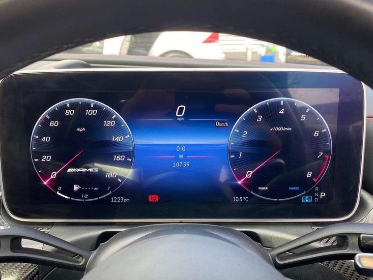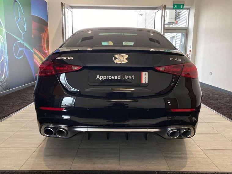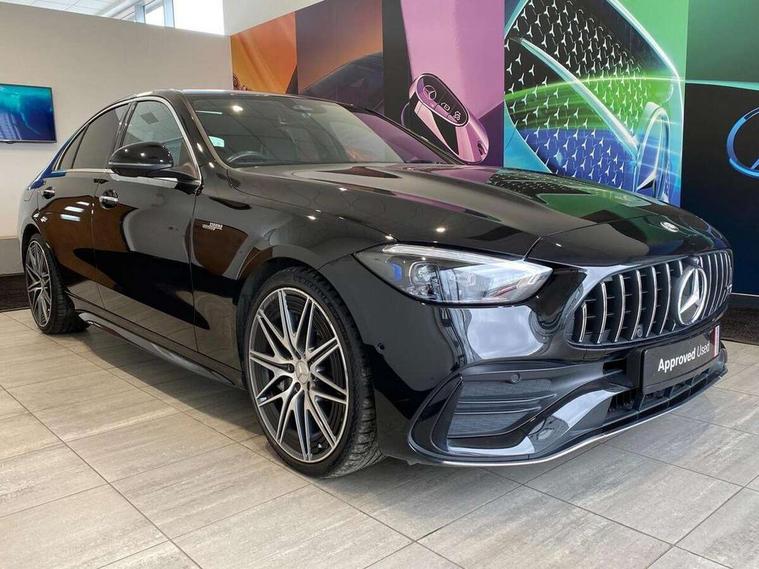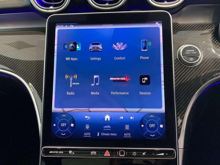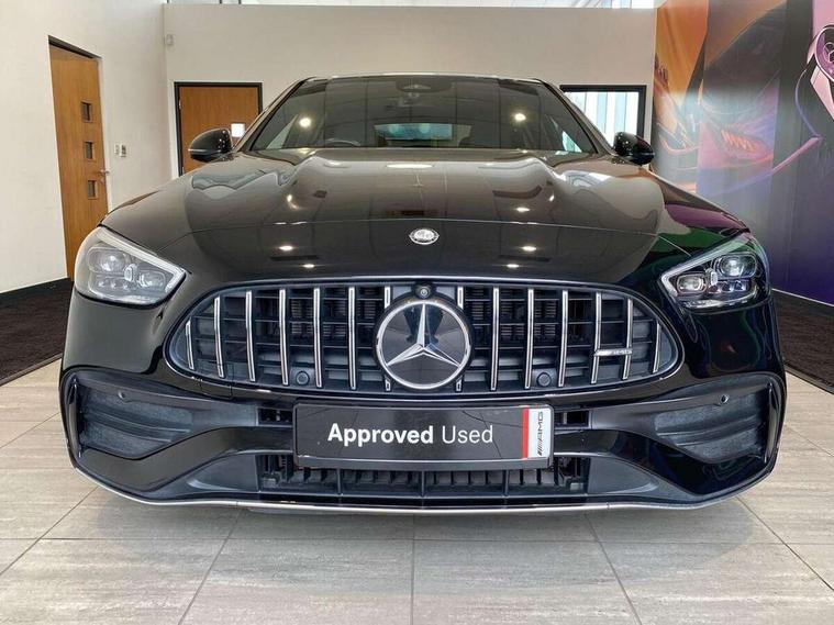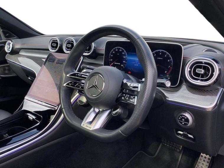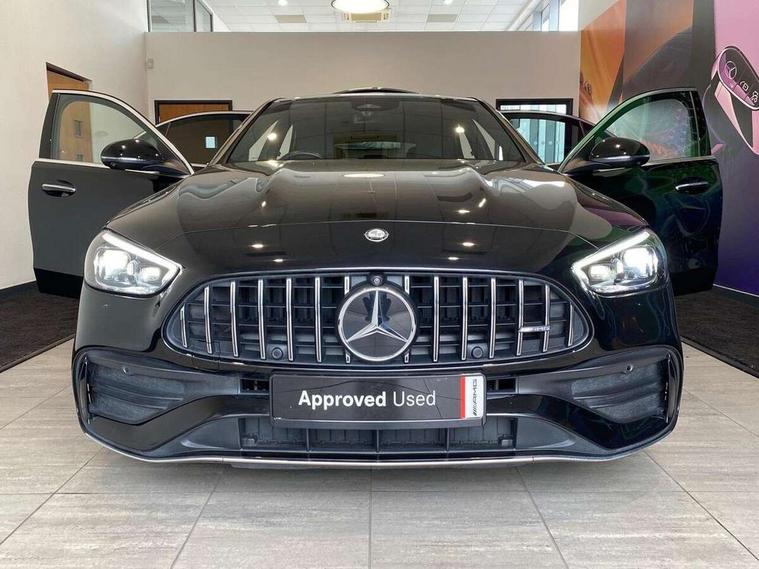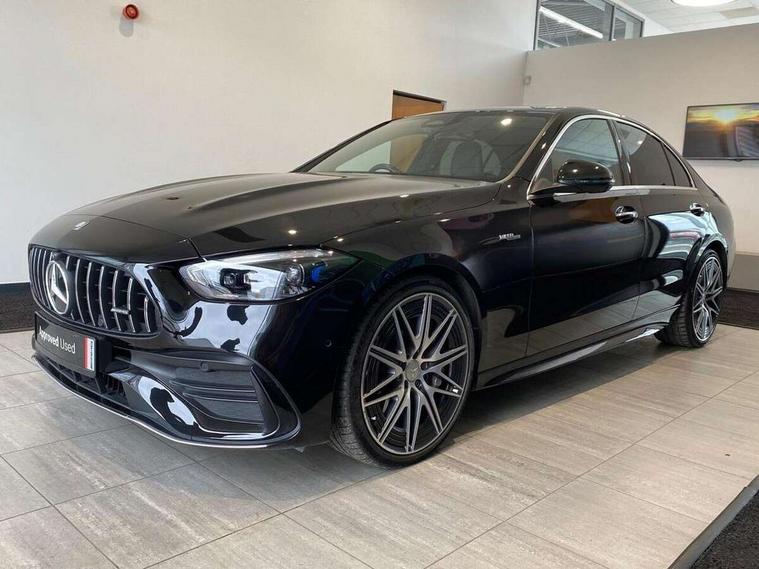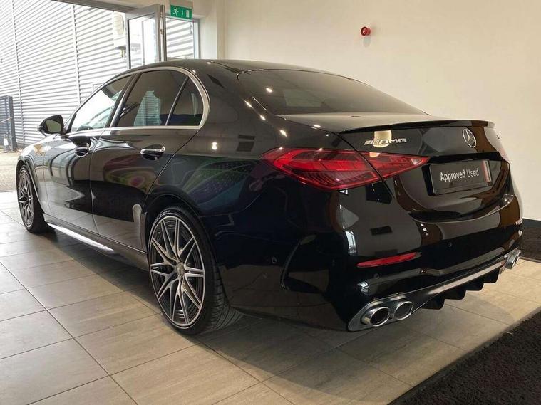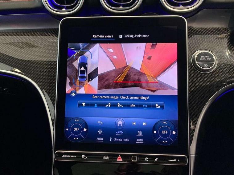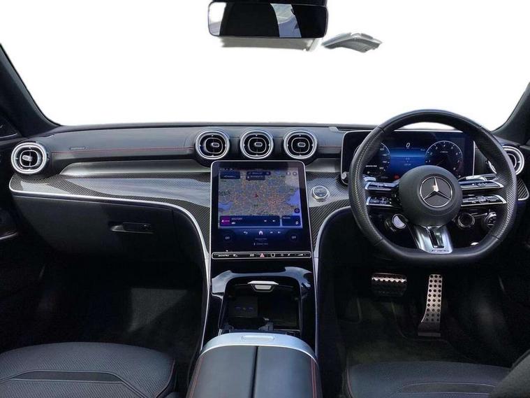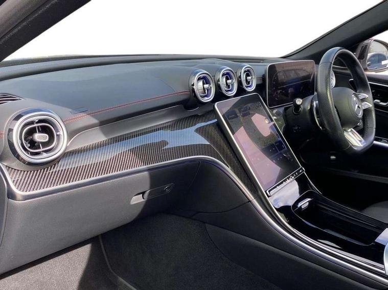11.9" high resolution multimedia colour display, 12.3" digital instrument cluster display, Active lane keeping assist, AMG DYNAMIC SELECT with a choice of driving modes (Slippery, Comfort, Sport, Sport+, Individual), Attention assist, E-call, Extended MBUX functions, Finger print sensor, Fluorescent jacket for driver, Head up Display, MBUX augmented reality for navigation, MBUX navigation premium, MBUX voice control activated by keywords "Hey Mercedes", Mercedes connect me, Mercedes me remote services, Outside temperature gauge, Pre-installation for digital key transfer, Rear axle steering, Remote boot release, Service indicator (ASSYST), Smartphone integration, Sports direct steer speed sensitive steering, Status display for rear seat belts in instrument cluster, Traffic sign assist, Wireless charging system for mobile devices, 57 litre fuel tank, 9G TRONIC 9 speed automatic transmission, Agility control sports suspension with adaptive damping system, Petrol Particulate Filter, Residual engine heat utilisation, Sporty engine sound system, Burmester 3D surround sound system, DAB Digital radio, MBUX multimedia system, Adaptive brake lights, Adaptive high beam assist plus, AMG body styling front apron, rear apron and side skirts, AMG front bumper with sporty air intakes and chrome elements, AMG illuminated door sills with AMG lettering and with exchangeable cover, AMG lip spoiler, AMG rear bumper with high gloss chrome elements, AMG side skirts in vehicle colour, B-pillar trim in glossy black, Body coloured bumpers, Body coloured door mirrors, Chrome beltline trim, Daytime running lights, Digital light LED headlights with projection function, Electric panoramic sliding sunroof, Electric windows with one touch opening/closing and obstruction sensors, Electrically adjustable and heated door mirrors, Exhaust system with two round twin tailpipe trim elements in high gloss chrome, Green tinted glass, Heat insulating dark tinted glass, Illuminated front door sill panels, LED Indicators, LED tail lights, LED third brake light, Mercedes AMG exterior, Noise acoustic glass, Powerdomes on bonnet, Privacy glass, Radiator diamond grille with integrated Mercedes Benz star and louvre silver with chrome pins, Radio aerial integrated into rear window, Rain sensor with automatic windscreen wiper activation, Rear boot, Rear side wing doors, 3 seat bench in 2nd row, 3 spoke flattened bottom AMG multifunction steering wheel in black nappa leather with chrome inserts and perforated leather in grip area, 40:20:40 split folding rear bench seat, AMG Leather upholstery, AMG sports seats, AMG steering wheel buttons, Audio and onboard settings control on multifunction steering wheel, Auto Mercedes-Benz child seat recognition sensor, Black air vents with silver chrome elements, Black floor mats with AMG lettering, Black roof liner, Door trim elements high gloss black with silver chrome surroundings and switches, Double cupholder in centre console, Electrically height/reach adjustable steering column, Folding rear seat backrest, Front and rear head restraints, Front centre armrest with storage compartment, Gearshift paddles on steering wheel, Heated front seats, Illuminated glove compartment stowage, Interior lighting - 64 colour Ambient lighting, Mercedes AMG interior, Overhead control unit in high gloss black, Rear top tether child seat ISOFIX attachment, Single front passenger seat, Sports pedals with stainless steel surfaces and rubber studs, Sunvisors with illuminated vanity mirrors, Thermotronic automatic 4 zone climate control, Interior lighting package - C Class, Memory package - C Class, Mirror pack - C Class, Parking package with 360 degree camera - C Class, Seat comfort pack - C Class, Stowage space pack - C Class, USB package plus - C Class, 3 rear 3 point seatbelts, Active bonnet pedestrian safety measure which detects an impact and raises bonnet, Adaptive brake system with HOLD function and brake drying in the wet, Anodised silver colour brake calipers with Mercedes-Benz lettering + perforated front brake discs, Anti-lock braking system (ABS), Child proof door locks, Drivers knee airbag, Drivers pelvis airbag, Dual stage driver/passenger airbags, Electric parking brake, Electronic Stability Programme (ESP), Front centre airbag between driver and front passenger seats, Front side airbags, Larger brake discs on front axle, Rear seatbelt warning indicator, Sports braking system, Tyre pressure monitoring system, Warning triangle and first aid kit, Window airbags for driver, front passenger and rear passenger, Central locking with interior switch, automatic locking and crash sensor with emergency opening function, Chrome surround in electric key, Dashcam, Guard 360 degree vehicle protection, Keyless Go comfort access, URBAN GUARD vehicle protection (Thatcham Category 1) consisting of break-in, anti-theft alarm system (ATA), interior monitoring and tow-away protection, Artico man-made leather dashboard with contrast stitching, Centre console trim in high gloss black with carbon fiber trim, 20" AMG 5 twin spoke light alloy wheels in tantalite grey with high sheen finish, Noise reduced tyre with foam absorber, Summer tyres, TIREFIT with tyre inflation compressor,