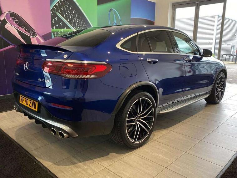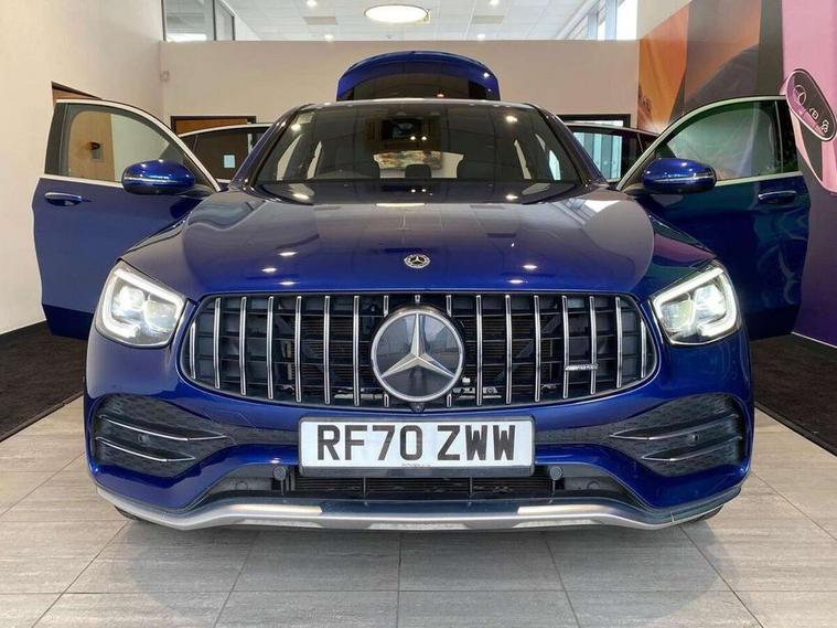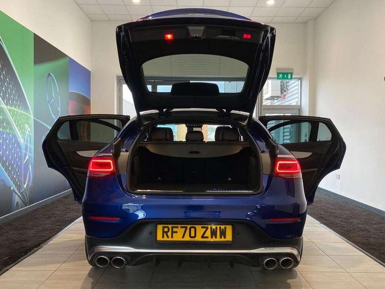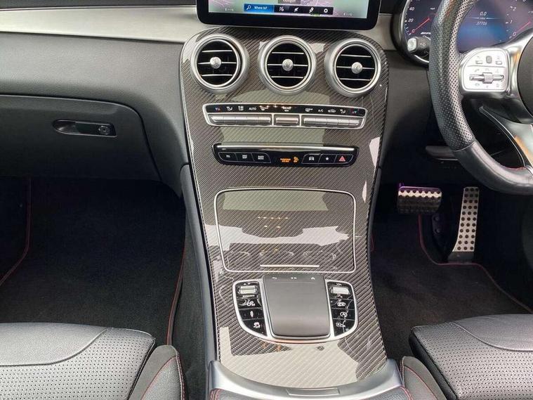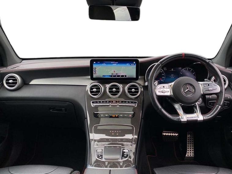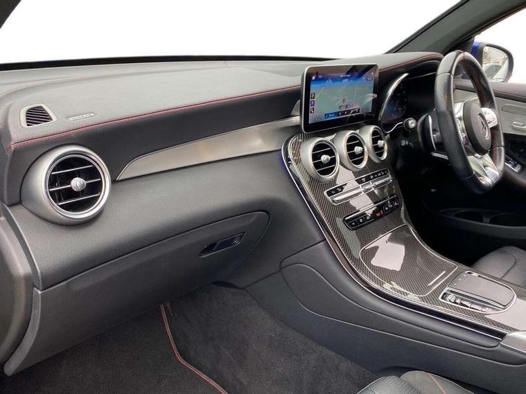360 degree view camera, Attention assist, Bluetooth interface for hands free telephone, Collision prevention assist plus, DYNAMIC SELECT with a choice of driving modes (ECO, Comfort, Sport, Sport+ and Individual), Easy pack automatic powered tailgate, ECO start/stop function, Hard disk navigation, Hey Mercedes Voice activation, Instrument cluster with12.3-inch digital instrument cluster display. High resolution instrument cluster screen with choice of three display styles, MBUX augmented reality for navigation, MBUX Interior assistant, Mercedes connect me with remote online services, Multi function trip computer, Outside temperature display, rear seatbelt status indicator, Parktronic system with rear cross traffic alert and drive away assist, Remote boot release, Service indicator (ASSYST), Smartphone integration with Apple CarPlay and Android auto, Traffic sign assist, Wireless charging, 66 litre fuel tank, AMG electronic rear axle limited slip differential lock, AMG performance 4MATIC+, AMG ride control air suspension for front and rear axles with continuously adjustable damping, AMG SPEEDSHIFT TCT 9G 9-speed automatic transmission with steering column gear selector, DIRECT SELECT steering wheel gearshift paddles, Petrol Particulate Filter (PPF), Burmester surround sound system, MBUX multimedia system with DAB digital radio and touchpad including satellite navigation, Media display 10.25-inch touchscreen display, Pre installation for Mercedes Benz Link, USB ports x 2 in centre console, Adaptive brake lights, AMG bodystyling front apron with silver chrome trim element, AMG bodystyling with 2 black louvres in outer air intakes, AMG bodystyling with rear apron and diffuser fins, AMG bodystyling with side sill panels, AMG Performance exhaust, AMG radiator grille with black vertical louvres and trim strip in high gloss chrome, Body colour door mirrors, Body coloured bumpers, Electric sliding glass sunroof, Electric windows one touch open/close, Electrically adjustable and heated door mirrors, Front, side and rear exterior chrome trim, Headlamp assist automatic headlamp activation, LED tail lamp, Motor way mode function and locator lighting, Multi beam LED headlamps with 84 indiviually control LED, daytime running lamps, Active Light, cornering light, enhanced fog lamp, adaptive Highbeam Assist, Privacy glass with dark glass from B pillar backwards, Rain sensor windscreen wipers, Range adjustable headlights, Rear wiper, Running boards, Tinted glass all round with single layer safety glass, Two chrome plated tailpipe trim elements, 2 way rear head restraints, 40:20:40 split folding rear seats, Ambient lighting, AMG floor mats with edging and embroidered AMG lettering, AMG sports seats, Artico man-made leather upper dashboard with contrast topstitching, Automatic child seat recognition sensor, Black roof lining, Dividing net - rear, Double cup holder in centre console, Easy-pack removable load compartment cover, Flat bottomed multifunction sports steering wheel in black nappa leather, embossed in central grip, with silver chrome steering with red topstitching, Front armrest with storage box, Front door sills with Mercedes Benz lettering, Front head restraints, Heated front seats, Heated steering wheel, Illuminated and lockable glove compartment, Leather upholstery, Rear top tether child seat ISOFIX attachment, Sports pedals with stainless steel surfaces and rubber studs, Steering wheel with touch control buttons, THERMOTRONIC 3 zone automatic climate control, Interior lighting pack - GLC, Keyless Go comfort pack - GLC, Memory pack - GLC, Mirror pack - GLC, Storage pack - GLC, 3 rear 3 point seatbelts, Active bonnet, Adaptive brake system with HOLD function and brake drying in the wet, ASR, Black seat belts, Brake calipers with Mercedes-Benz lettering + perforated brake discs, Child proof door locks, Dual-stage airbags - driver and front passenger, driver knee bag and window bags for driver, front passenger and rear passengers, Electronic parking brake, Electronic stability programme (ESP) with curve dynamic assist and cross wind assist, Front and rear seatbelt reminder, Front passenger seat occupancy sensor, Hill hold function, Tyre pressure monitoring system, Warning triangle and first aid kit, Alarm system/interior protection/immobiliser, Automatic door locking, Remote central locking, AMG carbon-fibre with light longitudinal grain aluminium trim, 21" AMG 5 twin spoke design alloy wheels painted in black with high sheen finish, Tirefit tyre sealant kit,
