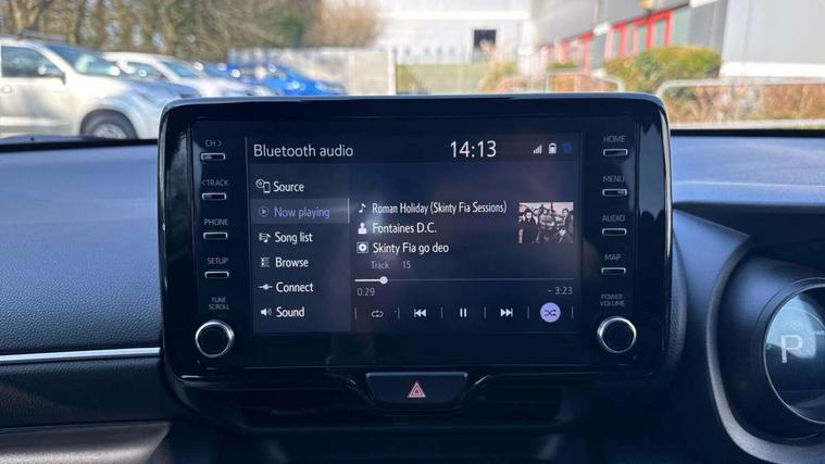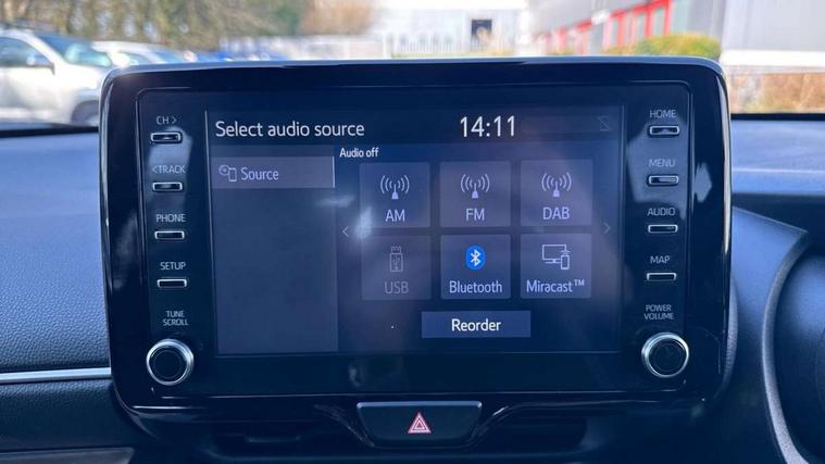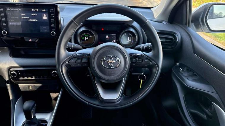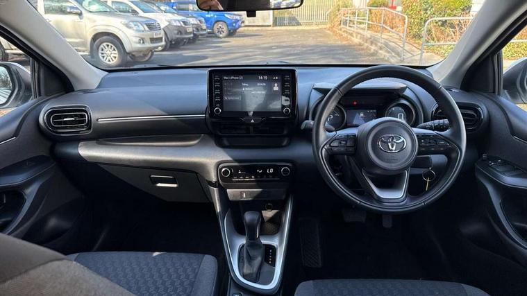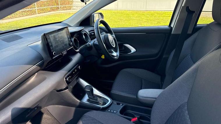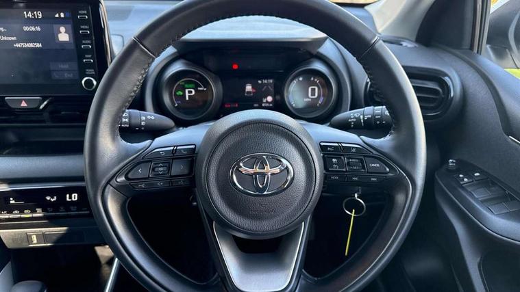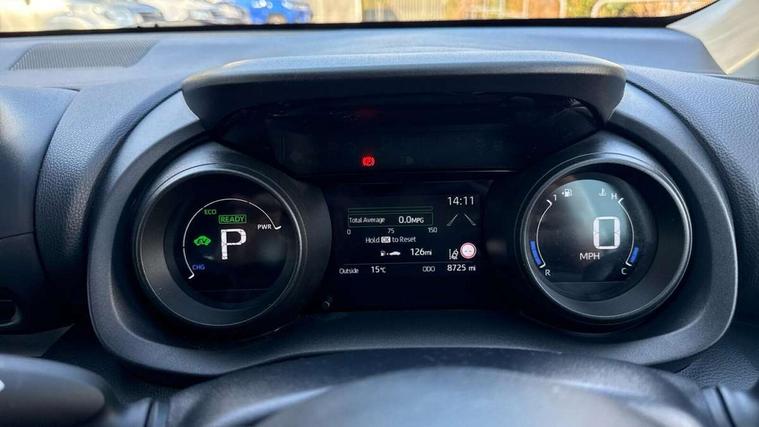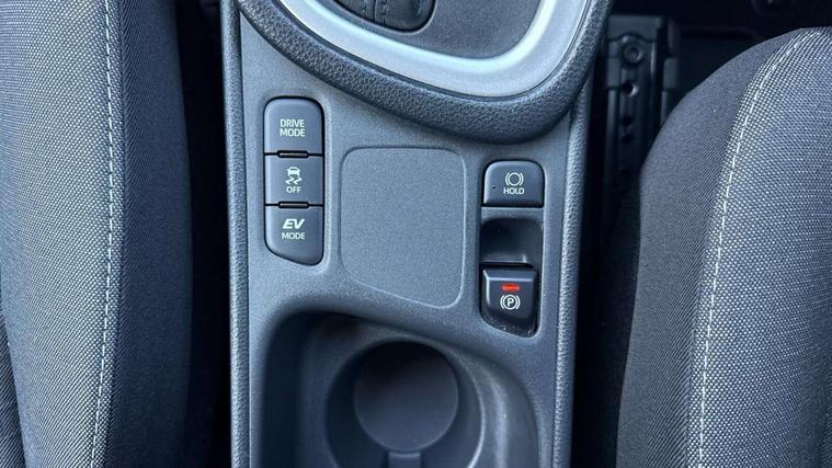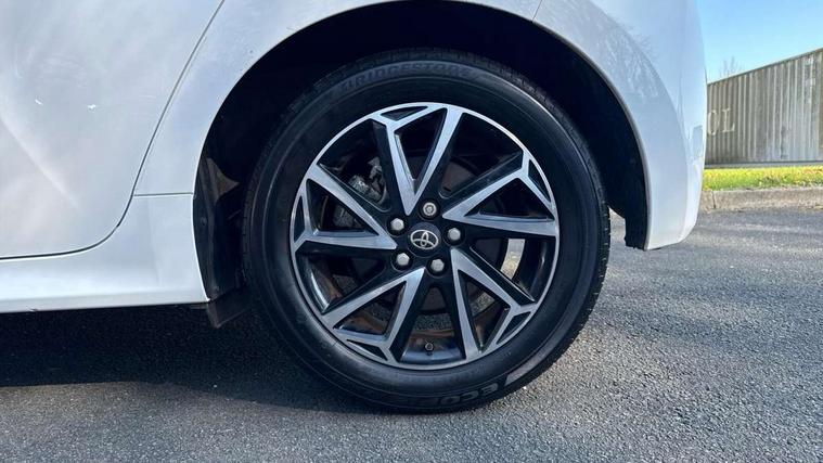 Adaptive cruise control, Adjustable speed limit with speed warning, Bluetooth connectivity, Colour binocular inspired displays with digital speedometer, E-call, Electric power steering, Hybrid energy display, Multi information display switches on steering wheel, Reversing camera, Smartphone integration with Apple CarPlay and Android auto, Tailgate, Voice recognition, Vehicle Stability Control (VSC), 4 speakers, 8" Multimedia display touch screen, USB connection, Acoustic windscreen glass, Auto windscreen wipers, Automatic headlights, Body coloured door mirrors, Electric adjustable heated door mirrors, Follow me home headlights, Front auto power windows with anti jam protection, Full LED rear lights, LED daytime running lights, LED front fog lights, LED front light guide, LED Headlights, LED High mounted stop lamp, LED Indicators, LED rear light guide, Manual headlight levelling, Painted chequered front grille, Rain sensor, Rear auto power windows with anti jam protection, Rear privacy glass, Rear side wing doors, Rear spoiler, Rear wiper, Shark fin antenna, Turning signal integrated indicators in door mirrors, Variable front intermittent wipers, 3 adjustable rear headrests, 3 spoke leather steering wheel, 60/40 split folding rear seat, Active headrests, Adjustable boot height, Auto air conditioning, Coat hooks in rear grab handles, Cup holders (2 front & door), Data Communication Module (DCM) connected services, Fabric upholstery, Front armrest, Glovebox, Grey roof lining, Height adjustable driver's seat, Isofix seat fixing, Leather gearshift, Pollen filter, Shopping bag hooks, Single front passenger seat, Tilt/telescopic steering column, 3 point seatbelts on all rear seats, ABS+EBD+Brake assist, Electronic parking brake, Emergency brake light system (EBS), Front passenger airbag on/off switch, Front seatbelt reminder, Hill start assist control (HAC), Rear child proof door locks, Rear seat belt reminder, Supplemental Restraint System (SRS) 8 airbags: Driver & passenger's airbags, dual side curtain airbags, side impact airbags, front centre airbag, Toyota Safety Sense 2, Precollison + Night time Pedestrian & Cyclist Detection, Lane Trace Assist, Auto High Beam, Intelligent ACC & Road Sign Assist, Tyre pressure warning system, 2x Master key, Alarm/immobiliser, Remote powered central double locking doors, Soft touch instrument panel, Space saver spare wheel,
