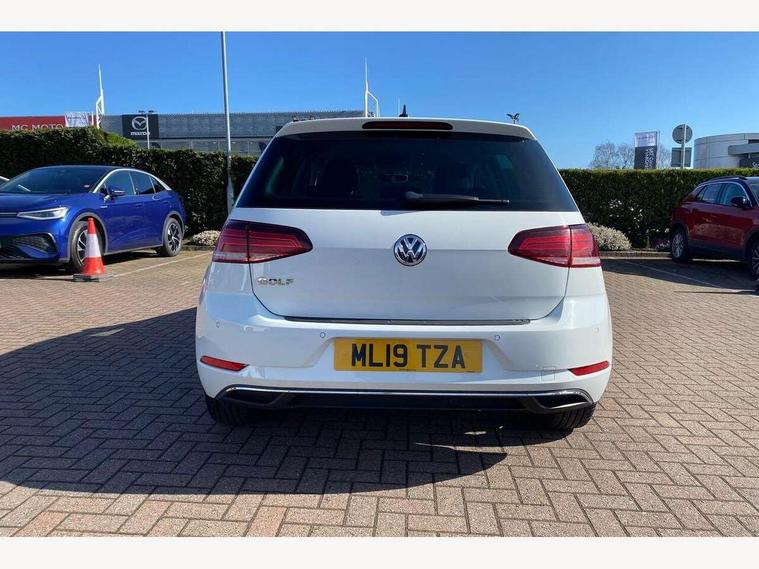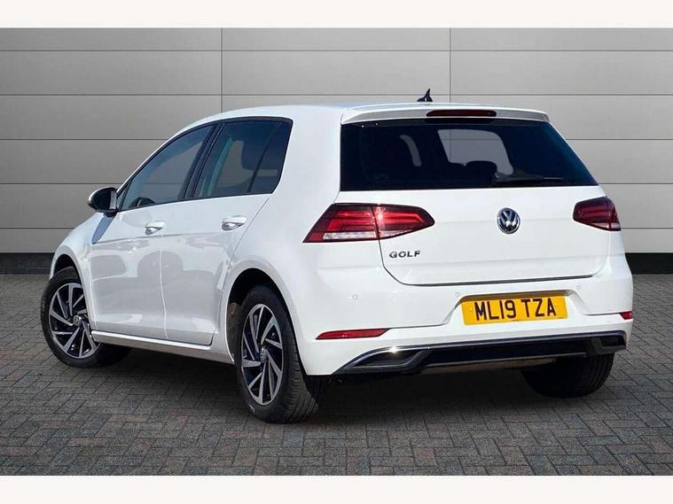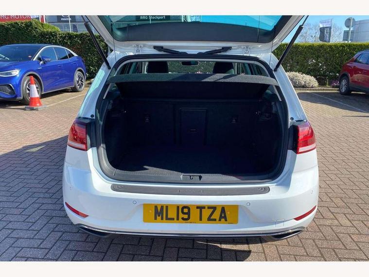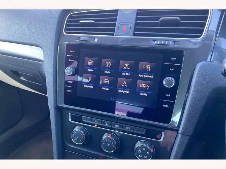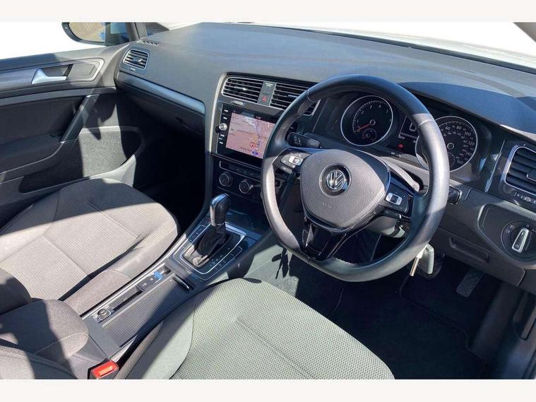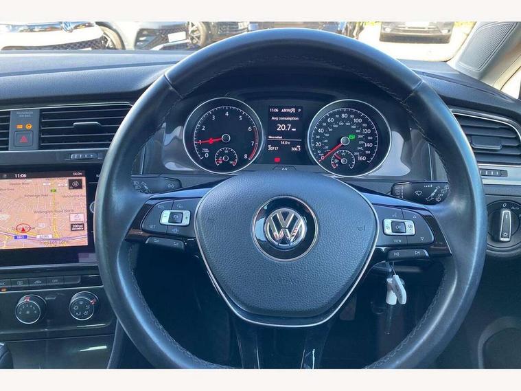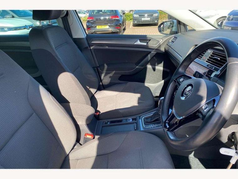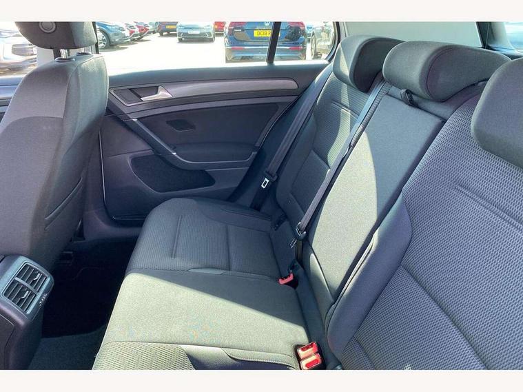 'Lights On' Reminder warning buzzer, ACC - Adaptive cruise control with front assist, forward collision warning, distance monitoring, city emergency brake and speed limiter, Bluetooth telephone and audio connection for compatible devices, Brake pad wear indicator warning light, Driver alert system, Driver profile selection, Driving Mode Selection with four preset modes - Eco, normal, sport or individual modes, Instrument cluster in white, Multifunction computer with visual gear change recommendation for fuel consumption, Power assisted speed sensitive electro-mechanical steering, Push tank flap, Speed limit display, Speedo, rev counter, electronic odometer, trip, service interval display, exterior temperature and fuel gauge, Stop/start system, Warning buzzer and light for front seatbelts unfastened, Battery regeneration during braking, XDS electronic differential lock, Composition media system, DAB Digital radio receiver, Driver Personalisation profile selection, MP3/WMA compatability, Multi device interface (MDI) with USB connection, Personalisation 1.1 profile for media, Premium USB cable in choice of either Apple or Android smartphone compatibility, SD card slot, SMS Functionality, USB and SD card connectivity, Black front air intake and radiator grille with chrome insert, Black rear diffuser, Body colour bumpers, Body colour door handles, Body colour door mirrors with integrated indicators, Dusk sensor + automatic driving lights, Electric front windows, Electric rear windows, Electrically adjustable and heated door mirrors, Fully galvanised body, Heated rear windscreen, Hidden exhaust pipe, High level 3rd brake light incorporating LED Technology, LED daytime running lights, LED front fog lights with static cornering light function, Rear fog lamp, Rear tinted glass 65% light absorbing from B pillar backwards, Rear window aerial, Rear window wash/wipe with intermittent wipe, Reflectors in all doors, Tailgate with integrated rear roof spoiler, Windscreen wipers/ intermittent wipe + 4 position delay, 12V socket in luggage compartment, 3 rear headrests, 4 load lashing points in luggage compartment, 60/40 split folding rear seat backrest, Auto fold down lever in rear seat backrest, Bag hook in luggage compartment x 2, Cooled glovebox, Cupholder cover, Dust/pollen filter, Front and rear reading lights incorporating LED technology, Front centre armrest with storage compartment and two rear air vents, Front seat back storage pockets, Grab handles front x 2, rear x 2 with integrated coat hooks, Height and reach adjustable steering wheel, Illuminated vanity mirrors, Instrument lighting white adjustable panel illumination, Interior light delay, Isofix preparation for 2 rear child seats, Load through provision with rear centre armrest and cupholders x2, Luggage compartment lighting, Overhead storage box, Passenger underseat drawer, Pearl grey headlining, Storage box in luggage compartment, Storage compartment in roof console with cover, Storage compartments in centre console, Storage compartments in front doors, Storage compartments in rear doors, Stowable luggage compartment cover, Sun visors, Variable boot floor, height adjustable and removable, Convenience Pack - Golf, Light and Sight pack - Golf, Mirror pack - Golf, 3 rear three point seatbelts, Airbags - Driver's and front passenger's, curtain airbag, Driver's knee, front side impact and passenger's airbag deactivation switch, Anti-lock Braking System (ABS) with Hydraulic Brake Assist (HBA), Automatic post collision braking system, Child locks on rear doors, Driver/Passenger optimised head restraints, Electronic parking brake with auto hold, Electronic stability control (ESC) including Electronic differential lock (EDL) and ASR (Traction control) with deactivation via infotainment system, Front ventilated disc brakes and rear disc brakes, Pre crash preventive occupant protection, Three point height adjustable front seatbelts with tensioners, Tyre pressure loss indicator, Alarm with interior protection and deactivation via infotainment system, Electronic engine immobiliser, Remote central locking with 2 remote folding keys, Brushed dark silver decorative inserts in dash and door panels, Chrome plated air vent surround, Chrome plated electric mirror adjustment light switch surround, Polar night black centre console, Steel space saver spare wheel,