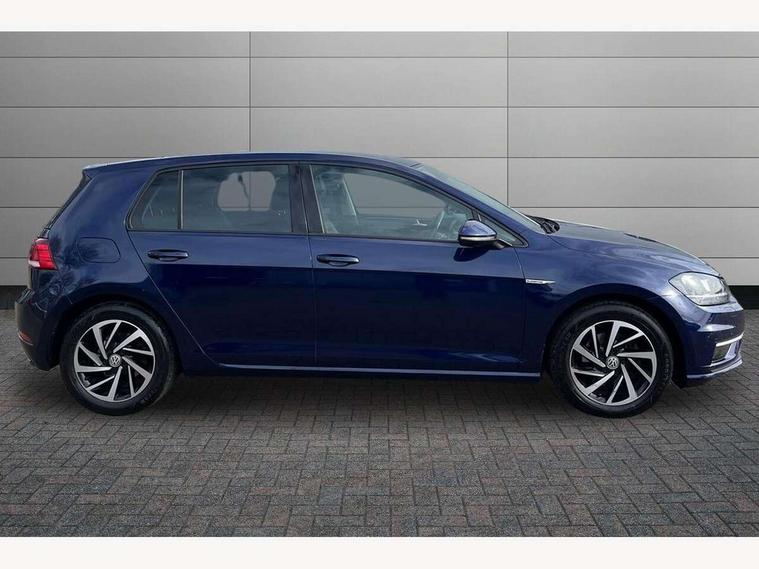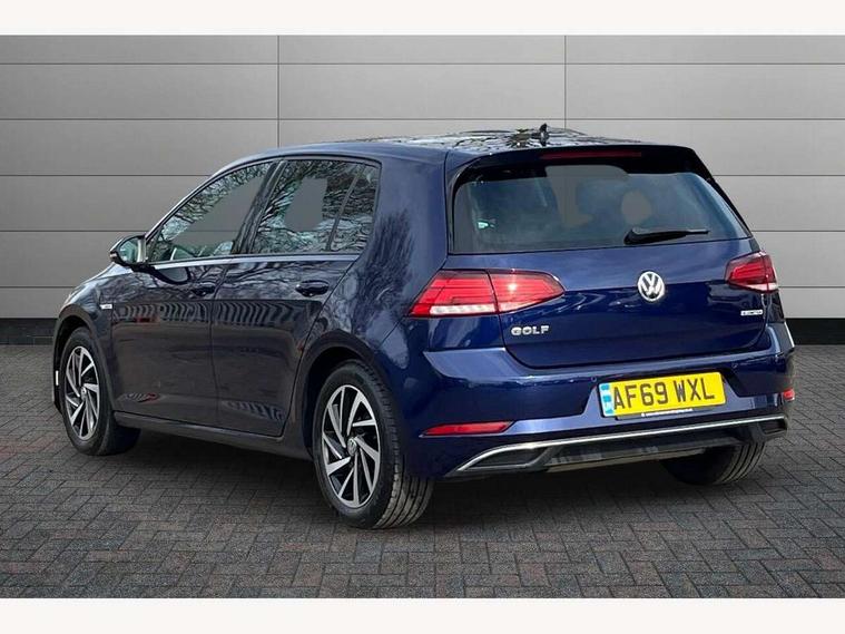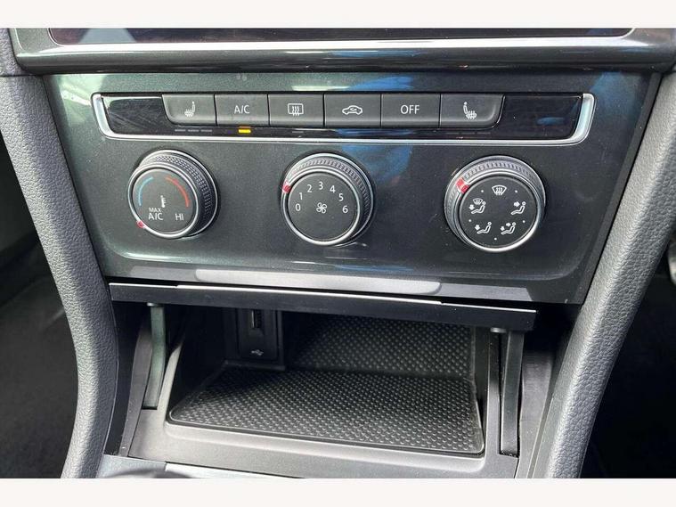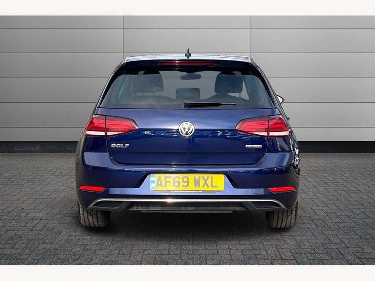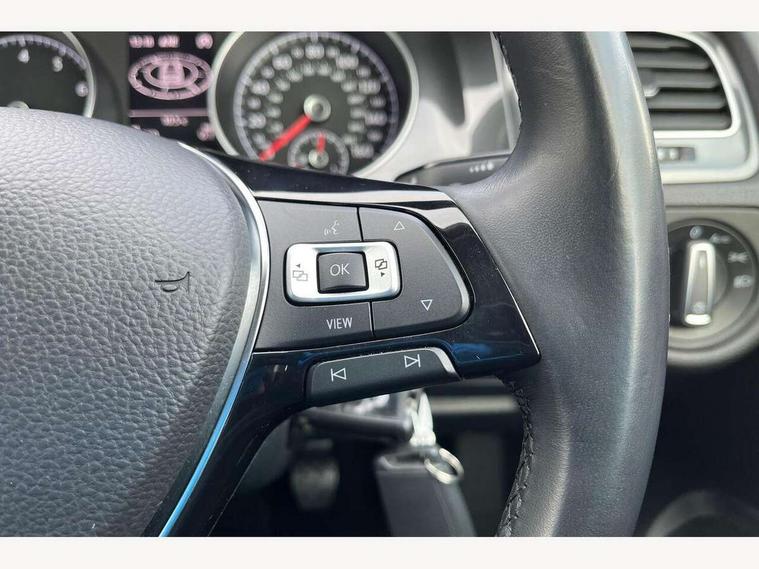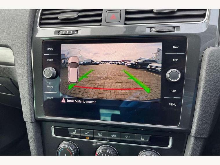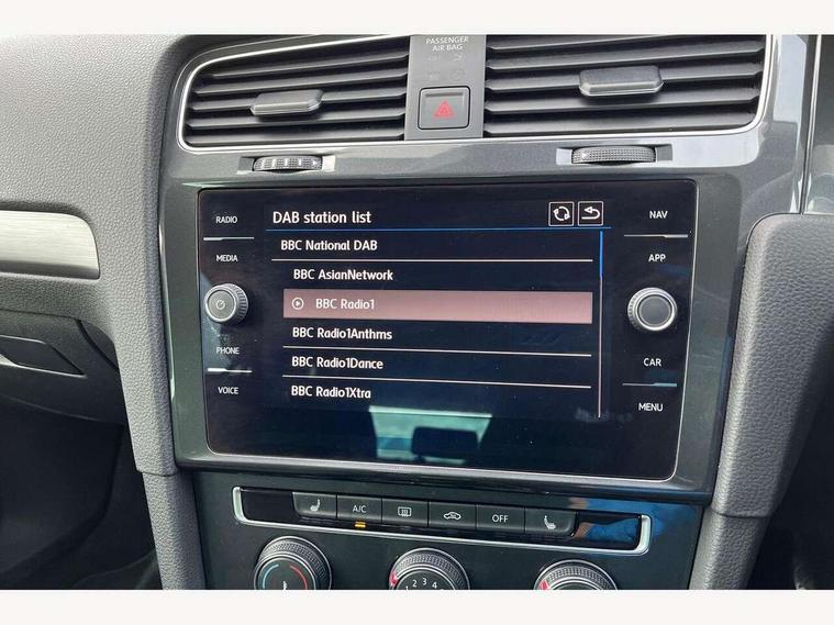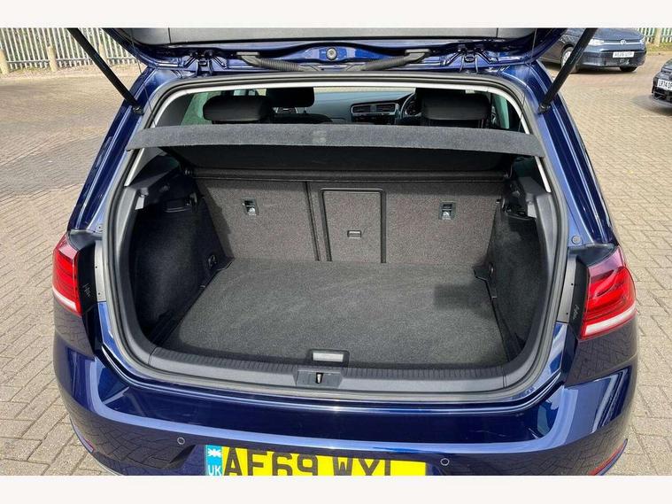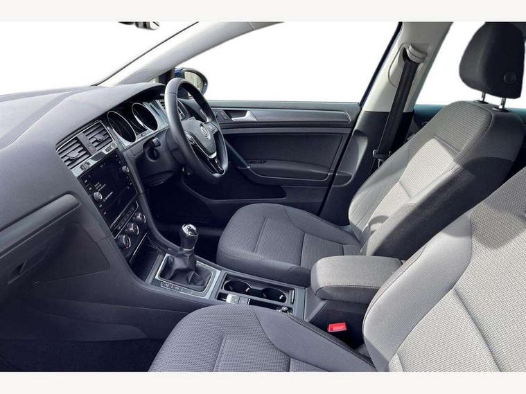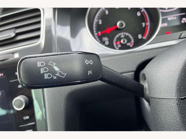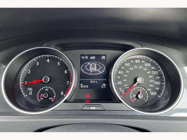 'Lights On' Reminder warning buzzer, ACC - Adaptive cruise control with front assist, forward collision warning, distance monitoring, city emergency brake and speed limiter, Bluetooth telephone and audio connection for compatible devices, Brake pad wear indicator warning light, Driver alert system, Driving Mode Selection with four preset modes - Eco, normal, sport or individual modes, Instrument cluster in white, Multifunction computer with visual gear change recommendation for fuel consumption, Power assisted speed sensitive electro-mechanical steering, Push tank flap, Speed limit display, Speedo, rev counter, electronic odometer, trip, service interval display, exterior temperature and fuel gauge, Stop/start system, Think blue trainer driver tips and journey analysis, Warning buzzer and light for front seatbelts unfastened, We Connect Go Dongle, Battery regeneration during braking, Standard suspension, XDS electronic differential lock, Composition media system, DAB Digital radio receiver, Driver Personalisation profile selection, MP3/WMA compatability, Multi device interface (MDI) with USB connection, Personalisation 1.1 profile for media, Premium USB cable in choice of either Apple or Android smartphone compatibility, SMS Functionality, Title and cover art display, 4 X 20W output, USB connection and socket, USB and SD card connectivity, Aerodynamic black radiator grille with chrome trimmed insert, Auto dimming rear view mirror, Black rear diffuser, Body colour bumpers, Body colour door handles, Body colour door mirrors with integrated indicators, Dusk sensor + automatic driving lights, Electric front windows, Electric rear windows, Electrically adjustable and heated door mirrors, Fully galvanised body, Heated rear windscreen, Hidden exhaust pipe, High level 3rd brake light incorporating LED Technology, LED front fog lights with static cornering light function, Range adjustable headlights via infotainment system with LED daytime running lights, Rear fog lamp, Rear number plate lights incorporating LED technology, Rear tinted glass 65% light absorbing from B pillar backwards, Rear window aerial, Rear window wash/wipe with intermittent wipe, Reflectors in all doors, Remote electrically foldable door mirrors, door mirror puddle lights and reverse activated kerb-view adjustment on passengers door mirror, Tailgate with integrated rear roof spoiler, Windscreen wipers/ intermittent wipe + 4 position delay, 12V socket in luggage compartment, 3 rear headrests, 4 load lashing points in luggage compartment, 60/40 split folding rear seat backrest, Auto fold down lever in rear seat backrest, Bag hook in luggage compartment x 2, Cooled glovebox, Cover for storage compartment in centre, Cupholder cover, Dust/pollen filter, Front and rear reading lights X 2, Front centre armrest with storage compartment and two rear air vents, Front seat back storage pockets, Grab handles front x 2, rear x 2 with integrated coat hooks, Height and reach adjustable steering wheel, Illuminated vanity mirrors, Instrument lighting white adjustable panel illumination, Interior light delay, Isofix preparation for 2 rear child seats, Load through provision with rear centre armrest and cupholders x2, Luggage compartment lighting, Overhead storage box, Passenger underseat drawer, Pearl grey headlining, Storage box in luggage compartment, Storage compartment in roof console with cover, Storage compartments in centre console, Storage compartments in front doors, Storage compartments in rear doors, Stowable luggage compartment cover, Sun visors, Variable boot floor, height adjustable and removable, Convenience Pack - Golf, Light and Sight pack - Golf, Mirror pack - Golf, 3 rear three point seatbelts, Airbags - Driver's and front passenger's, curtain airbag, Driver's knee, front side impact and passenger's airbag deactivation switch, Anti-lock Braking System (ABS) with Hydraulic Brake Assist (HBA), Automatic post collision braking system, Child locks on rear doors, Driver/Passenger optimised head restraints, Electronic parking brake with auto hold, Electronic stability control (ESC) including Electronic differential lock (EDL) and ASR (Traction control) with deactivation via infotainment system, Front ventilated disc brakes and rear disc brakes, Pre crash preventive occupant protection, Three point height adjustable front seatbelts with tensioners, Tyre pressure loss indicator, Alarm with interior protection and deactivation via infotainment system, Electronic engine immobiliser, Brushed dark silver decorative inserts in dash and door panels, Chrome plated air vent surround, Chrome-plated light switch surround, Polar night black decorative inserts in centre console, Steel space saver spare wheel,