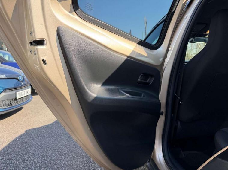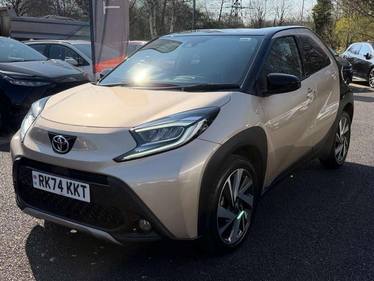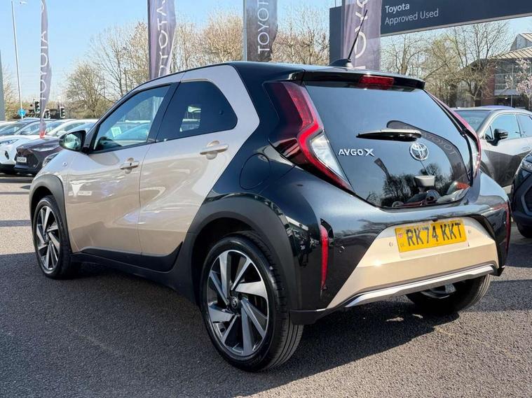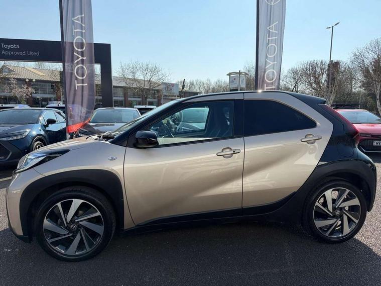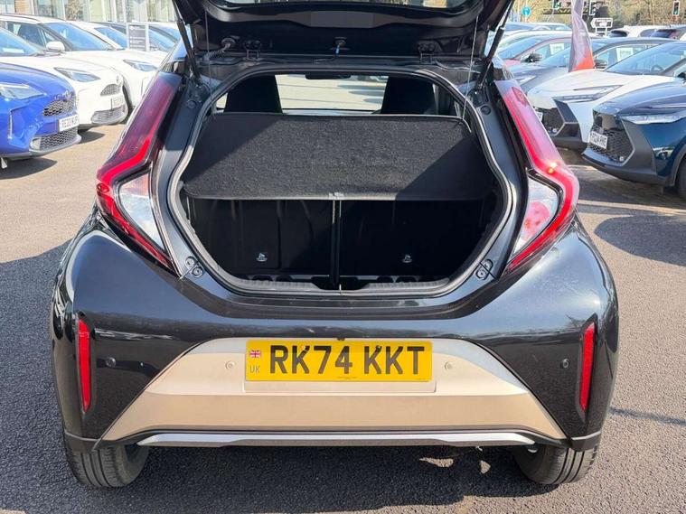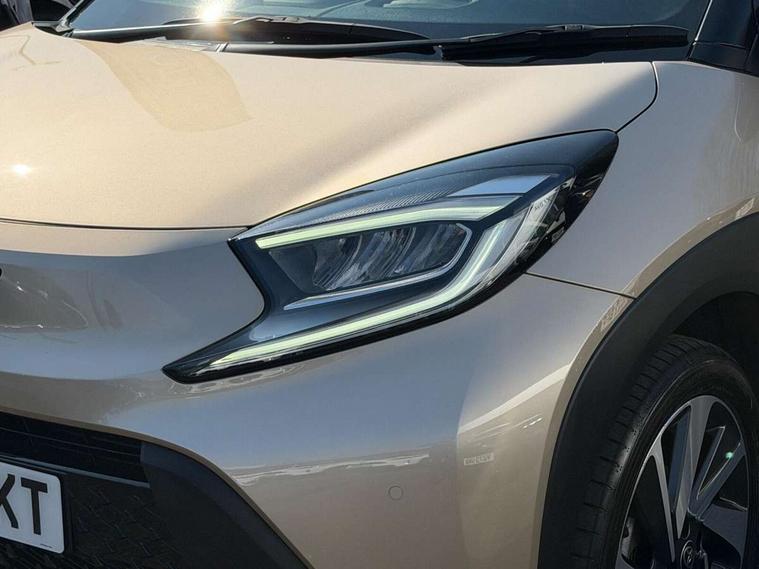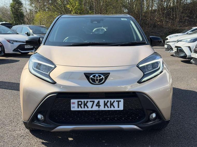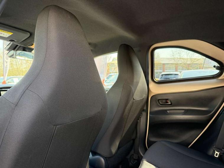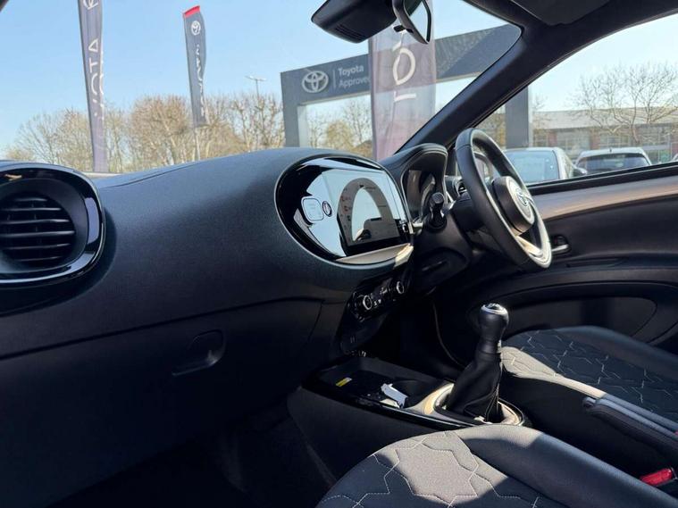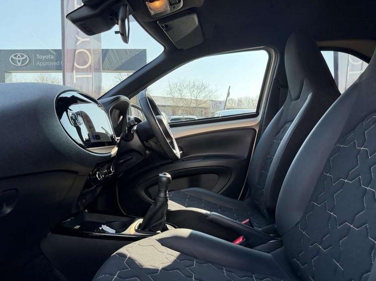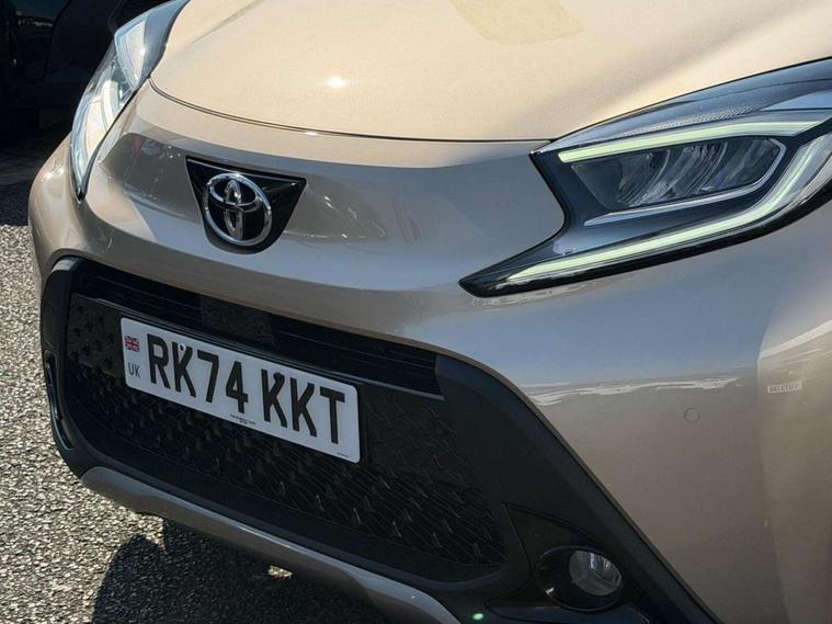 4.2" TFT colour screen, Adjustable speed limiter, Analogue speedometer, Bluetooth connectivity, Digital tachograph, Driver attention alert system, eCall emergency call system, Electric power steering, Front and rear parking sensors with auto brake, Intersection turn assist, Key reminder warning, Noise reduction kit, Pre collision system with emergency steering assist, Remote boot door release on key, Reversing camera with static guide lines, Smart entry and push button start, Smart phone integration with Apple car play/Android Auto, Speed limit display, Start and stop, Wireless charger, Vehicle Stability Control (VSC), 10.5" HD multimedia display touch screen with Toyota smart connect, 4 speakers, DAB digital audio broadcast, USB connector, Auto headlights, Auto wipers, Automatic headlights cut-off, Automatic high beam On/Off switch, Bicycle towing hook, Black contrast roof, Black fog light surrounds, Black side protection mouldings, Black wheel arch mouldings, Body colour door handles, Body coloured front bumper, Boot door scuff plate, Eclipse black rear bumper, Electric heated door mirrors, Follow me home headlights, Front and rear underruns in silver, Front fog lights, Front power windows, Gloss black door mirrors, Gloss black upper front grille, Headlight cut-off reminder, LED daytime running lights guide, LED front light guide, LED High mounted stop lamp, LED projector headlights, Manual day/night rear view mirror, Manual headlight levelling, Pagoda roof, Power adjustable door mirrors, Power back door, Privacy glass, Rain sensor, Rear combination lights LED bulb type, Rear side wing doors, Rear windscreen defogger, Rear windscreen wiper, Remote hazard lights system, Short antenna, Variable intermittent windscreen wipers, 12v power outlet - front, 2 seat bench in 2nd row, 3 spoke leather steering wheel, 50/50 split folding rear seat, Adhesive roof headlining, Adjustable speed limiter switch on steering wheel, Audio and telephone switches on steering wheel, Auto air conditioning, Black roof lining, Body colour satin anodised insert on steering wheel, Boot light, Centre room light, Chrome interior door handles, Chrome surround on air conditioning buttons, Clean air filter, Console box storage, Floor mats, Front and rear cup holders, Front head rest deco art, Front head restraints, Height adjustable driver seat, Intelligent adaptive cruise control switch on steering wheel, ISOFIX child restraint system on rear seats, Lane departure alert switch on steering wheel, Leather gearshift knob, Light blue ambient lighting in centre console, Manual tilt steering wheel, Manually reclining and sliding driver seat, Manually reclining and sliding front passenger seat, Multimedia switches on steering wheel, Partial synthetic leather upholstery, Pollen filter, Rear door pockets, Rear head restraints, Satin silver insert on gear shift knob, Single compartment glovebox with lights, Single front passenger seat, Soft tonneau cover, Sun visors with mirror on driver and passenger side, Voice recognition switch on steering wheel, Toyota safety sense pack - Aygo X, Anti lock braking system + Electronic brake force distribution, Child safety door lock, Emergency brake light signal (EBS), Hill start assist control (HAC), Passenger airbag on/off switch, Seat belt reminder for front and rear seats, Supplement restraints system (SRS) - 6 airbags, Traction control, Tyre pressure warning system, Immobiliser, Remote power door locks, Black wheel centre caps, Tyre repair kit,
