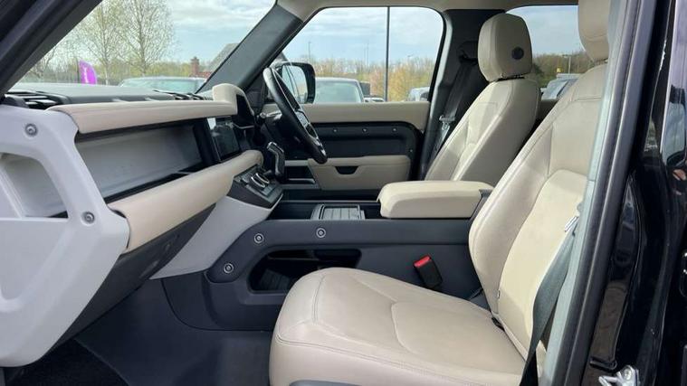 11.4" touchscreen, 360 degree parking aid, 3D Surround Camera with 360 View, 180 Rear View, Front Traffic Detection, Forward Vehicle Guidance, Tow Hitch Assist and clear sight Ground View, Android Auto, Apple CarPlay, Assisted tailgate with soft close, Blind spot assist, Bluetooth system, Brake pad wear indicator, Clear exit monitor, Connected navigation pro, Cruise control + speed limiter, Driver condition monitor, Electric power assisted steering (EPAS), Interactive driver display, Lane keep assist, Push button start, Rear traffic monitor, Traffic sign recognition with adaptive speed limiter, Trip computer, Wade Sensing, Wireless device charging with phone signal booster, Adaptive dynamics, DAB Radio (Digital Audio Broadcasting), Meridian 400w sound audio system with 11 speakers and subwoofer, Pivi pro connected, Automatic headlight levelling, Automatic headlights, Body coloured roof, Centre high mounted stop light, ClearSight interior rear view mirror, Electric heated/power fold door mirrors with approach lights and auto dimming driver side, Electric windows with one touch open/close and anti-trap, Follow me home lighting, Front fog lights, Heated rear window with timer, Heated windscreen, Illuminated metal treadplates with brand name script, LED tail lights, Privacy glass, Puddle lights, Rain sensing windscreen wipers, Rear fog lights, Rear side wing doors, Rear wiper, Signature graphic (with interior storage), Sliding panoramic roof, Trailer stability assist, 12 way heated and cooled electric memory front seats with 2 way manual headrests, 12V power socket in loadspace, 3 seat bench in 2nd row, 40:20:40 folding rear seats with centre armrest, Durable rubber cabin flooring, Durable rubber loadspace flooring, Electric cabin pre conditioning, Electric reach + rake adjustable steering column, Footwell lights, Front centre console refrigerator compartment, Front passenger isofix child seat attachment, Grained Leather upholstery, Heated steering wheel, Leather gearshift, Light oyster morzine headlining, Loadspace cover, Loadspace Hook, Multifunction steering wheel, Overhead stowage for sunglasses, Premium cabin lighting, Rear headrests, Rear ISOFIX, Rear reading lights, Single front passenger seat, Standard leather steering wheel, Storage glovebox, Sunvisors with illuminated vanity mirrors, Twin front cupholders with cover, Non-smoker package, Online pack with data plan - Defender, XS Edition exterior pack - Defender, 5 x 3 point seatbelts, ABS, Brake hold function, Cornering brake control (CBC), Cross car beam in Light Grey Powder Coat, Customer configurable autolock, Driver and passenger airbags, DSC - Dynamic Stability Control, EBD - Electronic brakeforce distribution, Electric parking brake (EPB), Emergency braking, ESP + traction control, Front airbags with passenger seat occupant detector, HDC - Hill descent control, Hill launch assist, Low traction launch, Power operated child locks, Remote for (e-Call, Optimised assistance call, InControl app, Climate, beep and flash and door), RSC - Roll stability control, Seat belt reminder, TPMS (Tyre pressure monitoring system), Alarm, Immobiliser, Intrusion sensor, Keyless entry, Locking wheel nuts,