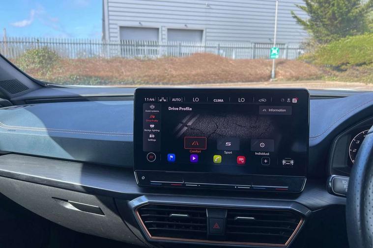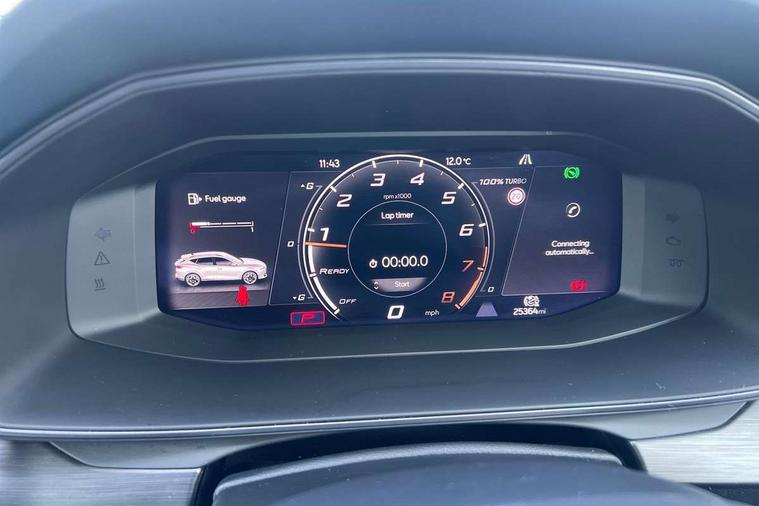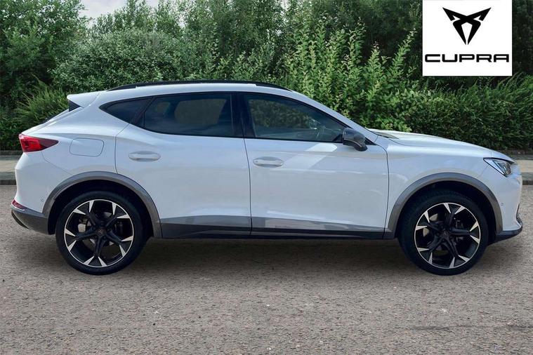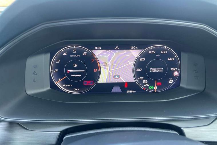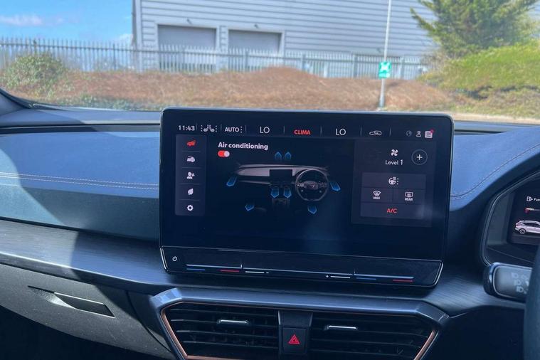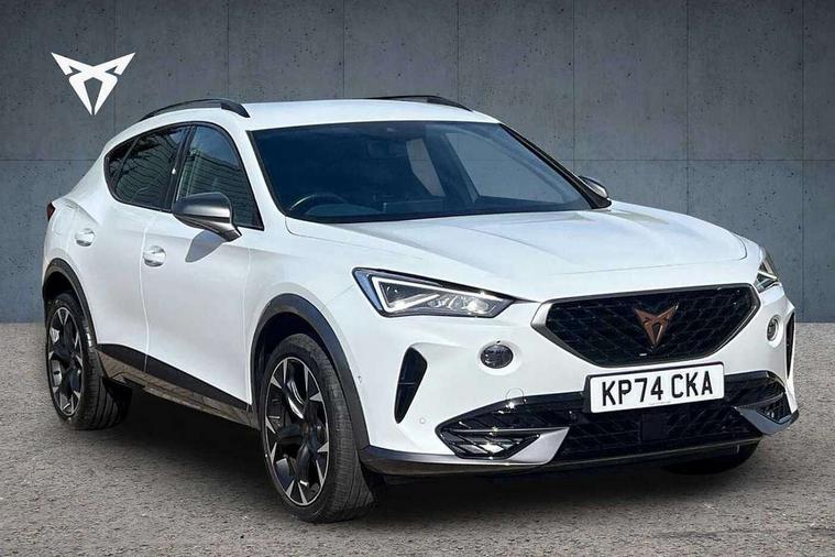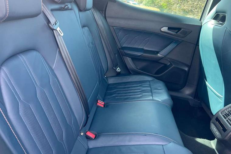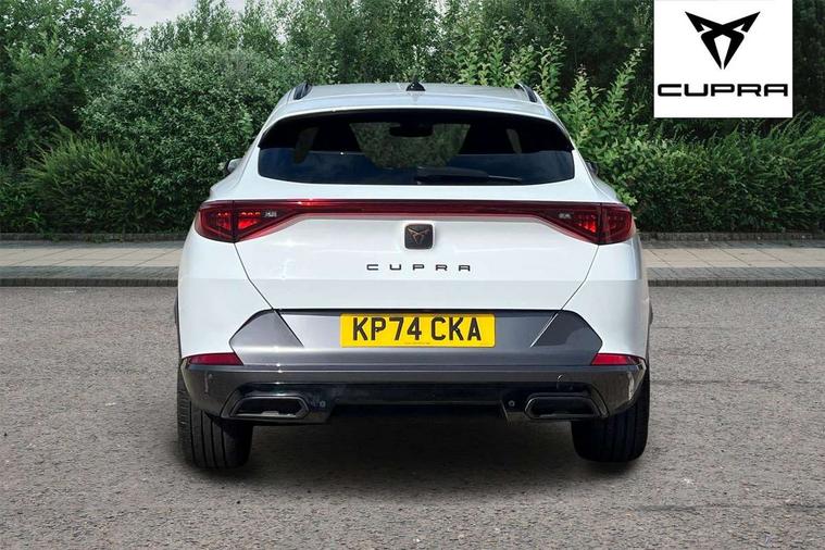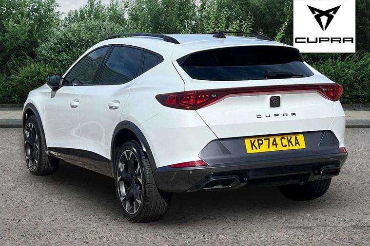 Digital cockpit and configurable dashboard, Driver alert system, Driving profile selection, Forward collision warning with automatic braking, Lane assist, Navigation system with 12'' Touchscreen Display, Park assist (inc front/rear parking sensors), PAS, Predictive adaptive cruise control with speed limiter, Rear view camera, RPM, trip computer, outside temp gauge, instrument light brightness, low fuel warning light, lights on reminder, gearshift indicator, Service interval indicator, Start/stop system with regenerative braking, Voice control system, Wired Android Auto, Wireless apple carplay, Wireless phone charger, Electronic locking differential and dynamic traction support, Standard suspension, 2 front and 2 rear USB type C sockets, Auxiliary input socket, DAB radio, Auto dimming rear view mirror, Body colour door handles, Body coloured bumpers, Dark grey wing mirror, Daytime running light with automatic headlight control and coming home feature, Dynamic headlight range control, Electric front/rear windows, Electrically adjustable heated and folding door mirrors with memory function, Front fog lamps with cornering function, Gloss black roof rails and window surrounds, LED Headlights, LED Taillights with dynamic indicator, Rain sensing wipers, Rear diffuser with black simulated exhaust pipes, Rear side wing doors, Rear wash/wipe, Third brake light, Tinted rear windows, Welcome lights, 12v power supply in centre console, 12V socket, 12v socket in loadspace, 2 front and 2 rear reading lights, 230V socket, 3 seat bench in 2nd row, 60/40 split rear bench seat with armrest and mechanical seat release, Black headlining, Dust/pollen filter, Front and rear head restraints, Front centre armrest, Height/reach adjust steering wheel, Illuminated interior front door sills, Illuminated sunvisor with mirror, Isofix, Leather multi function heated steering wheel with gear shift paddles, Luggage tie-down hooks, Single front passenger seat, Three zone climate control with control panel in rear, Variable luggage/load compartment floor, Wraparound lighting, Genuine Nappa leather Pack - Cupra, 3 point seatbelts on all rear seats, ABS, Brake control system - ESC and brake booster, Child proof door locks, Driver and front passenger airbags with front passenger airbag de-activation, Electronic parking brake, Front and rear disc brakes, Front side curtain airbags, Hill hold control, Public e-call, Seat belt reminder for front and rear seats, Tyre pressure monitoring system, Anti theft alarm system, Keyless entry and start system (KESSY), Locking wheel bolts, Copper and aluminium interior detailing, 19" 'Exclusive' machined sport matte black and silver alloy wheels,