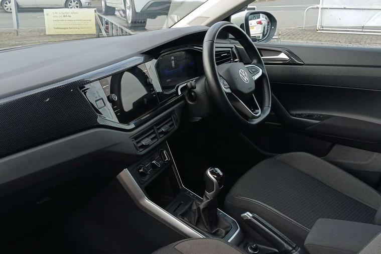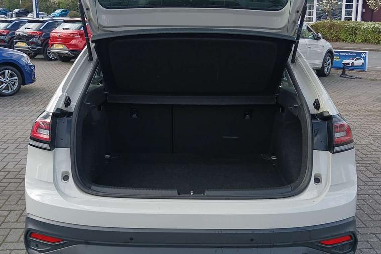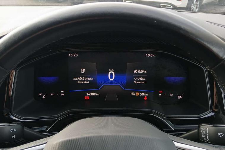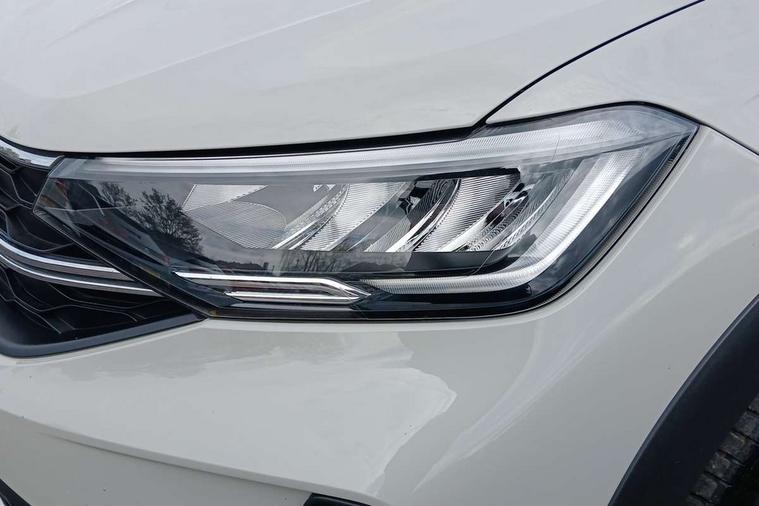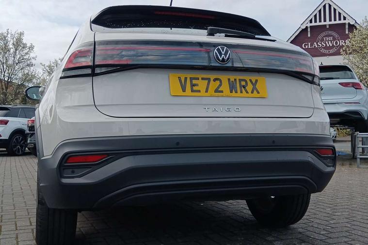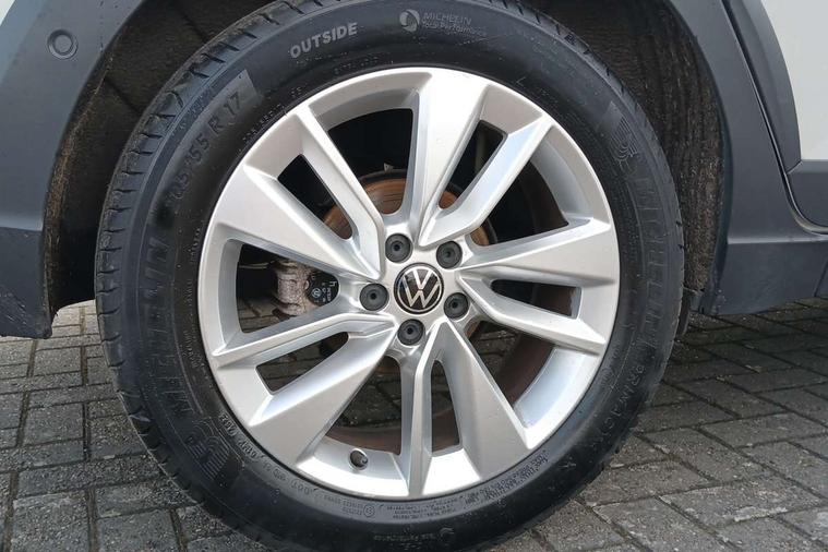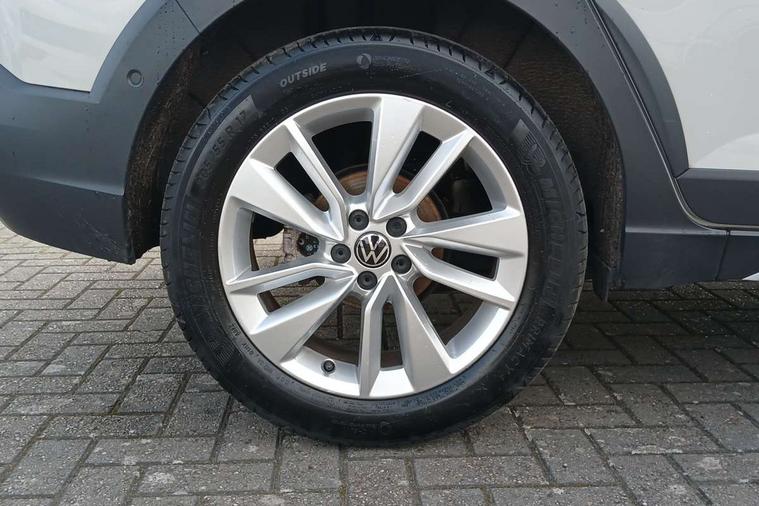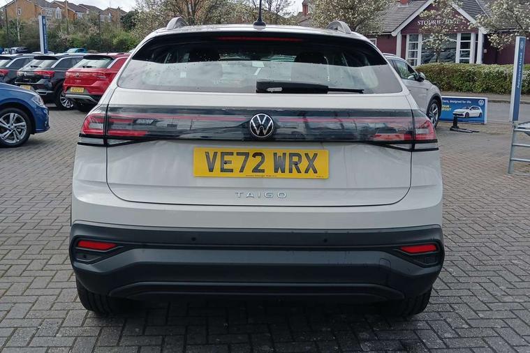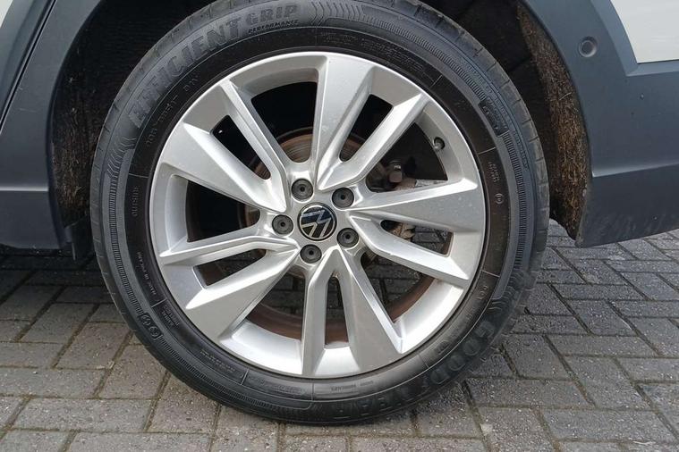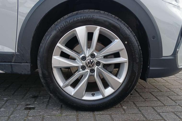 Driver alert system, e-Call (emergency call), Power Steering, Travel assist including emergency assist, Washer fluid level indicator, Wireless Charging including Bluetooth, Start-stop system with battery regeneration (recuperation - energy recovery during braking), WeConnect plus, Ambient lighting with logo projection, Aspherical driver's exterior mirror, Auto headlights, Body coloured bumpers, Body coloured exterior mirror housings and door handles, Electric windows, External USB type C socket and charging sockets, Front fog lamps with cornering function, Headlight range control, Heat insulating glass windscreen, LED headlamps, LED rear combination lamp, LED third brake light, Left convex exterior mirror, Power folding adjustable/heated exterior mirrors and front passenger exterior mirror lowering function, Rear fog light on one side, reversing light on both sides, Rear side wing doors, Rear wash/wipe with intermittent wipe setting, 'Slash/ Austin' Cloth upholstery, 12V socket in centre console, 2 front reading lights, 3 rear head restraints, 3 seat bench in 2nd row, Black carpets, Child seat anchor for child seat system i-Size, 2x top tether and child seat anchor in front on front passenger side, Door and side trim panels in titan black, Driver and front passenger seat height adjustment, Front centre armrest, Handbrake lever handle in leather, Height and reach adjustable steering wheel, Leather trimmed gear knob, Leather wrapped multifunction steering wheel, Luggage compartment floor, Luggage compartment light, Lumbar support for driver's and front passengers seat, Seat covers in titanium black, Single front passenger seat, Split folding backrest with centre armrest and unsplit rear seat bench, Storage compartment under front seats, Sun visors with illuminated vanity mirrors, Chrome Package - Taigo, Drivers assistance pack - Taigo, Light and Sight pack including High beam assist - Taigo, 2 x 3-point seatbelts/outer rear seats with ECE label, 3-point seat belts in front with pretensioner and height adjustment, 3-point seatbelt for centre rear seat, Driver and front passenger airbags with front passenger airbag de-activation, front side and curtain airbags, Driver and front passenger safety-optimised head restraints, Electronic stability control, Extended and predictive pedestrian/ cyclist protection, Front and rear disc brakes, Front curtain and side airbags with center airbag, Hill start assist, Manual rear child locks, Single tone horn, Tyre pressure loss indicator, Anti-theft alarm system with interior monitoring, backup horn, and towing protection, Anti-theft wheel bolts, Lava stone black gloss/matt decorative inserts in dash and front door panels, Low rolling resistance tyres,