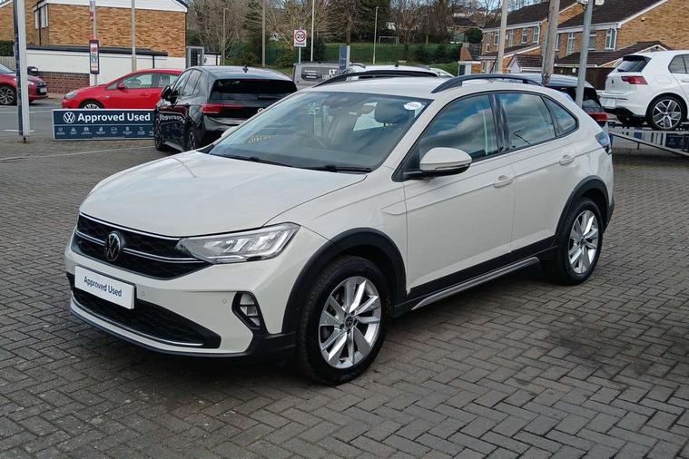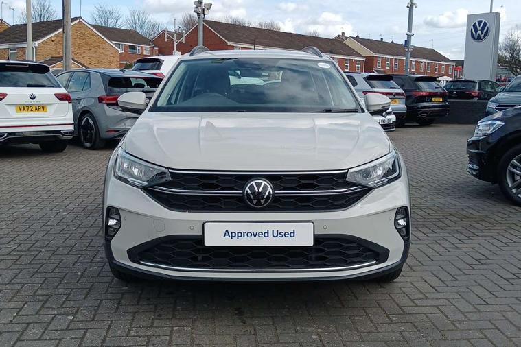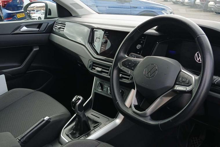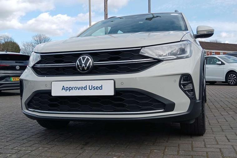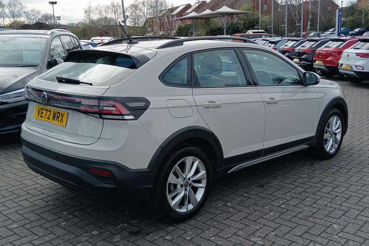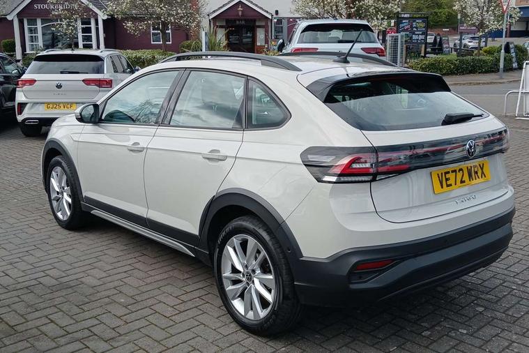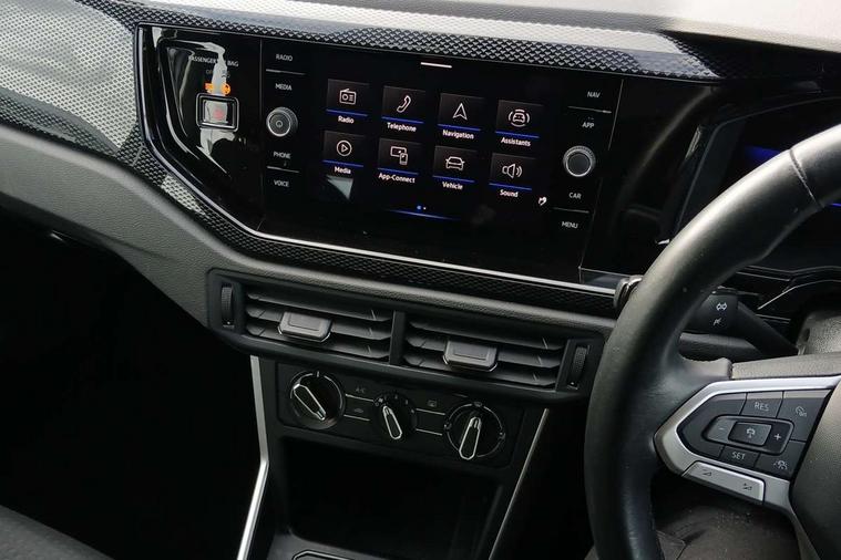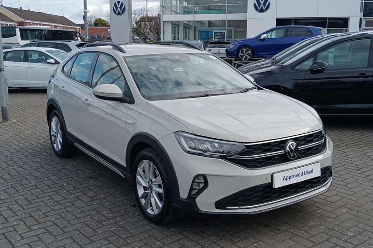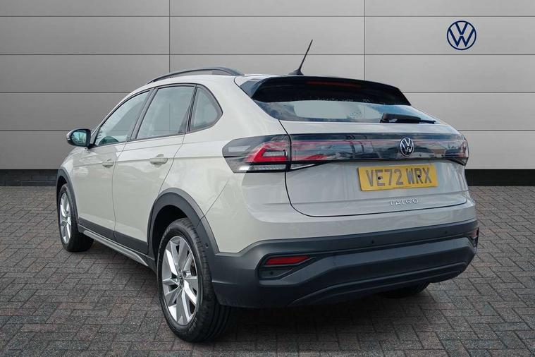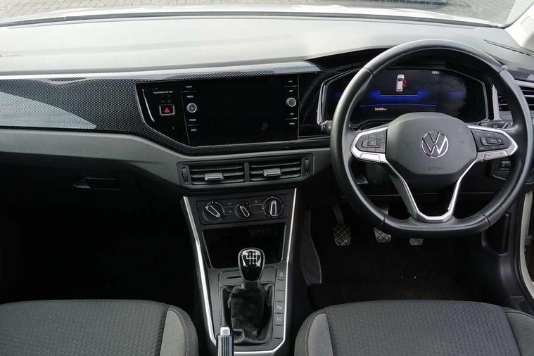 Driver alert system, e-Call (emergency call), Power Steering, Travel assist including emergency assist, Washer fluid level indicator, Wireless Charging including Bluetooth, Start-stop system with battery regeneration (recuperation - energy recovery during braking), WeConnect plus, Ambient lighting with logo projection, Aspherical driver's exterior mirror, Auto headlights, Body coloured bumpers, Body coloured exterior mirror housings and door handles, Electric windows, External USB type C socket and charging sockets, Front fog lamps with cornering function, Headlight range control, Heat insulating glass windscreen, LED headlamps, LED rear combination lamp, LED third brake light, Left convex exterior mirror, Power folding adjustable/heated exterior mirrors and front passenger exterior mirror lowering function, Rear fog light on one side, reversing light on both sides, Rear side wing doors, Rear wash/wipe with intermittent wipe setting, 'Slash/ Austin' Cloth upholstery, 12V socket in centre console, 2 front reading lights, 3 rear head restraints, 3 seat bench in 2nd row, Black carpets, Child seat anchor for child seat system i-Size, 2x top tether and child seat anchor in front on front passenger side, Door and side trim panels in titan black, Driver and front passenger seat height adjustment, Front centre armrest, Handbrake lever handle in leather, Height and reach adjustable steering wheel, Leather trimmed gear knob, Leather wrapped multifunction steering wheel, Luggage compartment floor, Luggage compartment light, Lumbar support for driver's and front passengers seat, Seat covers in titanium black, Single front passenger seat, Split folding backrest with centre armrest and unsplit rear seat bench, Storage compartment under front seats, Sun visors with illuminated vanity mirrors, Chrome Package - Taigo, Drivers assistance pack - Taigo, Light and Sight pack including High beam assist - Taigo, 2 x 3-point seatbelts/outer rear seats with ECE label, 3-point seat belts in front with pretensioner and height adjustment, 3-point seatbelt for centre rear seat, Driver and front passenger airbags with front passenger airbag de-activation, front side and curtain airbags, Driver and front passenger safety-optimised head restraints, Electronic stability control, Extended and predictive pedestrian/ cyclist protection, Front and rear disc brakes, Front curtain and side airbags with center airbag, Hill start assist, Manual rear child locks, Single tone horn, Tyre pressure loss indicator, Anti-theft alarm system with interior monitoring, backup horn, and towing protection, Anti-theft wheel bolts, Lava stone black gloss/matt decorative inserts in dash and front door panels, Low rolling resistance tyres,
