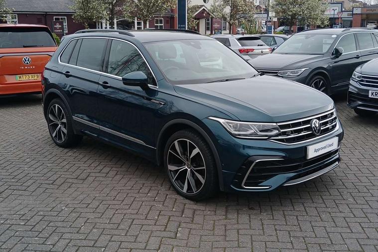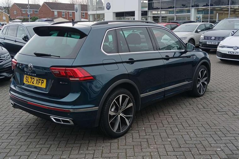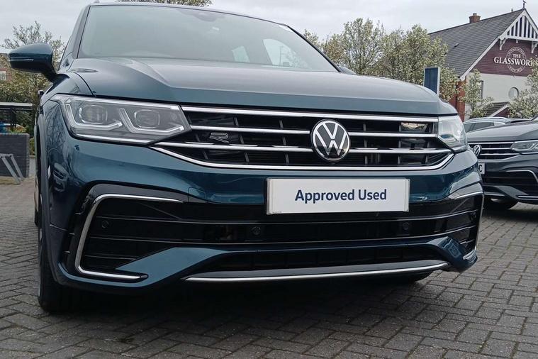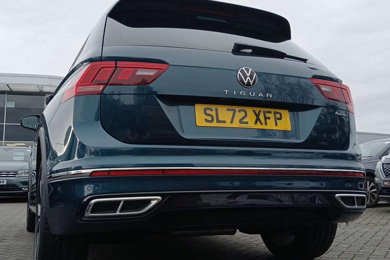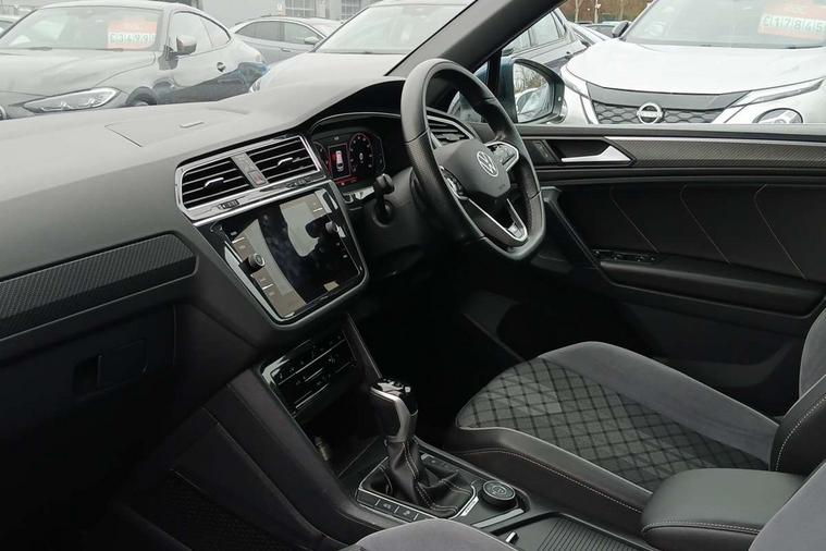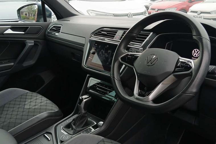 Adaptive cruise control ACC stop and go including speed limiter, App-Connect incl. App-Connect Wireless for Apple CarPlay and Android Auto, Bluetooth phone integration system, Distance control assist, Driver alert system, Driver profile selection, Dynamic road sign display, eCall emergency call system, Electromechanical speed sensitive power steering, Engine start/stop button, Lane keeping system Lane Assist, Lights on warning, Multifunction front facing camera, Outside temperature display, Premium multifunction display with multi colour display, Remote control boot opening, Rev counter, Revision / skills operating concept travel assistant, Service interval indicator, Speed limit display, Start/stop system with regenerative braking, Trip computer, Warning sound and light for doors and tailgate open, All wheel drive - 4Motion, Battery regeneration during braking, Diesel particulate filter, Misfuel prevention device for diesel engine, Selective Catalytic Reduction, XDS electronic differential lock for improved traction and handling, 4 X 20 watt output, 8 Speakers, Diversity antenna for FM reception, Radio, SD card slot, Simultaneous pairing of 2 compatible mobile devices, SMS functionality - read, compose and send SMS messages using touch-screen display, Title and cover art display, USB C ports, Auto dimming interior rear view mirror, Automatic headlight control system, Body colour door handles, Chrome moldings on the side windows, Coming/leaving home lighting function, Dynamic headlight range control, Front and rear electric windows, Heated rear window, High level 3rd brake light, Laminated safety glass windshield, heat and sound insulating, LED headlamps with LED separate daytime running light and dynamic cornering light, LED rear combination lamps, LED rear number plate lights, License plate carrier in front and rear, Poor weather light and cornering light, R Line body kit, R Line side sills, Rain sensor windscreen wipers, Rear exhaust tailpipe, Rear fog lamp, Rear side wing doors, Rear spoiler in R style, Rear windscreen washer and wiper with interval delay, Side and rear windows in heat insulating glass, Trailer Stability Programme, Unique R Line badging, Windscreen wipers/ intermittent wipe + 4 position delay, 12V outlet in center console rear and in luggage compartment, 12V outlet in front and tray, 2 cup holders in front, 2 LED front reading lights, 2 LED rear reading lights, 3 bench rear seats in 2nd row, 3 rear headrests, 4 load lashing points, 40:20:40 split folding rear seats, Air Care Climatronic 3 zone automatic climate control with enhanced air filter and controls in the rear, Backrest release for left front seat, Black headlining, Brushed stainless steel pedals and footrest, Carpet mats in front and rear with decorative stitching in Gray, Climate control unit rear with touch function, Door and side trim panel in foam film, insert in leatherette, Front centre armrest, Front footwell illumination, Front seats head restraints (x-adjustment), Height adjustable front seats, Height/reach adjust steering wheel, Instrument lighting white adjustable panel illumination, Interior light with delay, Isofix Preparation 2 Rear child seats, Leather gear knob, Lockable cooled glovebox, Luggage compartment lighting, Luggage net, Rear bench seat asymetrically split folding, longitudinally movable and folding with load-through hatch and center armrest, Remote unlocking for rear seat backrest, Removable luggage cover, Removable rear headrests, Safety optimised front head restraints, Single front passenger seat, Sliding/reclining rear seats, Standard rear seat release, Storage compartment in driver's door, Storage compartment in passenger's door, Storage compartment in rear doors, Storage compartments in luggage area left and right, Storage tray on dashboard, Sun visors with illuminated vanity mirrors, Top front comfort seats, Variable boot floor, height adjustable and removable, Driver assistance pack plus - Tiguan DSG, 3 point seat belt for centre rear seats, 3 point seat belts with seat belt pretensioners for the outer rear seats, Active bonnet, Curtain airbags for front and rear passengers, Driver/Front Passenger airbags, Drivers knee airbag, Electronic parking brake with auto hold, Electronic Stability Control with driver steering recommendation, ABS, ASR, EDL, EDTC and trailer stabilization, Front assist with autonomous emergency braking (for Adaptive Cruise Control ACC up to 130 mph), Front disc brakes, Front passenger airbag deactivation, Front side airbags, Height adjustable front 3 point seatbelts + pretensioners, Hill hold control, Manual child proof rear door locks, Pedestrian monitoring system, Power assisted brakes, Proactive passenger protection system in combination with front assist, Rear disc brakes, Rigid safety cell with front and rear crumple zones, Two tone horn, Warning sound and light for front seat belts if unfastened, Anti theft alarm system with interior monitoring, backup horn and towing protection, Anti theft wheel bolts, Electronic engine immobiliser, Tool kit,
