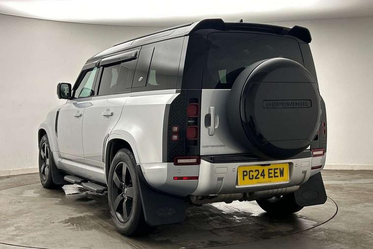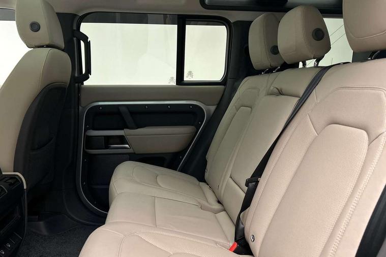 360 degree parking aid, 3D Surround Camera with 360 View, 180 Rear View, Front Traffic Detection, Forward Vehicle Guidance, Tow Hitch Assist and clear sight Ground View, Android Auto, Apple CarPlay, Assisted tailgate with soft close, Blind spot assist, Bluetooth system, Brake pad wear indicator, Clear exit monitor, Connected navigation pro, Cruise control + speed limiter, Driver condition monitor, Electric power assisted steering (EPAS), Interactive driver display, Lane keep assist, Push button start, Rear traffic monitor, Traffic sign recognition with adaptive speed limiter, Trip computer, Wade Sensing, 8 speed automatic transmission, Adaptive dynamics, All wheel drive system, Electronic air suspension, Twin speed transfer box, DAB Radio (Digital Audio Broadcasting), Pivi pro connected, Automatic headlight levelling, Automatic headlights, Body coloured roof, Centre high mounted stop light, ClearSight interior rear view mirror, Electric heated/power fold door mirrors with approach lights and auto dimming driver side, Electric windows with one touch open/close and anti-trap, Follow me home lighting, Front fog lights, Heated rear window with timer, Heated windscreen, Illuminated metal treadplates with brand name script, LED tail lights, Matrix LED headlights with signature DRL, Privacy glass, Puddle lights, Rain sensing windscreen wipers, Rear fog lights, Rear side wing doors, Rear wiper, Side hinged tailgate, Signature graphic (with interior storage), Sliding panoramic roof, Trailer stability assist, 12 way heated and cooled electric memory front seats with 2 way manual headrests, 12V power socket in loadspace, 3 seat bench in 2nd row, 40:20:40 folding rear seats with centre armrest, Alpine lights, Configurable cabin lighting, Durable rubber cabin flooring, Durable rubber loadspace flooring, Electric cabin pre conditioning, Electric reach + rake adjustable steering column, Footwell lights, Front centre console refrigerator compartment, Front passenger isofix child seat attachment, Grained Leather upholstery, Heated steering wheel, Leather gearshift, Light oyster morzine headlining, Loadspace cover, Loadspace Hook, Multifunction steering wheel, Overhead stowage for sunglasses, Premium cabin lighting, Rear headrests, Rear ISOFIX, Rear reading lights, Single front passenger seat, Standard interior, Standard leather steering wheel, Standard seat configuration, Storage glovebox, Sunvisors with illuminated vanity mirrors, Online pack with data plan - Defender, XS Edition exterior pack - Defender, 5 x 3 point seatbelts, ABS, Brake hold function, Cornering brake control (CBC), Cross car beam in light grey powder coat brushed finish, Customer configurable autolock, DSC - Dynamic Stability Control, EBD - Electronic brakeforce distribution, Electric parking brake (EPB), Emergency brake assist, Emergency braking, ESP + traction control, Front airbags with passenger seat occupant detector, HDC - Hill descent control, Hill launch assist, Low traction launch, Power operated child locks, Remote for (e-Call, Optimised assistance call, InControl app, Climate, beep and flash and door), RSC - Roll stability control, Seat belt reminder, TPMS (Tyre pressure monitoring system), Alarm, Immobiliser, Intrusion sensor, Keyless entry, Locking wheel nuts,