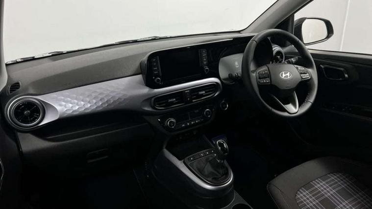 8" Touchscreen satellite navigation including mapcare and LIVE services, Apple car play/Android Auto, Bluelink mobile remote connectivity, Bluetooth connectivity with voice recognition, Cruise control, Driver attention alert system, eCall emergency call system, Forward Collision-Avoidance Assist (FCA) - Pedestrian/Cyclist, Full-width 4.2" LCD instrument cluster, Intelligent speed limit assist, Lane departure warning system with lane keep assist - LKAS, Lane follow assist, PAS, Rear parking sensors, Rear view camera with guidelines, Roadside assistance, Start/Stop function, Tailgate, Trip computer, 2 front/2 rear speakers, Front and rear USB-C ports, Front USB connection, Leading vehicle alert (LVA), Steering wheel audio, phone and cruise controls, 1 speed non intermittent rear windscreen wiper, Black finish on B pillars, Body colour door handles, Body coloured bumpers, Body coloured door mirrors, Electric front windows, Electric rear windows, Electrically adjustable and heated door mirrors, Flat metal emblem, Front grille in matte black, Front intermittent wipers, Halogen headlights, Headlights inner with Black Blade design, Heated rear window, High beam assist, Indicator light on door mirrors, LED daytime running lights, Rear roof spoiler with integrated LED brake light, Rear side wing doors, 12v power outlet - front, 3 seat bench in 2nd row, 60/40 split folding flat to floor rear seats, Auto light control, Bottle holders in front/rear doors + front centre console, Cabin and luggage compartment interior lighting, Cloth upholstery, Driver + passenger vanity mirrors, Driver's seat height adjustment, Driver/passenger sunvisors with ticket holders, Floor mats, Front door pockets, Front Head Restraints - Vertical and Horizontal Adjustment, Glove compartment, Height adjustable steering column, Isofix child seat preparation, Leather wrapped steering wheel and gear knob, Manual air conditioning, Rear door pockets, Single front passenger seat, Vertical adjustment rear head restraints, 3x3 point rear seatbelts, Airbags - front, front side and curtain airbags, Anti-lock brake system (ABS), Autonomous emergency braking (AEB) with forward collision warning system, Brake assist function, Childproof rear door locks, Electronic stability control, Front and rear seatbelt reminder, Front seatbelt pretensioners, Hill start assist control (HAC), Passenger airbag deactivate switch, Traction control, Tyre pressure monitoring system, Immobiliser, Perimeter alarm, Rear occupant alert, Remote central locking, Second remote key, Speed sensitive auto door locking, 15" Alloy wheels, Temporary mobility kit (TMK),