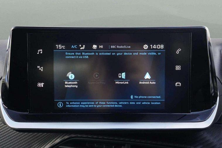 Bluetooth telephone facility, Driver attention warning, Emergency call service, Exterior temperature indicator with ice warning, Lane keep assist, Mirror screen with mirror link, apple carplay and android auto, Multi function trip computer, PEUGEOT i-Cockpit with 3.5" instrument panel display, PEUGEOT i-Cockpit with compact steering wheel, Programmable cruise control and speed limiter, Push button start, Rear parking sensors, Smart phone docking station, Speed limit recognition and recommendation, Start/stop system, 1x USB socket in front, 6 speakers radio with mp3 compatible, DAB Digital radio, Voice recognition for radio, navigation and telephony features, 2 X Rear number plate lights, Automatic hazard light activation upon heavy brake application, Automatic lights, Automatic windscreen wipers, Body coloured exterior door handles, Dark tinted rear side and tailgate windows, Diamond black rear spoiler (roof), Eco LED headlights, Electric front windows + one touch + anti-pinch, Electric rear windows with one touch/anti-pinch, Electrically adjustable, heated and power folding door mirrors, Electrochrome rear view mirror, Follow me home headlights, Gloss black rear cluster connecting strip, Headlights left on audible warning, LED daytime running lights with distinctive tooth design, LED third brake light, Model designation badges front and rear, Nera black door mirror shells, Radiator grille chrome chequered, Rear reversing lights, Rear side wing doors, Rear windscreen wiper triggered automatically in reverse gear, Roof mounted aerial, Roof spoiler, Single exhaust tailpipe, Tailgate with heated rear windscreen and wiper blade, Variable front intermittent wipers, 1/3 to 2/3 split folding rear seats, 12V socket, 3 seat bench in 2nd row, Automatic air conditioning, Driver and front passenger comfort seats, Driver and front passenger seat manual adjustment in longitudinal and back rest angle, Driver seat mechanical height adjustment, Electric power steering with reach and rake adjustable steering column, Front interior light with 2 reading spotlights, Gear shift indicator, Leather steering wheel, Low centre console, Map pockets on the backs of the front seats, Piano keys gloss black plated toggle switches to access main functions of the vehicle, Rear centre headrest, Roof lining - light grey, Seatbelt unfastened on the move audible and visual alert for front and rear seats, Single front passenger seat, Tri material cloth upholstery, 2x Isofix child seat fitting on outer rear seats, 3 rear 3 point seatbelts, ABS (Anti-lock Braking System) with EBD (Electronic Brakeforce Distribution) and EBA (Emergency Braking Assistance), Adaptive driver and front passenger airbags with passenger airbag deactivation function, Child locking functionality on rear doors, Driver/front passenger side airbags, ESP with Hill Assist, Front and rear curtain airbags, Front and rear disc brakes, Front optimised safety headrests and 3 x rear retractable headrests with height adjustable, Front three point retractable seatbelts with force limiters, Manual parking brake, Pedestrians active safety brake, Tyre pressure sensor, Acoustic vehicle alert system (AVAS), Automatic door locking when moving off, Deadlock, Electronic code immobiliser, Remote central locking, Thatcham cat. 1 alarm with anti lift sensor, Carbon effect Dashboard, front and rear door panel finish, 16" Soho diamond cut alloy wheels,