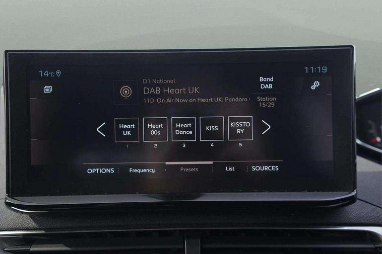 10" High Definition Capacitive Touchscreen, 3D connected navigation + voice control, Bluetooth telephone connection, Driving timer alert system, Extended traffic sign recognition, Exterior temperature gauge with frost alarm, Lane departure warning system, Mirror screen with Apple CarPlay and Android auto, Motorised Electric Tailgate (key plip and foot operated), Multi function trip computer, Peugeot i-cockpit with 12.3" headup digital instrumental panel, 8.0" capacitive touch screen and compact sports steering wheel, PEUGEOT SOS and assistance, Rear passenger USB charging sockets (x2) (type A), Speed limit recognition, Sports button, Dynamic stability control, Bi Tuner radio including DAB, Focal premium HiFi sound system, USB socket, Automatic activation of hazard warning lights, Black diamond roof and nera black door mirror shells, Black rubber side window trim, Body colour door handles, Body coloured rear spoiler, Body protectors in black, Chrome front wing trim, Chrome rear bumper scuff plate, Dark tinted rear side and tailgate windows, Door mirrors with blind spot detection indicator and auto dipping function in reverse gear, Electric folding door mirrors with exterior courtesy LED lighting, Electric front/rear windows with one touch/auto up/down, Electrically heated door mirrors, FOCAL tweeter speaker grilles in 'belem bronze metal effect finish, Fog Mode, Frameless electrochrome rear view mirror, Front windscreen wiper with magic wash cleaning system, Full LED headlights with static corner lighting and Daytime Running Light extension, Gloss black B and C pillar and aerodynamic deflector trim, Gloss black front bumper air scoops, Gloss black rear cluster connecting strip, GT emblem (front wings and tailgate), Headlights left on audible warning, Heated rear windscreen with integrated antenna, LED rear lights including reversing lights, scrolling indicators and PEUGEOT '3Claw Effect' light signature (with daylight function), LED rear number plate lighting, LED side indicator lights integrated into door mirrors, Rear windscreen wiper with auto activation when reversing, Twin exhaust effect trim, 2 cupholders in front centre console, 3 x 12V power sockets, 4 Grab handles retractable and damped, Aikinite stitching in armrest, gear lever and dashboard facia, Aluminium pedals, Automatic and dual zone diffusion air conditioning system, Blue ambient lighting for connecting zone, Blue ambient lighting to front door panels, central storage and cupholders, Brumeo fabric trimmed door armrests, Central front armrest with butterfly wing opening, Tramontane double stitching and illuminated storage compartment, Electric power steering with reach and rake adjustable steering column, Flocked front door pocket interior with blue ambient lighting, Flocked glovebox interior, Foldable front passenger seat, Footwell lighting, Front ambient lighting, Front interior light with reading spotlights (x2), row 2 interior light with reading spotlights (x2), Gear shift indicator, Illuminated glovebox, Illuminated vanity mirror, Isofix child seat fittings x 3 in the second row, LED interior lighting, Map pocket on front seat backs, Mistral floor mats with Aikinite contrast stitching, Mistral full grain perforated leather steering wheel with aikinite stitch detail and satin chrome 'GT' emblem, Rear ventilation system, Retractable parcel shelf, Roof lining and windscreen pillars in Mistral black, Satin chrome digital instrument panel and touchscreen trim, Satin chrome front door panel recess trim, Satin chrome interior door handles, Satin chrome scorpion's tail and toggle switch trim, Seatbelt not fastened audible and visual alert for front seats, Seatbelt unfastened on the move audible and visual alert for front and rear seats, Third row seats (can be stored under bootfloor or removed completely), Twin rear coat hooks, Children's pack - 5008, Drive Assist Plus Pack - 5008, Driver and passenger seat pack - 5008, Driver sport pack - 5008, Visibility pack - 5008, Visio Park 2 pack - 5008, ABS + EBD + EBA, Adaptive driver and front passenger airbags including passenger airbag deactivation function, Electronic parking brake, ESP and ASR traction control with deactivation switch, Five 3 point rear safety belts, Front and rear curtain airbags, Front optimised safety headrests and rear retractable headrests (x3), height adjustable, Front side airbags, Front three point retractable seatbelts height adjustable with pre tensioners and force limiters, Front ventilated disc brakes, Hill start assist, Rear disc brakes, Rear three-point retractable seatbelts (x3) with pre-tensioners and force limiters in the outer rear seats, Two tone horn, Automatic door locking when moving off, Child lock control of rear doors and windows, Electronic code immobiliser, Keyless start, Perimetric and volumetric alarm with lift and tilt sensor, Peugeot Open and Go System, Remote control central locking with two plip keys, Satin chrome dash trim, Puncture repair kit including compressor, sealant cartridge and towing eye,