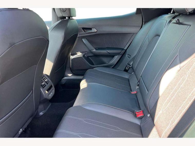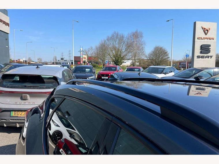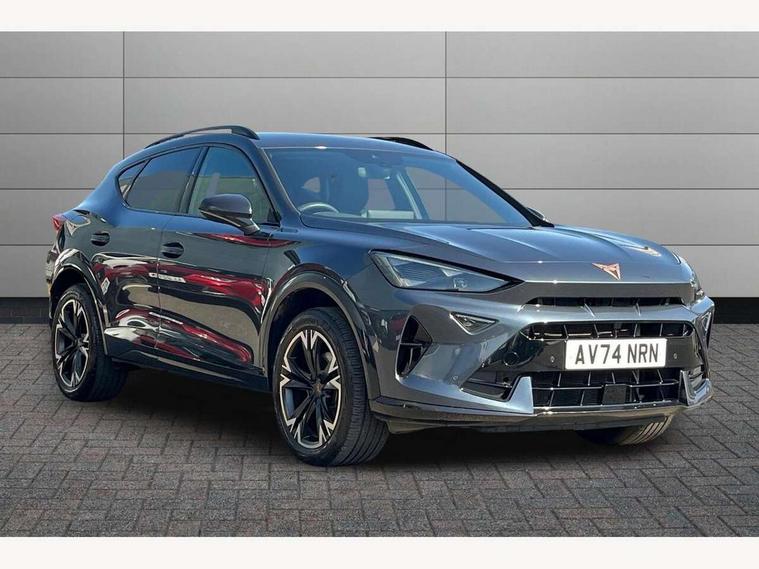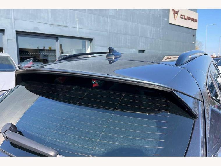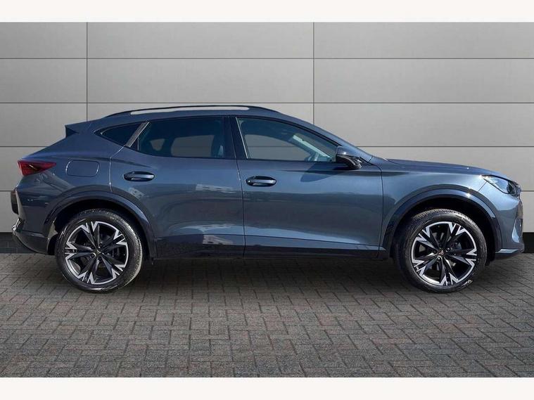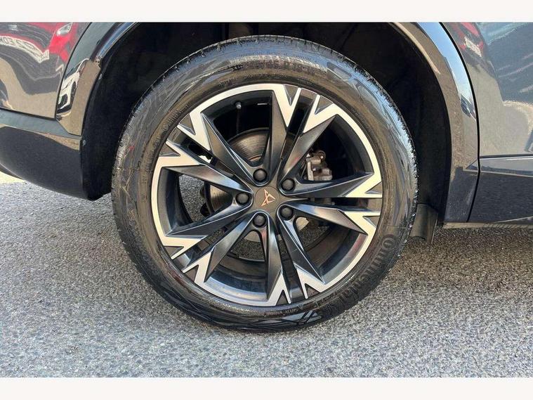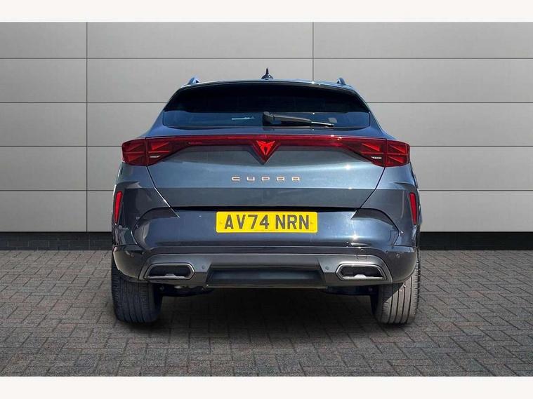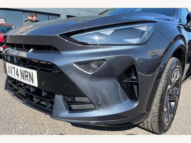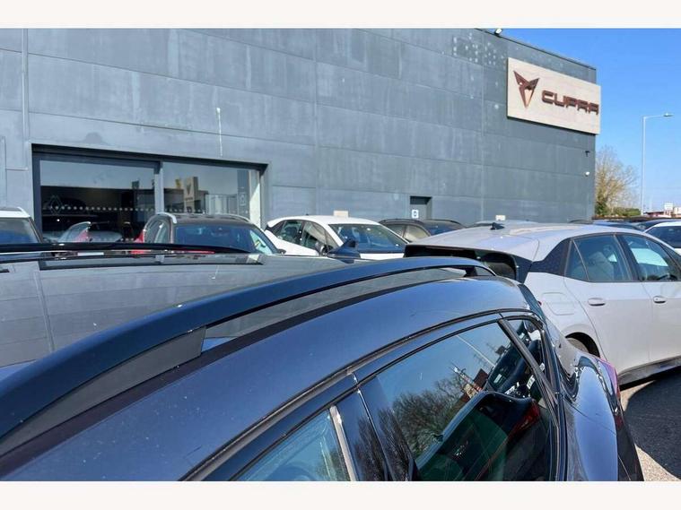 10.25" digital cockpit and configurable dashboard, Adaptive cruise control with follow-to-stop and speed limiter, Advanced driver alert system, Driving profile selection, Dynamic road sign display, Emergency steering support with turn assist, Forward collision warning with automatic braking, Front and rear parking sensors, Full link phone integration, Lane assist, Progressive steering, RPM, trip computer, outside temp gauge, instrument light brightness, low fuel warning light, lights on reminder, gearshift indicator, Service interval indicator, Start/stop system with regenerative braking, Voice control system, Wired Android Auto, Wireless apple carplay, Wireless phone charger, CUPRA sport suspension, Electronic locking differential and dynamic traction support, 2 front and 2 rear USB type C sockets, 7 speakers, Media system with navigation, 12.9" touchscreen display, voice control, DAB, steering wheel mounted controls, Auto dimming rear view mirror, Body colour door handles, Body coloured bumpers, Dark grey wing mirror, Daytime running light with automatic headlight control and coming home feature, Door panel ambient lighting, Dynamic headlight range control, Electric front/rear windows, Electrically adjustable, heated and folding door mirrors, Gloss black roof rails and window surrounds, High beam assist, LED 3rd brake light, LED front fog lamps with cornering function, LED Headlights, LED Taillights with dynamic indicator, Rain sensing wipers, Rear diffuser with black simulated exhaust pipes, Rear fog lights, Rear side wing doors, Rear wash/wipe, Tinted rear windows, Welcome lights (within exterior mirror housing), 12V socket, 2 front and 2 rear reading lights, 3 seat bench in 2nd row, 60/40 split rear bench seat with armrest and mechanical seat release, Black headlining, Black interior roof lining, Cupra sports pedals, Dust/pollen filter, Front and rear head restraints, Front centre armrest, Heated supersports multifunction leather steering wheel with satellite buttons and gear shift paddles, Height/reach adjust steering wheel, Illuminated aluminium doorsteps, Illuminated interior front door sills, Illuminated sunvisor with mirror, Interior ambient lighting, Isofix, Manually adjustable height and lumbar support for front seats, PVC/Cloth upholstery with copper stitching + Sport seats, Satellite steering wheel, Single front passenger seat, Storage pockets on rear of front seats, Three zone climate control with control panel in rear, Variable luggage/load compartment floor, 3 point seatbelts on all rear seats, ABS, Brake control system - ESC and brake booster, Child proof door locks, Driver and front passenger airbags with front passenger airbag de-activation, Electronic parking brake, Front and rear disc brakes, Front side curtain airbags, Hill hold control, Public e-call, Seat belt reminder for front and rear seats, Tyre pressure monitoring system, Anti theft alarm system, Central locking system Keyless Go, Locking wheel bolts, Copper and aluminium interior detailing, 18" Sonora machined silver alloy wheels,