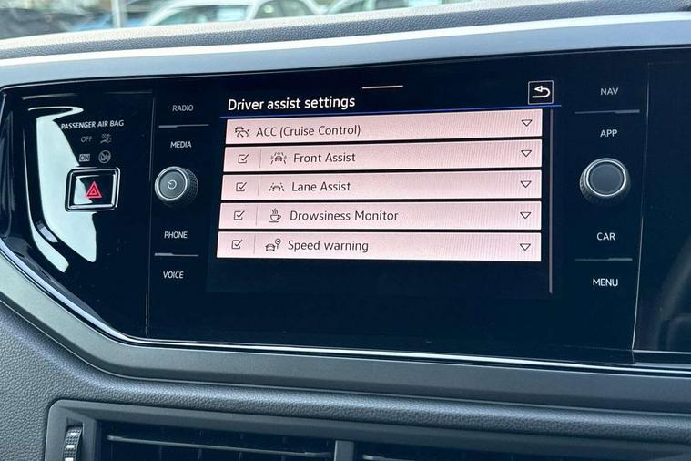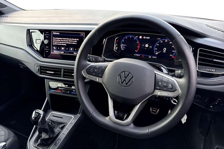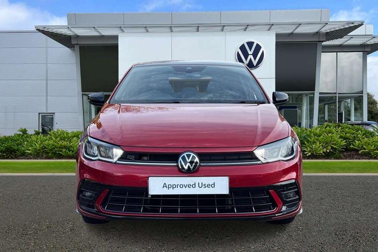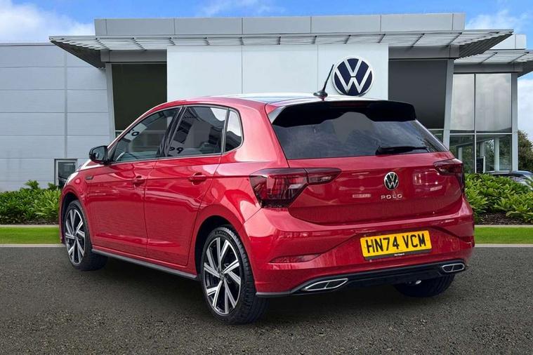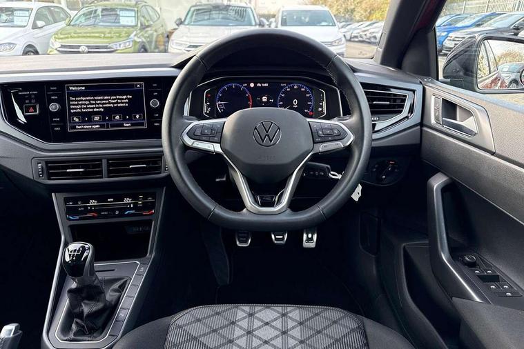 Advanced driver attention and drowsiness monitor, Bluetooth mobile phone interface, Digital Cockpit Pro with 10.25" Display, Dynamic road sign display, Emergency call service, Multifunction camera, Power assisted speed sensitive steering, Predictive adaptive cruise control without follow-to-stop and speed limiter, Preparation for We connect and We connect plus, Speedo and rev counter, electronic odometer, trip, service interval display and fuel gauge, Standard rear axle, Travel Assist - Lane keeping system and traffic jam assist, Travel assist including emergency assist, Trip computer, Warning signal and warning light for front and rear seatbelts not fastened, Washer fluid level indicator, Wireless app connect, Front wheel drive, Rear shock absorpion, Start-stop system with battery regeneration (recuperation - energy recovery during braking), DAB Digital radio, Diversity antenna for FM reception, Front and rear 6 speakers, Body colour bumpers, Body colour door handles, Electric front windows, Front scuff plates with R-Line logo, Heat insulating darkened glass in side and rear windows, Heat insulating glass windscreen, Power folding adjustable/heated exterior mirrors and front passenger exterior mirror lowering function, Rear electric windows, Rear fog light, Rear side wing doors, Rear windscreen washer and wiper with interval delay, Third brake light, 12V power socket in centre console, 2 USB-C ports in the front, 2 USB-C charging sockets on the center console in the rear, 3 rear head restraints, 60/40 split folding rear seat and rear seat bench not split, Air care climatronic air conditoning system with active combination filter and 2-zone temperature control, Black roof lining, Carpet mats, front and rear, Chrome plated radiator grille inserts, air vent surrounds and light switch surrounds, Door and side trim panel, Driver and front passenger seat height adjustment, Driver/passenger sunvisors with illuminated vanity mirrors, Front centre armrest, Front footwell illumination, Front seat backrest storage pockets, Front sports comfort seats, Handbrake lever handle in leather, Headliner in recycled material, Isofix child seat preparation easy-fit (for two outer rear seats, and front passenger seat) compatible with I-size, Karoso artvelours cloth upholstery, Leather trimmed gear knob, LED interior light with switch off delay and dimmer, 2 reading lights front and rear, Luggage compartment cover, Luggage compartment floor, Luggage compartment lighting, Lumbar adjustment for front seats, Multifunction steering wheel, Single front passenger seat, Stainless steel pedals, Standard pedal cluster, Light and sight pack - Polo R-Line/Black Edition, 3 point height adj front seatbelts + pretensioners, 3x3 point rear seatbelts, ABS, Driver and front passenger airbag with front passenger airbag deactivation, Drivers and front passengers safety optimised head restraints, ESC (Electronic stability control) + EDL (Electronic Differntial lock) and ASR (Traction control), Extended and predictive pedestrian/ cyclist protection, Front curtain and side airbags with center airbag, Hill hold control, Manual child lock in rear doors, Single tone horn, Tyre pressure loss indicator, Alarm with interior protection, Anti-theft alarm system with interior monitoring, backup horn, and towing protection, Anti-theft wheel bolts, Electronic engine immobiliser, Chrome applications on rotary light, mirror adjustment, window regulator switches, outlet with frame in black, Dark grey anodised matt decorative inserts in dash and front door panels, 16" Valencia alloy wheels, Low rolling resistance tyres,