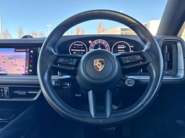 Active speed limit assist, Android Auto, Apple car play, Auto start/stop function and coasting, Brake pad wear indicator, Central analogue rev counter with black dial face, power meter and pointers in acid green, Driver personalisation for climate, audio and communication, assistance systems and other customisable car systems, E-call, Energy recuperating braking system, High resolution 12.3-inch touchscreen display in full HD resolution, Individual mode for individual selection of vehicle drive settings, Instrument cluster with 12.6" curved display, Instrument cluster with two high-resolution displays, Mobile phone preparation with Bluetooth interface for telephone and music, Mode switch, Porsche Communication Management (PCM) including online navigation module, mobile phone preparation, audio interfaces and voice control system, Power steering plus, Power tailgate, Reversible occupant protection measures, Smartphone integration, Speed limit indicator, Vehicle electrical system recuperation, Warn and brake assist including pedestrian protection, 32A 230V blue industrial supply cable and basic wall mount, 75 litre fuel tank, 8 speed automatic gearbox, Aluminium cylinder heads and engine block, Direct fuel injection (DFI) with central injector position, Front and rear aluminium multi link axles, Gasoline particulate filter, Mobile charger 7.2 kW and on board AC charger with 11 kW, Mode 3 charging cable, Panoramic roof with fixed glass panel, Power electronics, battery manager and electrically powered auxiliary units, Sport mode, Standard charging cable length, Starter battery, Supply cable for domestic electrical socket (10A), Turbocharger, VarioCam Plus, Water cooled with thermal management, AM radio, Digital radio, Fast charging two USB-C PD connectivity and charging port in front storage compartment, Smartphone compartment with wireless charging, Two USB-C PD charging ports in the rear, Active air intake flaps, Air intake slats with inlays in high gloss Black, Auto dimming interior + exterior mirrors, Automatic headlight activation including welcome home functionality, Bumper system with high strength cross members and two deformation elements + Two receptacles with screw threads towing lug + onboard tool kit, Door handles painted in exterior colour, E-Hybrid logo on front wings with border in black, Electric windows + anti trap protection + one touch open/close drivers side, Electrically adjustable, folding and heated exterior mirrors, aspherical on drivers side including courtesy lights, Extensive aerodynamic underbody protection, Exterior mirror lower trims including mirror base in black, Four point signature LED daytime running lights, Front end with integrated air intakes and airblades for the side air intakes, Front light modules including position lights and direction indicators in LED light guide technology, Front windscreen wipers with two speeds, intermittent wipe and rain sensor, Fully galvanised steel / aluminium hybrid lightweight bodyshell and Aluminium bonnet, tailgate, doors, side panels, roof and front wings, Heated rear window with automatic switch off, LED High level third brake light integrated into roof spoiler, Lower valance, Porsche active aerodynamics (PAA) with adaptive roof spoiler, Porsche logo integrated into rear taillight strip, PORSCHE' lettering integrated in tailgate strip, Preparation for the roof transport system, Rear diffusor in louvered design, Rear side wing doors, Rear window wiper with intermittent function and washer jet, Right fuel filler cover and left charging port cover, 2 seat bench in 2nd row, B-pillar clothes hooks on driver and passenger's side, Charge air cooling, Door interior with decorative surfaces and accent trims, Electric sound, Elevated centre console with handles, Front and rear bottle holders in door panels, Front head restraints, Heated front seats, Height adjustable rear headrests, Illuminated make-up mirror in sun visors, Integrated front headrests, Isofix fastening system for child seats on outer rear seats, Leather door panel and central armrests, Leather gear selector, LED interior light with switchoff delay function, footwell + glove compartment light, ashtray + ignition lock illumination, front + rear reading light, Manual height adjust for driver and front passenger seat belt, Manual steering column with angle and reach adjustment, Particle/pollen filter with active carbon filter, Rear seat split folding design 40:20:40, Fold out centre armrest with integrated cup holder, manual fore/after adjust and backrest angle adjust, Rigid luggage compartment cover, Single front passenger seat, Sports rear seat system, Storage compartments - Cooled glove compartment, front centre console, door and map pockets on front seat backrests + side luggage compartment, Sun visors for driver and front passenger, Three 12V power sockets - front below the glove compartment, centre console and at side of luggage compartment, Two integrated cup holders in front and rear with variable diameter, 3 point automatic seatbelts with front and outer rear seats pretensioners and front force limiter, 4 piston aluminium monobloc fixed brake calipers at rear, 6 piston aluminium monobloc fixed caliper brakes at front, Active bonnet, Auto hold function, Brake discs with diameter 390 mm at front, 358 mm at rear, Curtain airbags along roof frame and side glazing from the A-pillar to the C-pillar, Distance warning, Electronic parking brake, Front passenger airbag deactivation function for front seat mounting of child seat, Front side airbags integrated into seat, Full size driver and front passenger airbags, Knee driver and passenger airbags, Manual child lock in rear doors, Mounting points on passenger seat for ISOFIX child seat mounting system, Multi-Collision braking, Porsche hill control (PHC), PTM Porsche Traction Management active all-wheel drive with an electronically variable, map-controlled multi-plate clutch, ABD and anti-slip regulation, Rollover d