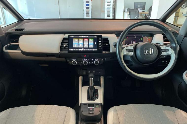 Adaptive cruise control, Adjustable speed limiter, Agile handling assist, BLIS (Blind Spot Information System) with Cross Traffic Monitor, Bluetooth hands free telephone connection, eCall emergency call system, Econ mode, Electric power steering wheel with variable gear ratio steering, Emergency stop signalling system, Forward collision warning, Front and rear parking sensors, Honda CONNECT with HERE Navigation + 9" touchscreen, AM/FM/DAB/Apple Carplay and android auto, Idle stop, Intelligent speed limiter, Lane departure warning system, Lane keep assist system, Low speed following, Multi-information display, Rear view camera, Road departure mitigation, Traffic sign recognition, Vehicle stability assist, 'Shark fin' mobile antenna, 2 USB sockets in rear, 2x USB Front socket (1 data & 1 charge), 4 speakers, Remote audio controls on steering wheel, Aspheric door mirrors, Auto wipers, Automatic headlights with on/off timer, Coming/leaving home function, Body colour door handles, Body coloured bumpers, eHEV emblem, Electric adjustable door mirrors, Electrically folding door mirrors, Front and rear electric windows, Heated door mirrors, High beam assist, LED daytime running lights, LED front fog lights, LED Headlights, LED rear lights, Privacy glass, Rear side wing doors, Rear wiper, Single exhaust tailpipe, Third brake light, 3 seat bench in 2nd row, 60/40 split rear bench seat, Cargo net hooks, Climate control air conditioning, Driver and front passenger seat armrests, Driver and passenger front seat pockets, Driver's seat height adjustment, Fabric/leather upholstery, Front accessory power socket, Front head restraints, Front map lights, Front/rear courtesy lights, Heated front seats, Heated steering wheel, Isofix child seat restraint mechanism, Isofix points, Leather gearshift knob, Leather steering wheel, Magic seat flexibility system, Paddle shift controls, Plating interior door handles, Rear head restraints, Rear parcel shelf, Single front passenger seat, Sunvisors with vanity mirrors, Tilt/telescopic adjustable steering wheel, Tonneau cover, Trunk light, 3x3 point rear seatbelts, Anti-lock braking system (ABS), Brake assist function, Brake hold function, Child locks on rear doors, Collision mitigation braking system, Deflation warning system, Driver knee airbag, Driver SRS airbag (single stage inflation), Driver/Front Passenger airbags, Electric parking brake, Front and rear side curtain airbag, Front side airbags, Hill start assist, Passenger SRS airbag cut-off device, Rear side airbags, Whiplash lessening front headrests, Front seat belt with emergency locking retractor, Honda super locks, Immobiliser, Mirrors and windows key fob operation, Remote central locking with 2 remote folding keys, Security alarm, Smart entry + Smart start, Soft pad leather interior panels, 16" Multi apperance alloy wheels in mat berlina black, Tyre repair kit,